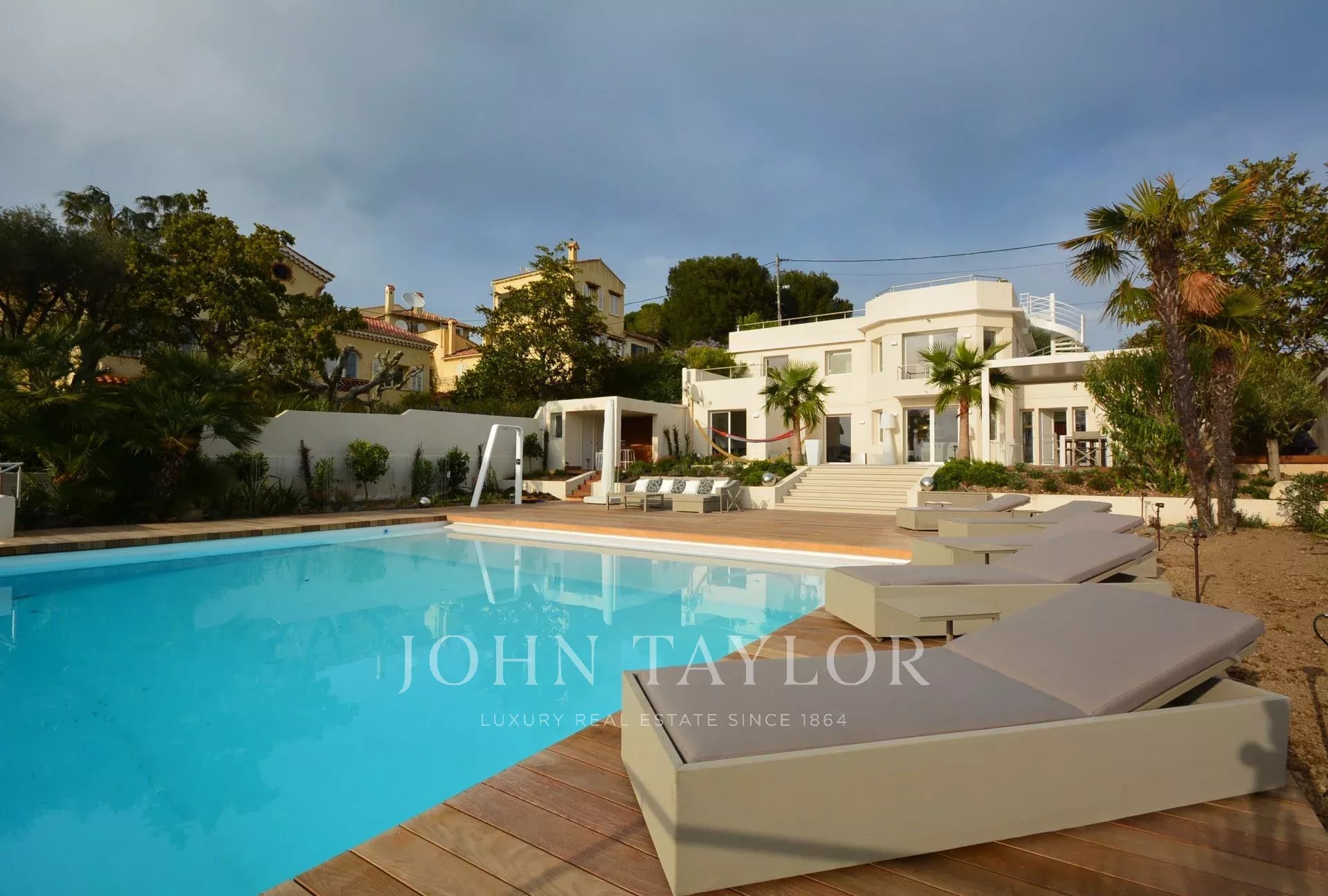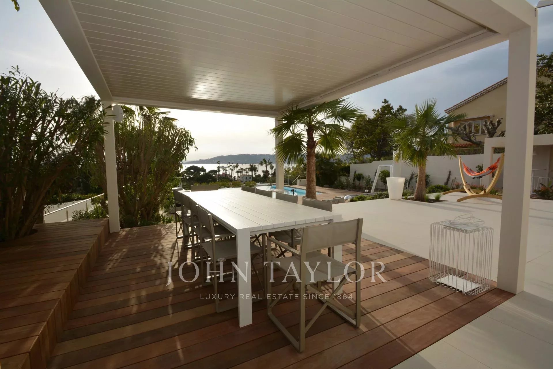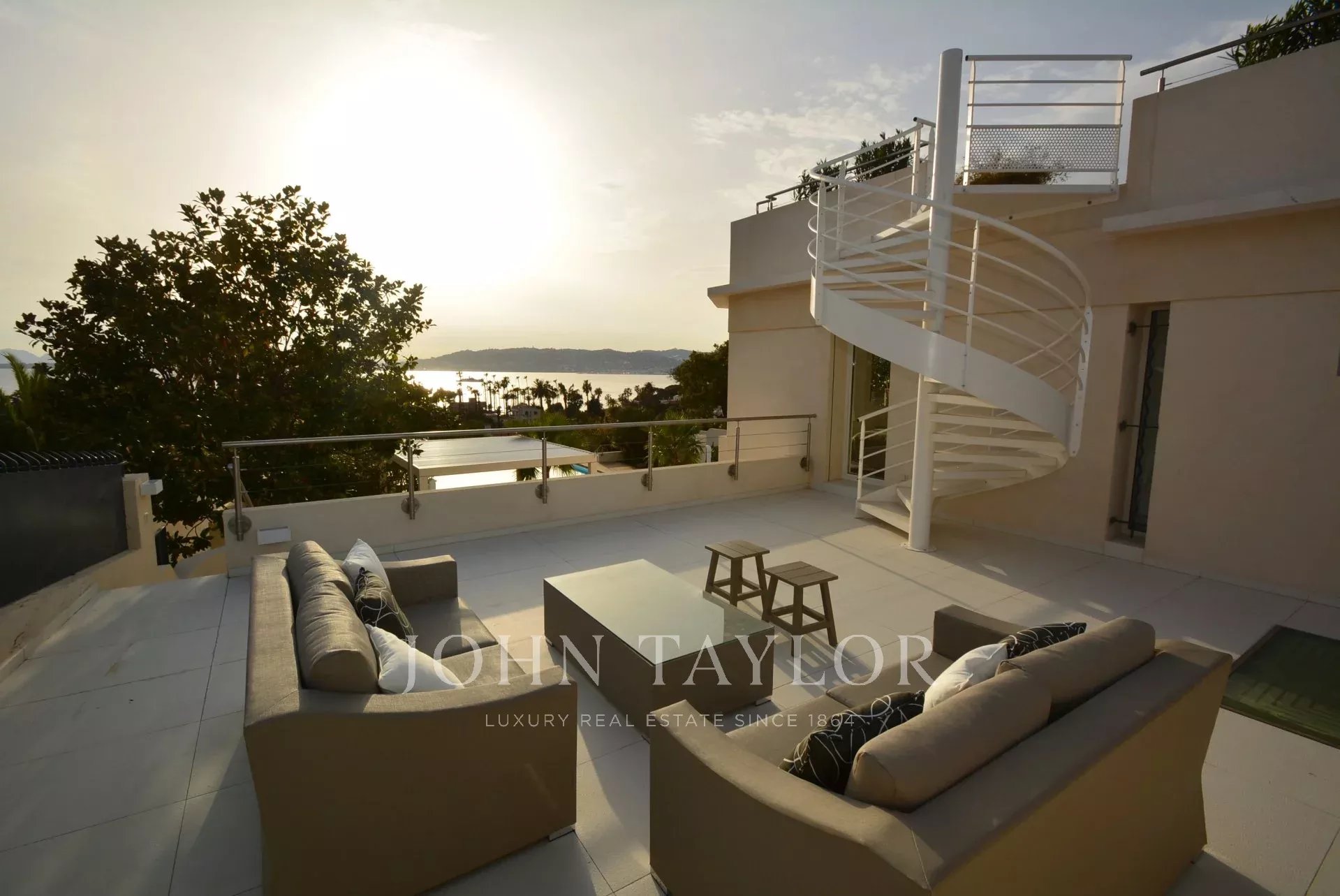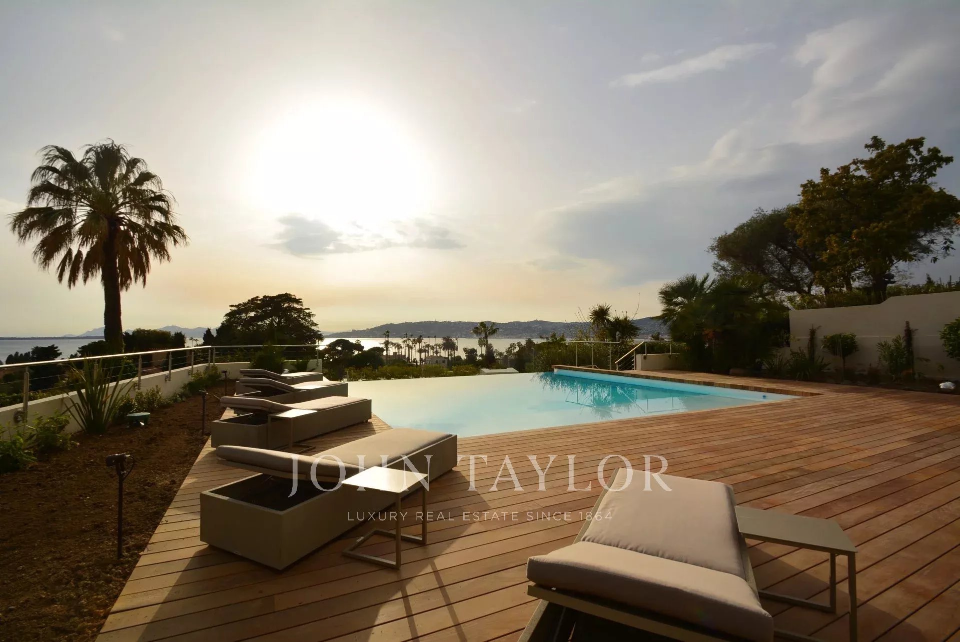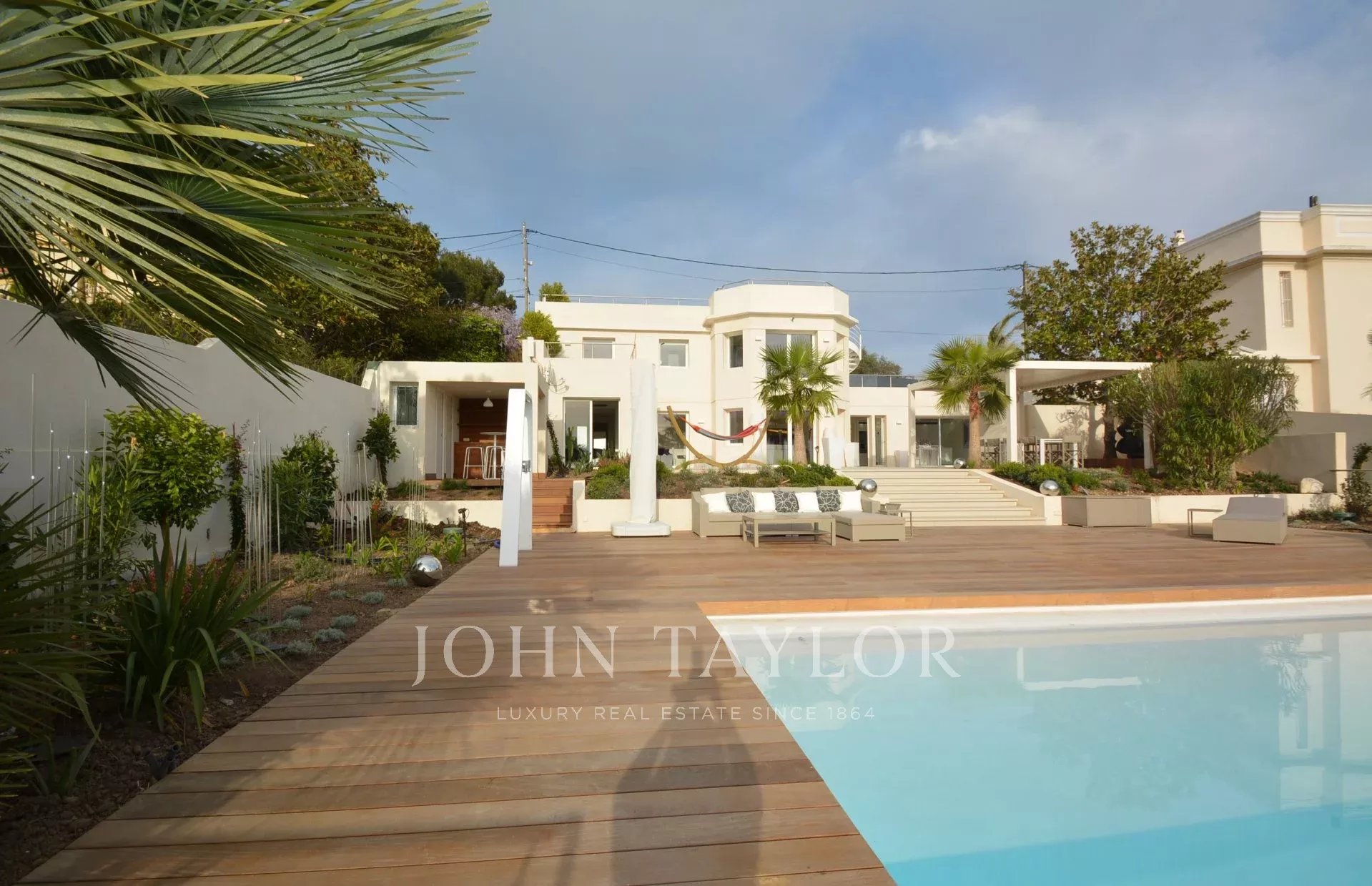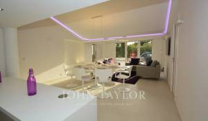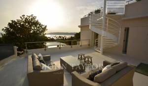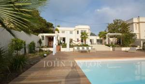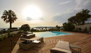 Situada en la ladera oeste de Cap d'Antibes, en el corazón de una parcela de 1000 m2, esta propiedad totalmente renovada y climatizada goza de preciosas vistas al mar y 375 m2 de terrazas.
