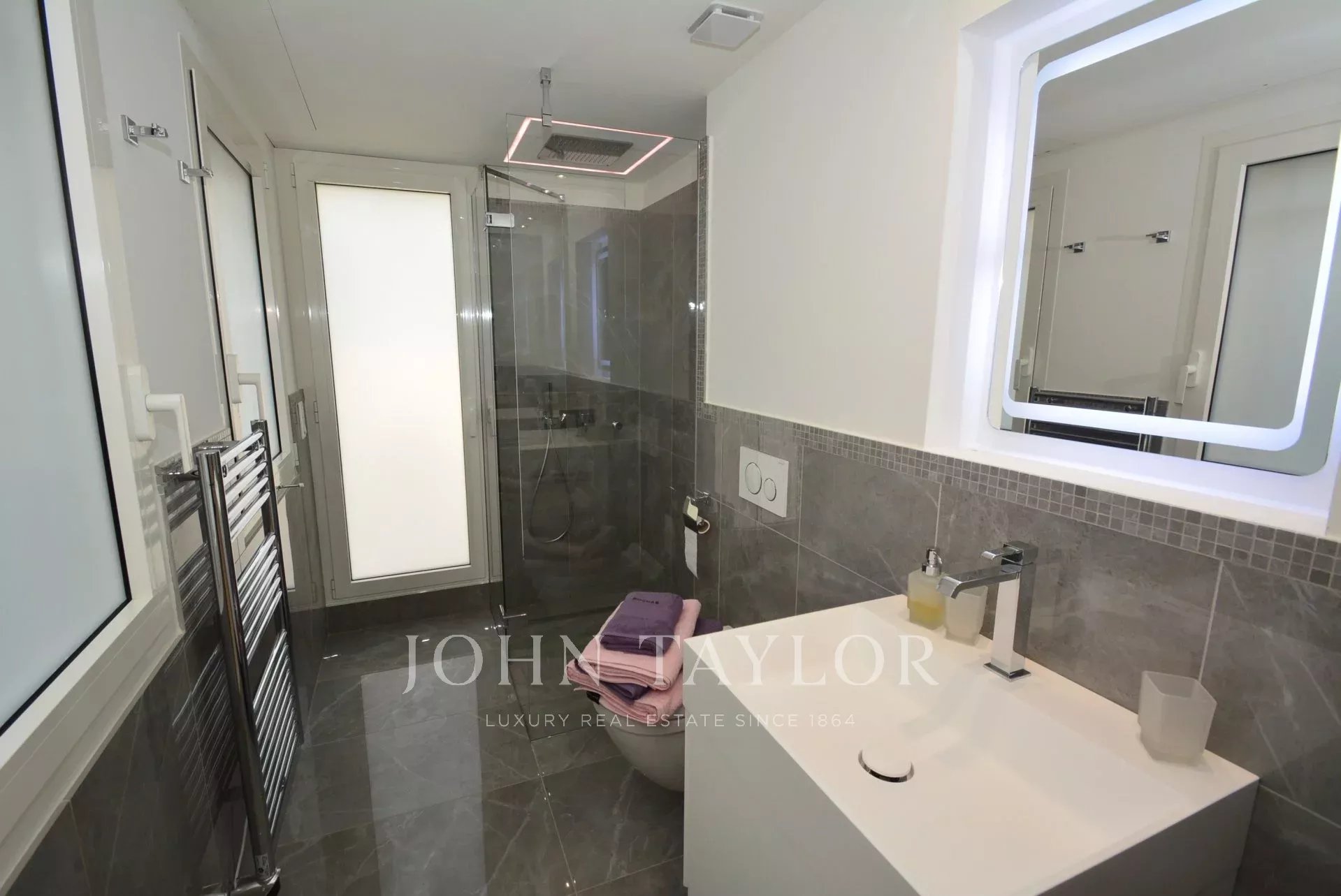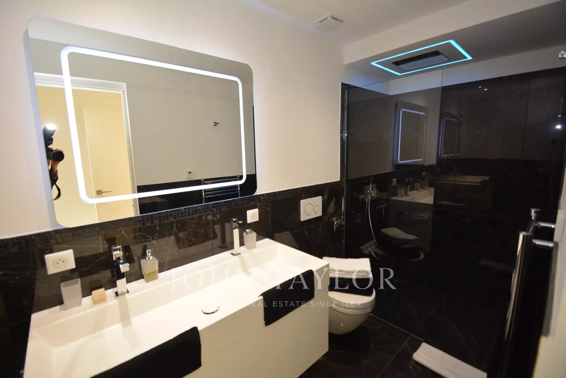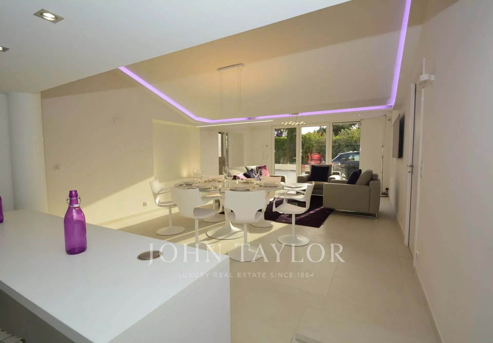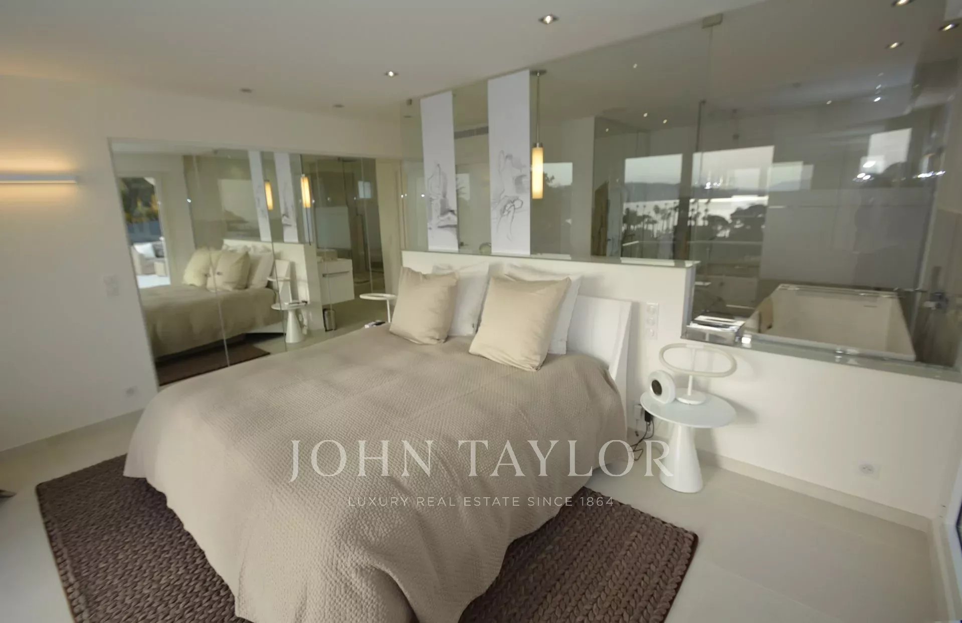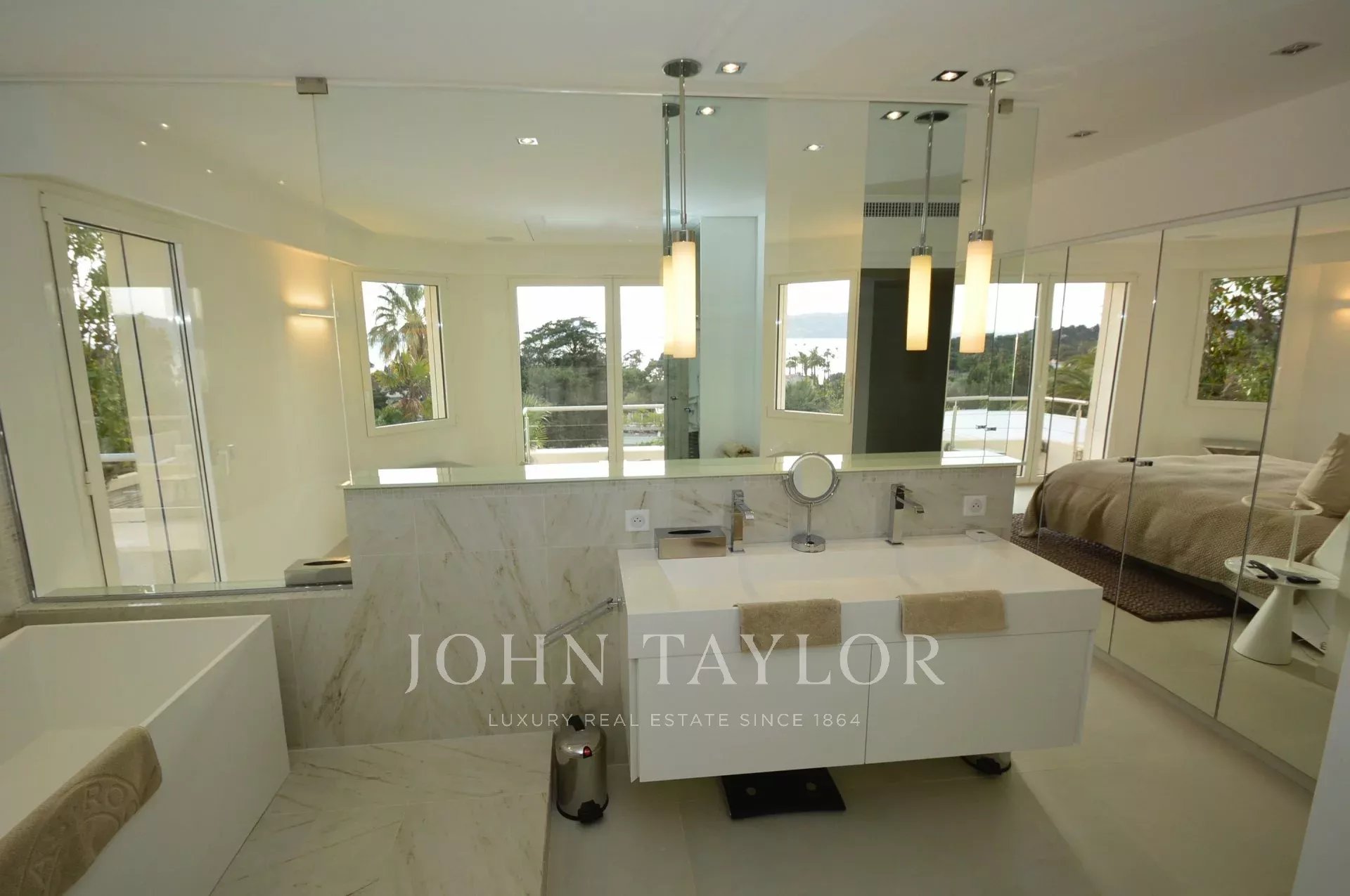 Situada en la ladera oeste de Cap d'Antibes, en el corazón de una parcela de 1000 m2, esta propiedad totalmente renovada y climatizada goza de preciosas vistas al mar y 375 m2 de terrazas.