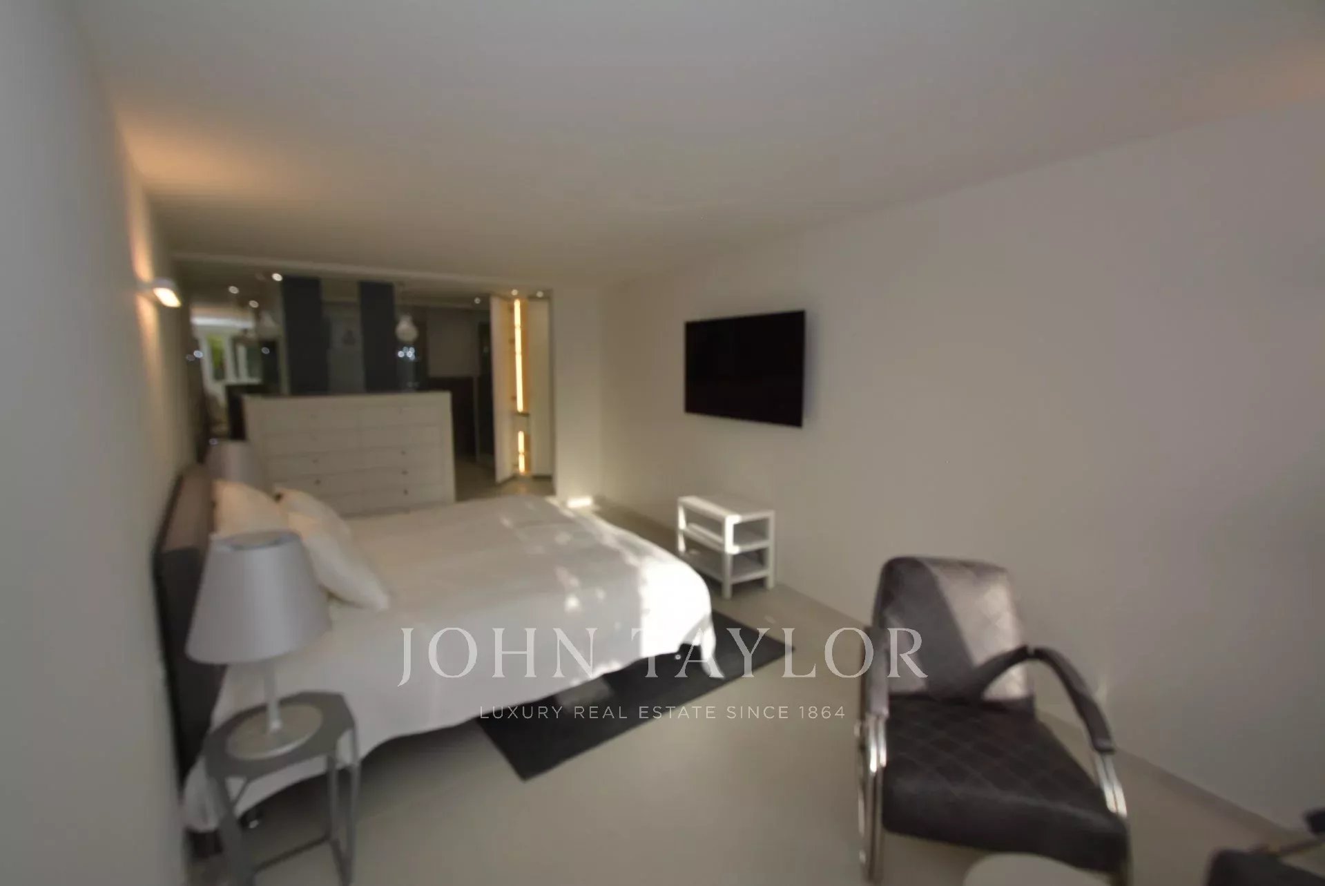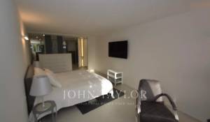 Dormitorio principal (cama doble - caja fuerte), TV, apertura a terraza con salón de verano, zona de bar, jacuzzi y acceso a solarium, vista al mar - Cuarto de baño completo / WC
