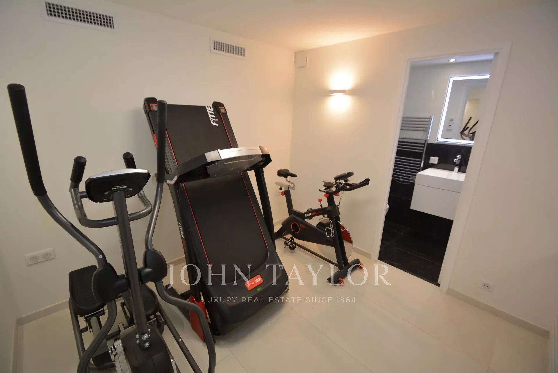 Sala de deporte con TV - Cuarto de ducha / WC