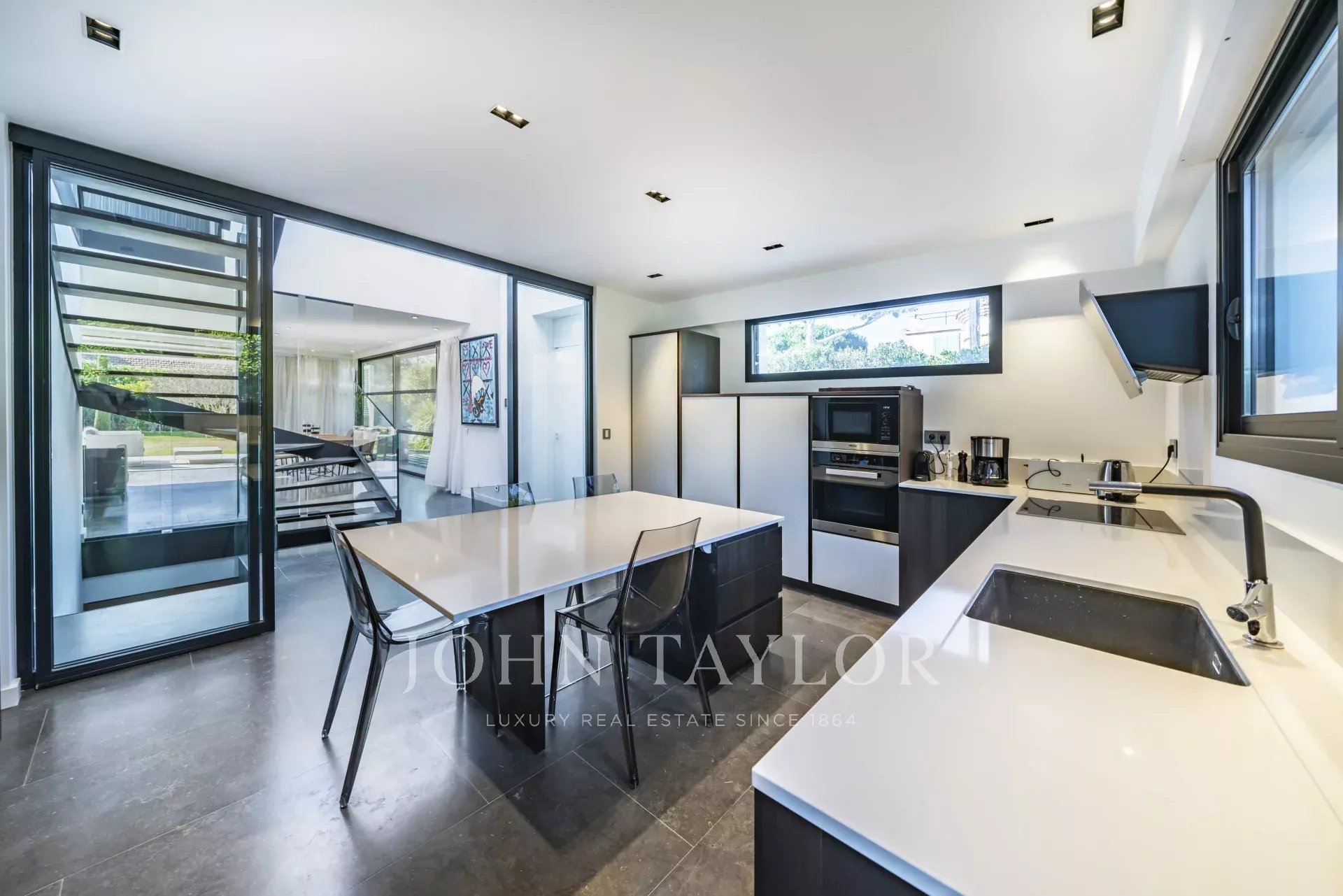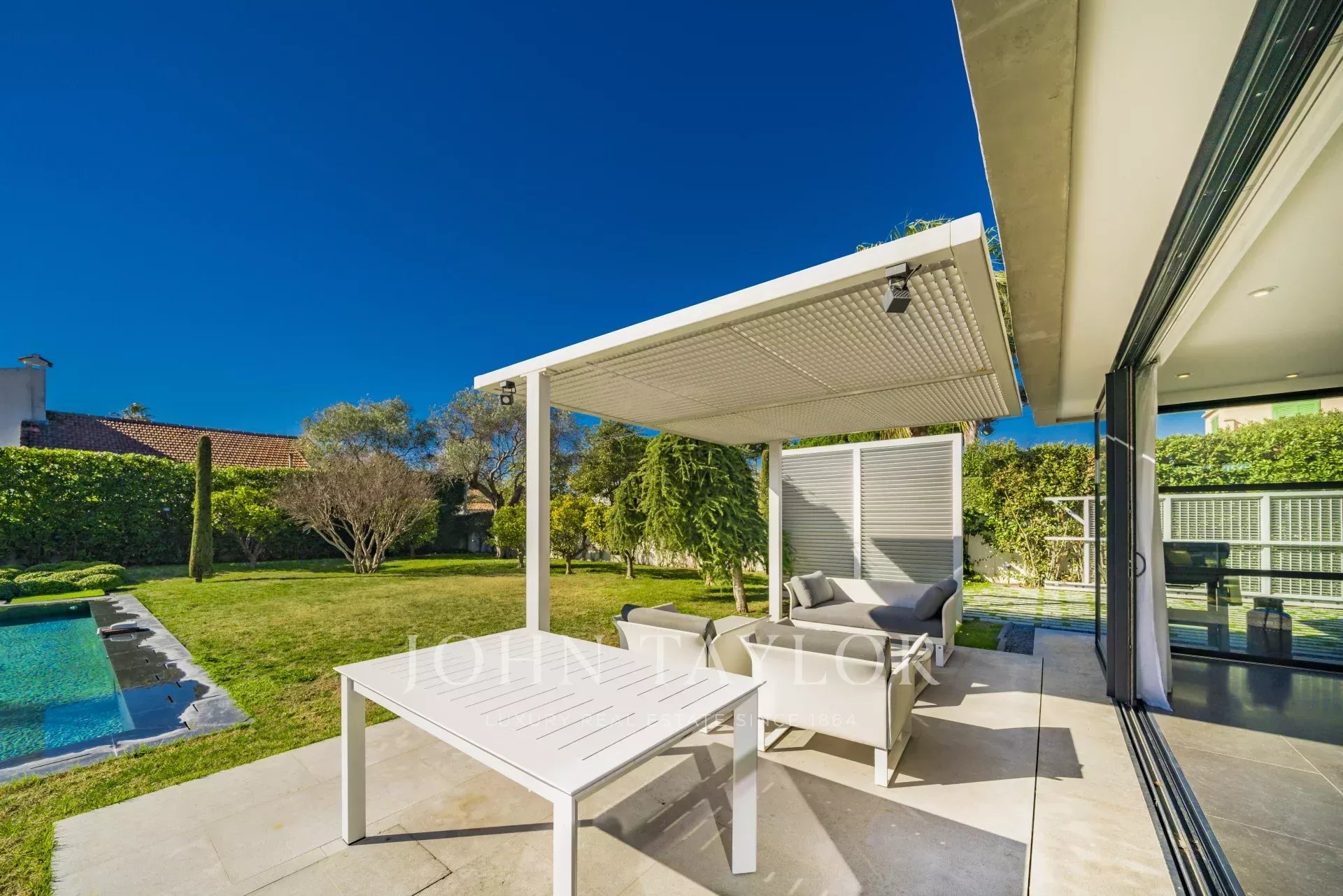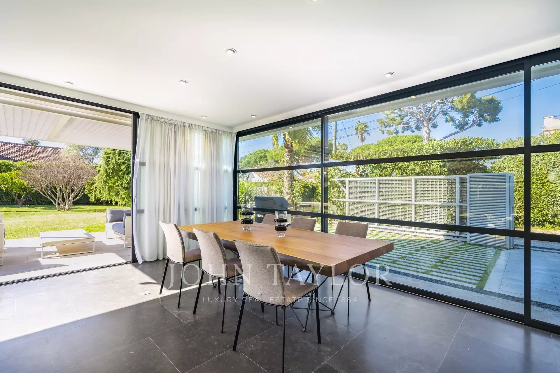 Idealmente situado, el mar y los deportes náuticos de Port Gallice están a sólo unos minutos a pie. También lo están los famosos restaurantes del Hôtel du Cap y Belles Rives, y la vida nocturna de Juan les Pins.