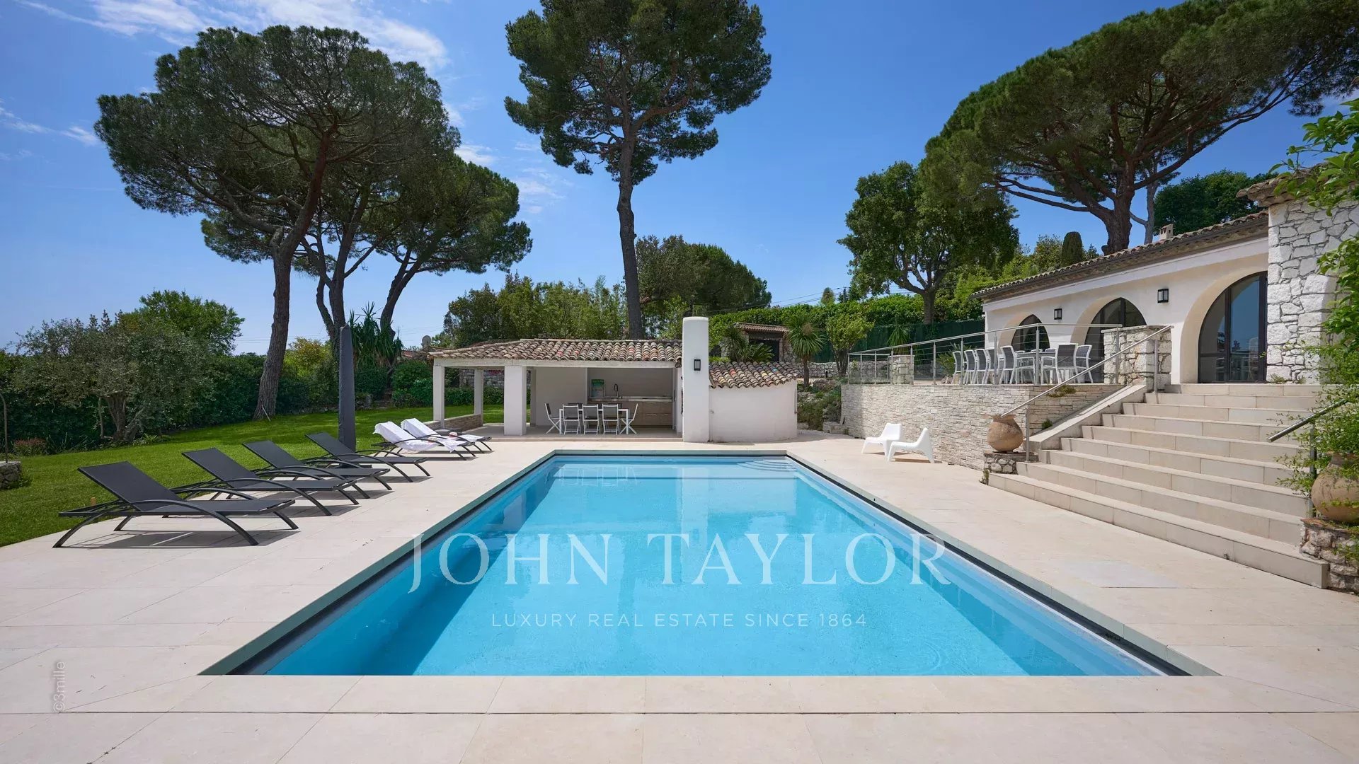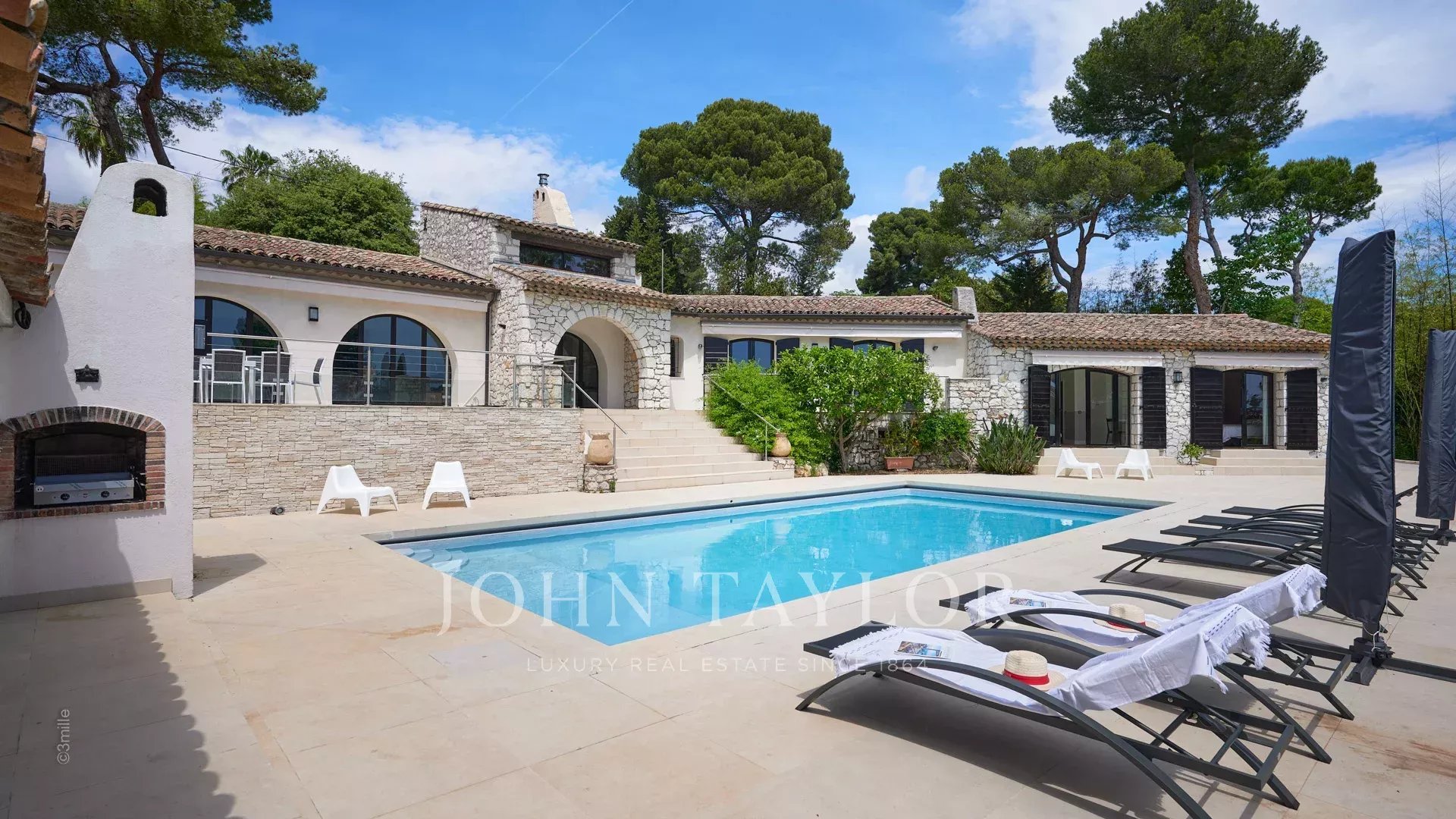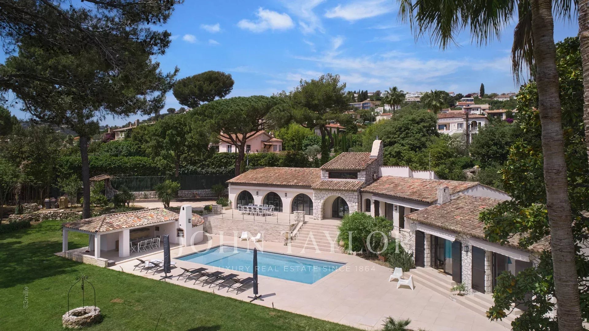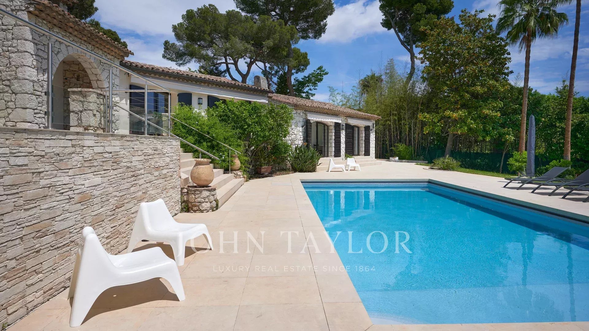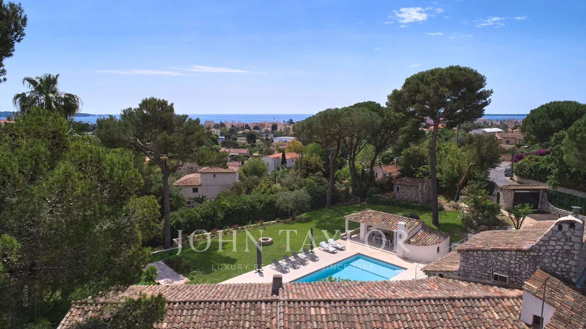 En las alturas de Golfe-Juan, a 10 minutos en coche de sus playas y restaurantes, en una zona residencial, hermosa villa provenzal, totalmente renovada y climatizada, que ofrece 300 m2 de espacio habitable, en tres niveles, en el corazón de una parcela plana de 3.000 m2. Pequeñas vistas al mar.