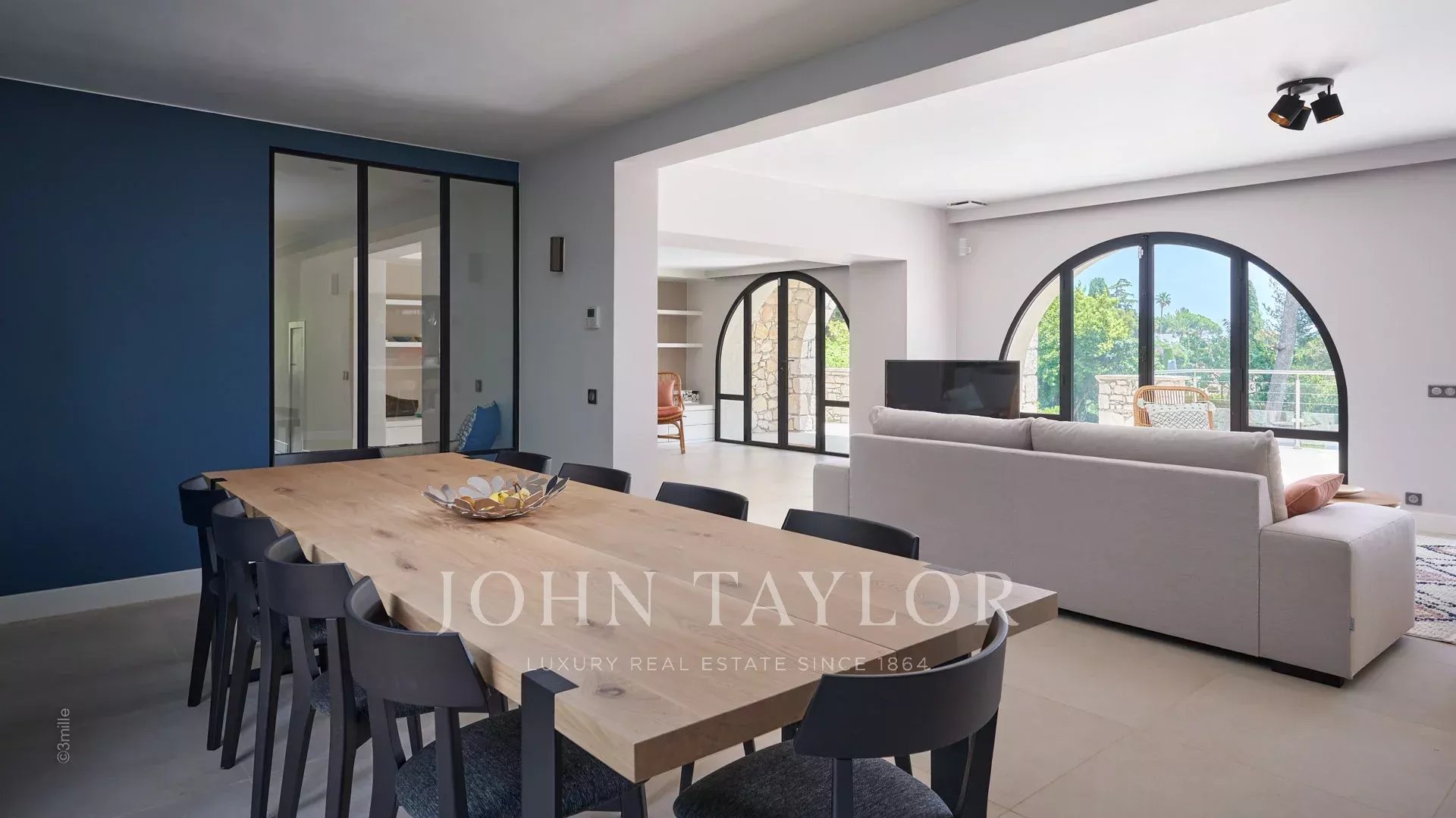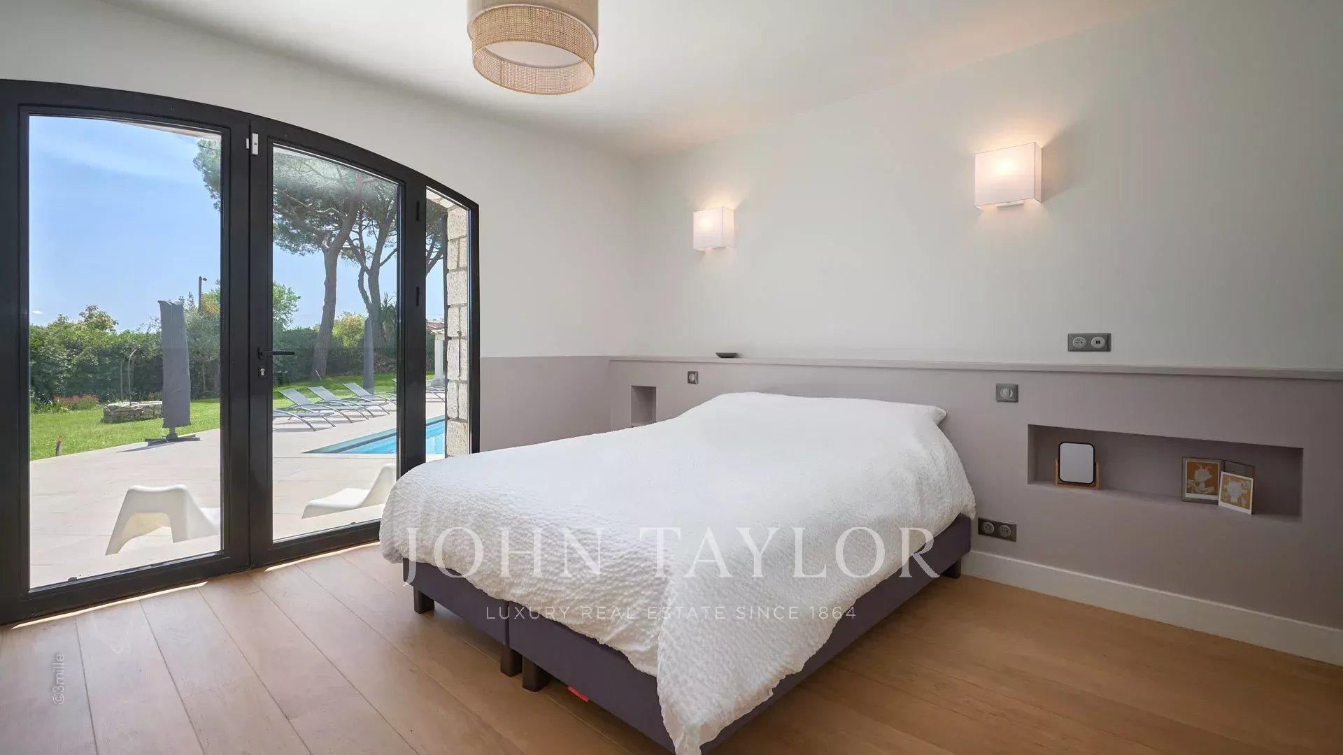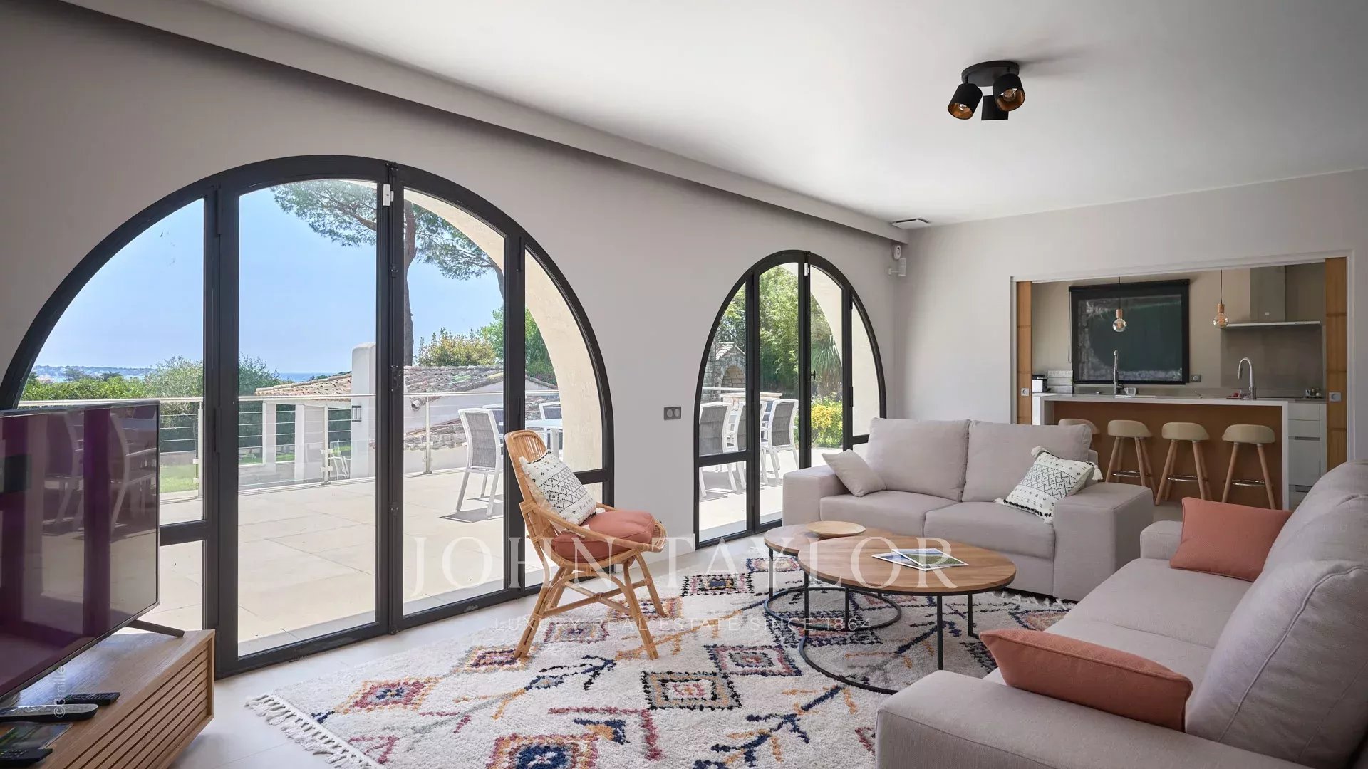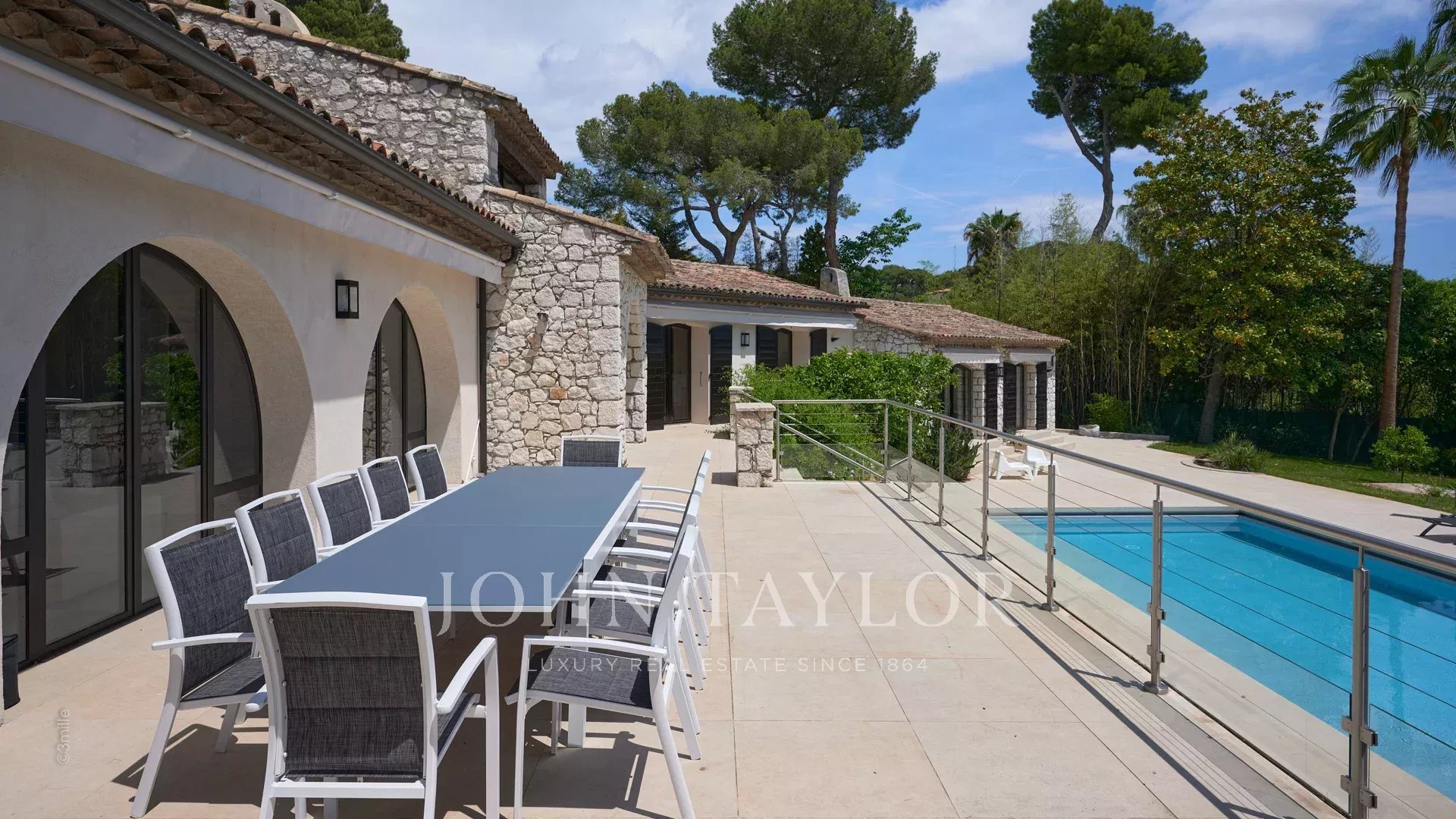 En las alturas de Golfe-Juan, a 10 minutos en coche de sus playas y restaurantes, en una zona residencial, hermosa villa provenzal, totalmente renovada y climatizada, que ofrece 300 m2 de espacio habitable, en tres niveles, en el corazón de una parcela plana de 3.000 m2. Pequeñas vistas al mar.