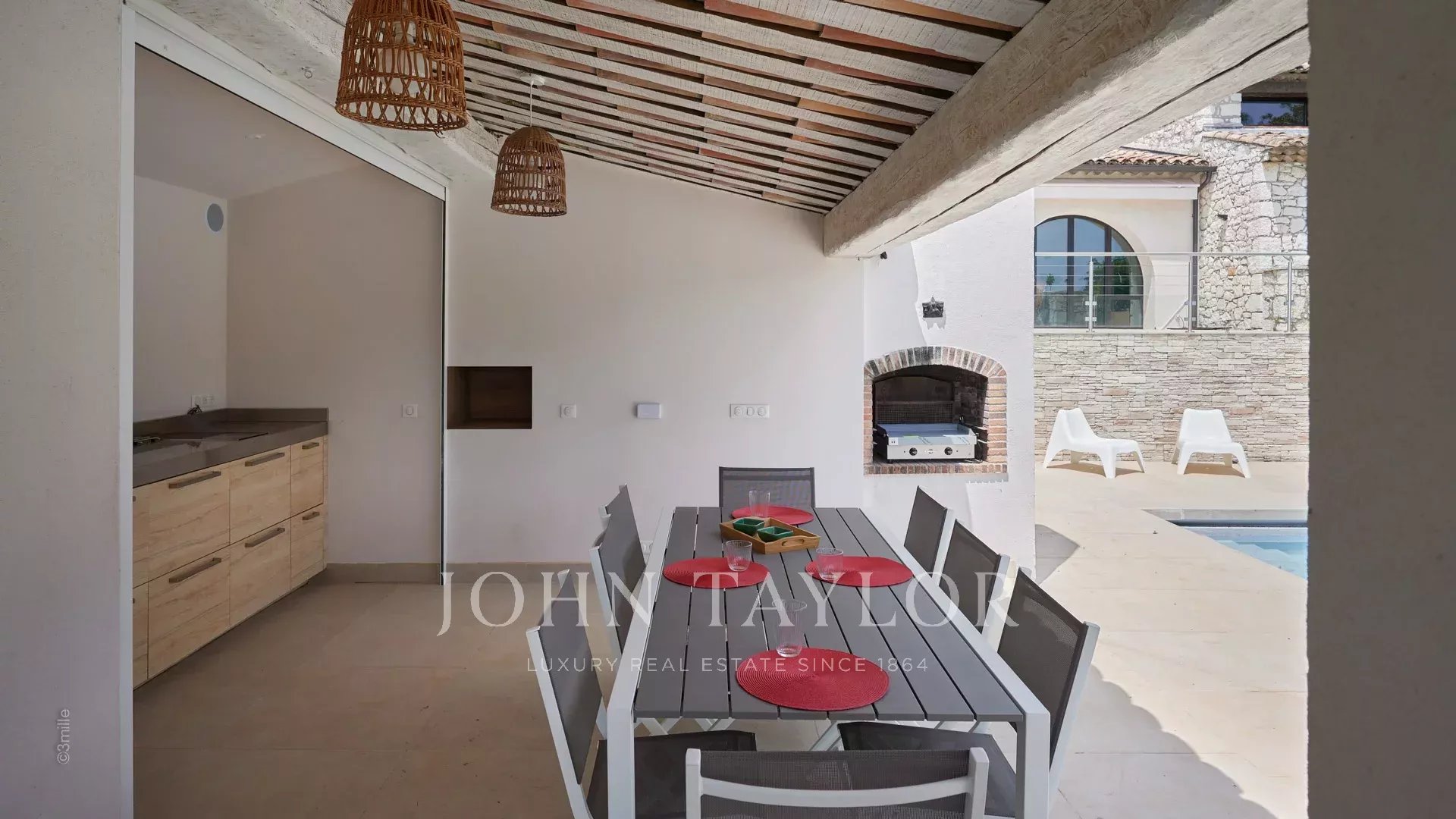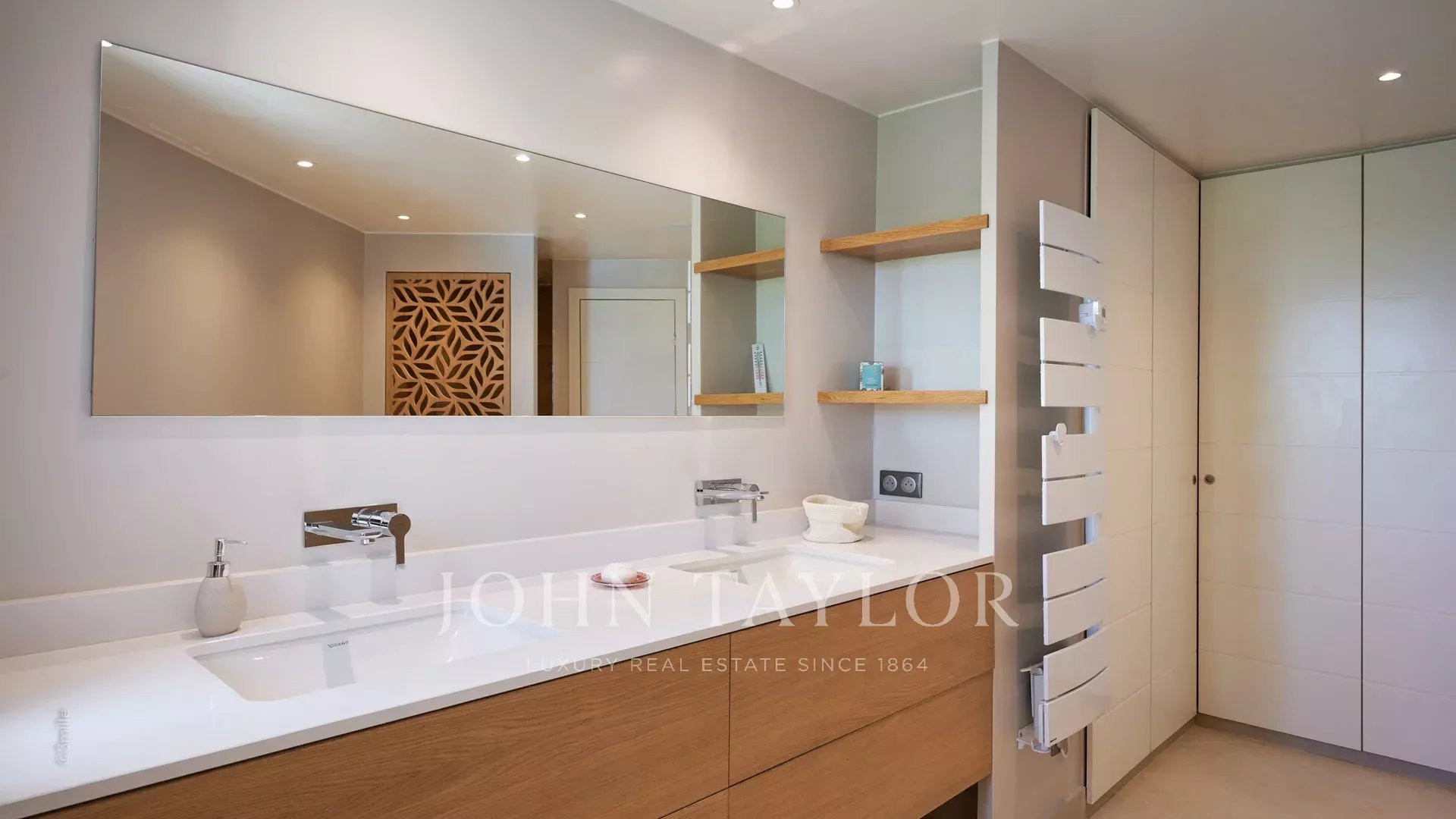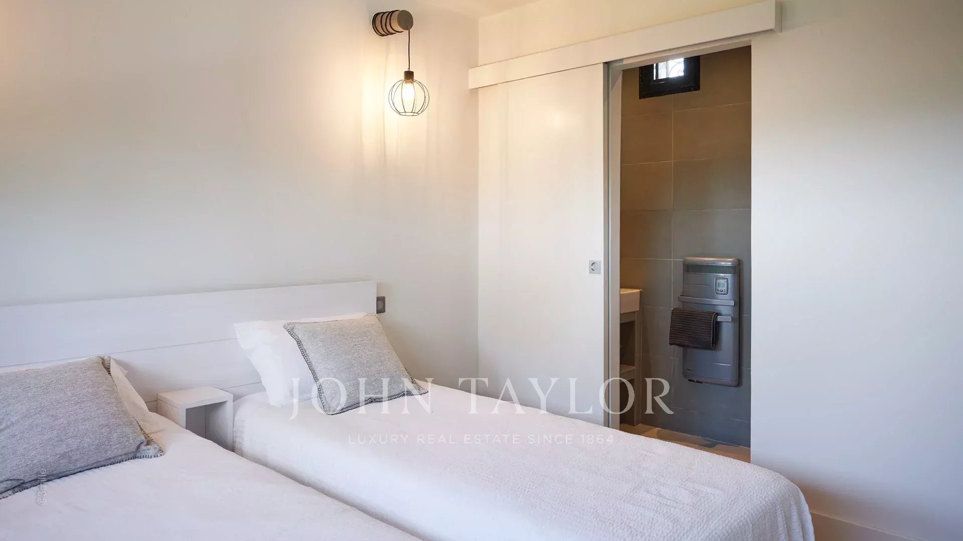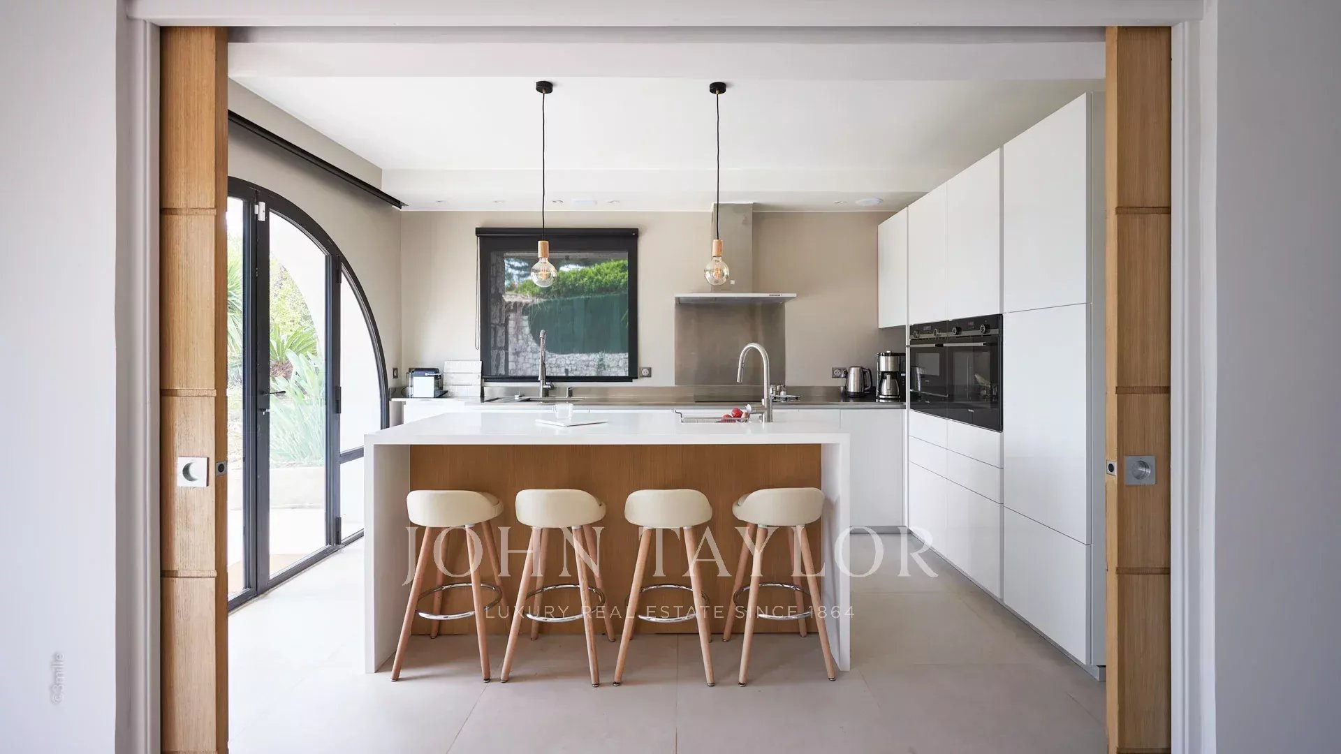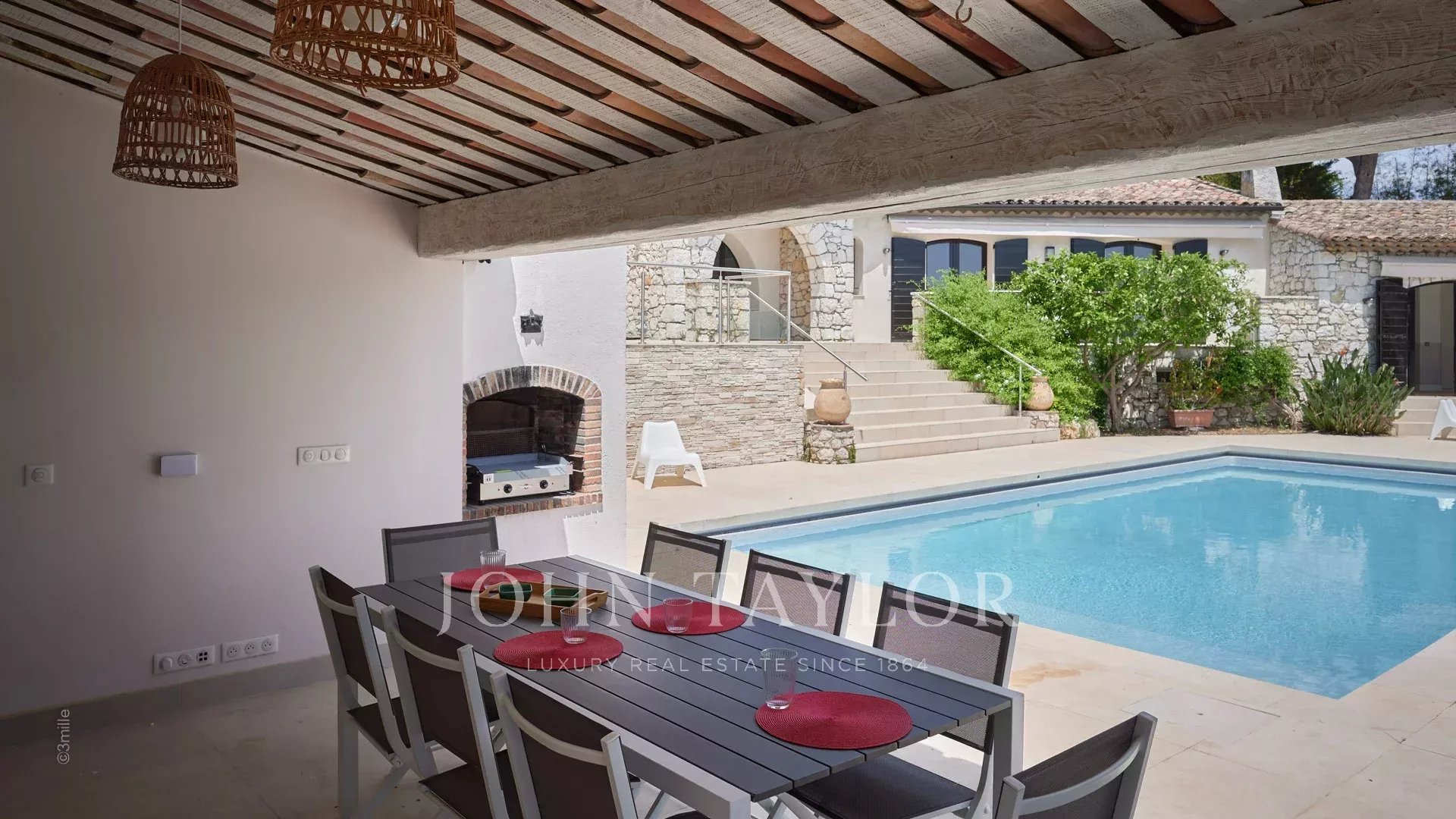 En las alturas de Golfe-Juan, a 10 minutos en coche de sus playas y restaurantes, en una zona residencial, hermosa villa provenzal, totalmente renovada y climatizada, que ofrece 300 m2 de espacio habitable, en tres niveles, en el corazón de una parcela plana de 3.000 m2. Pequeñas vistas al mar.