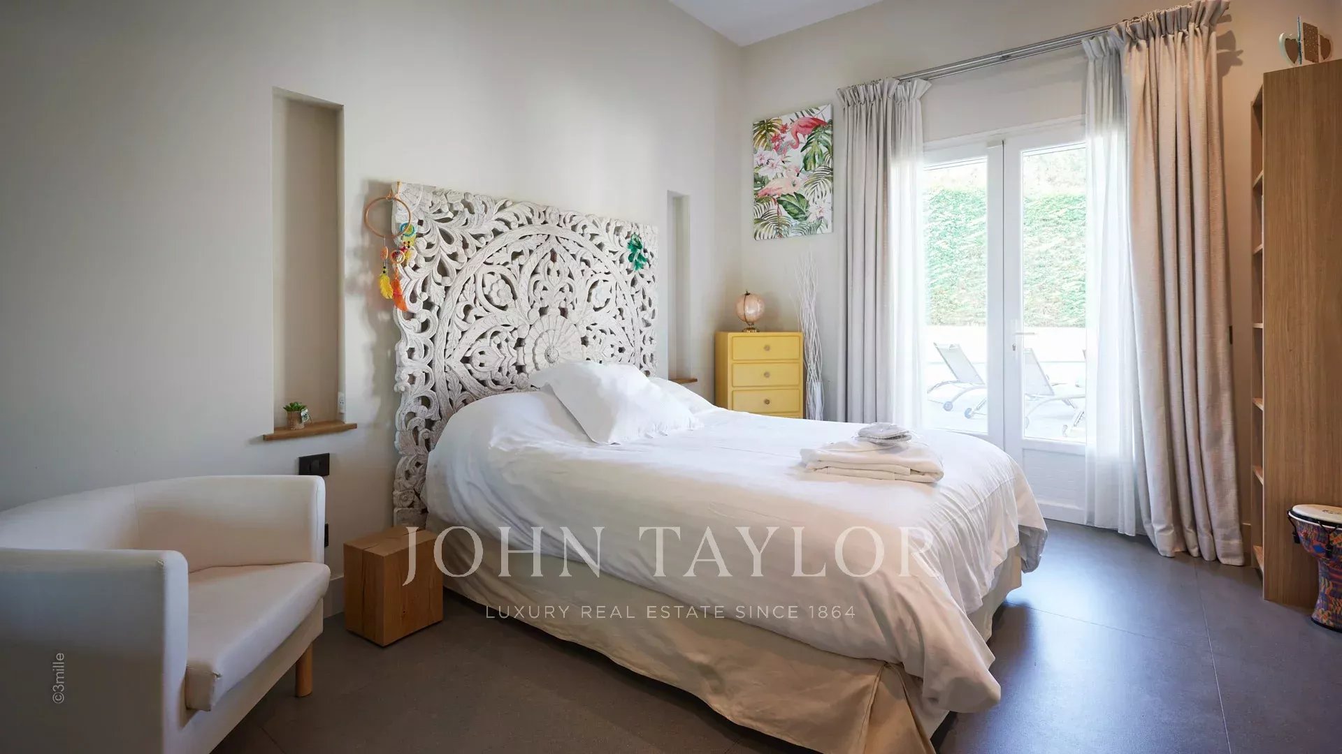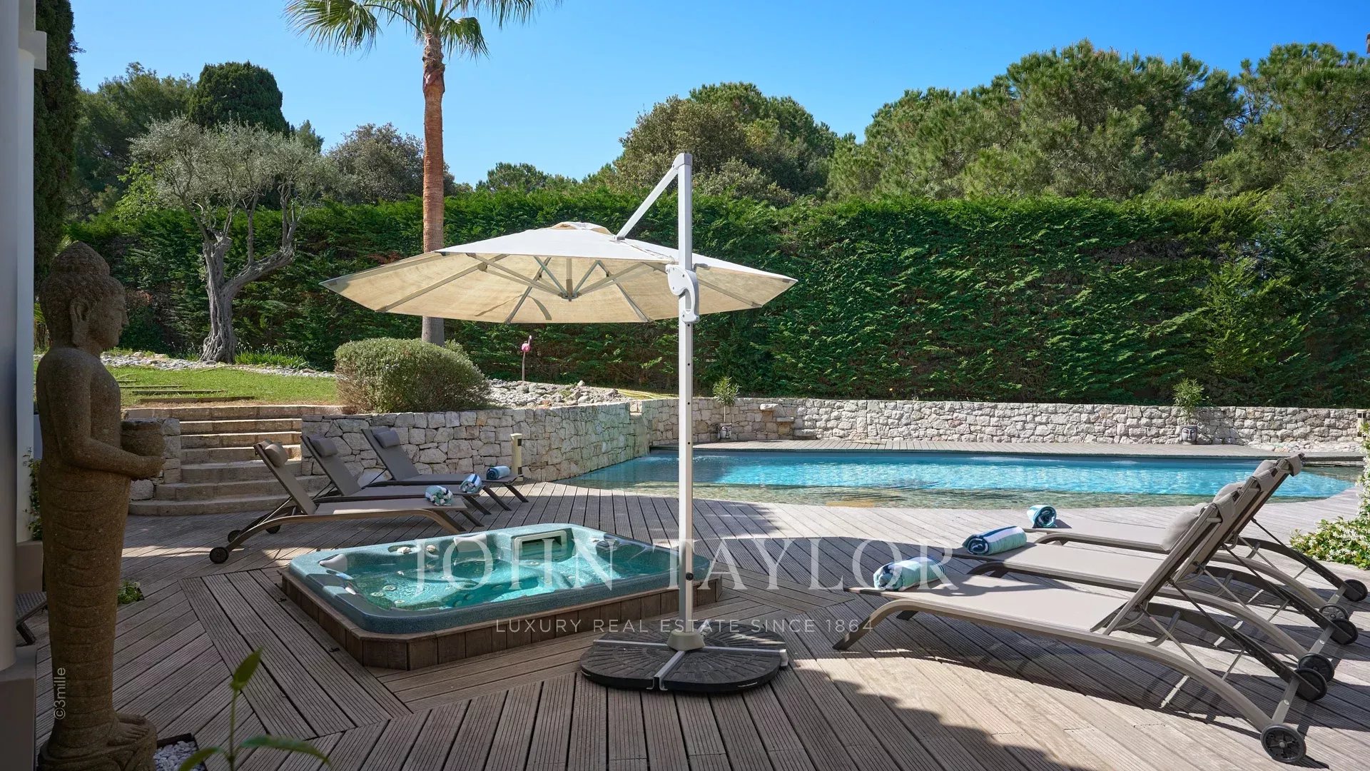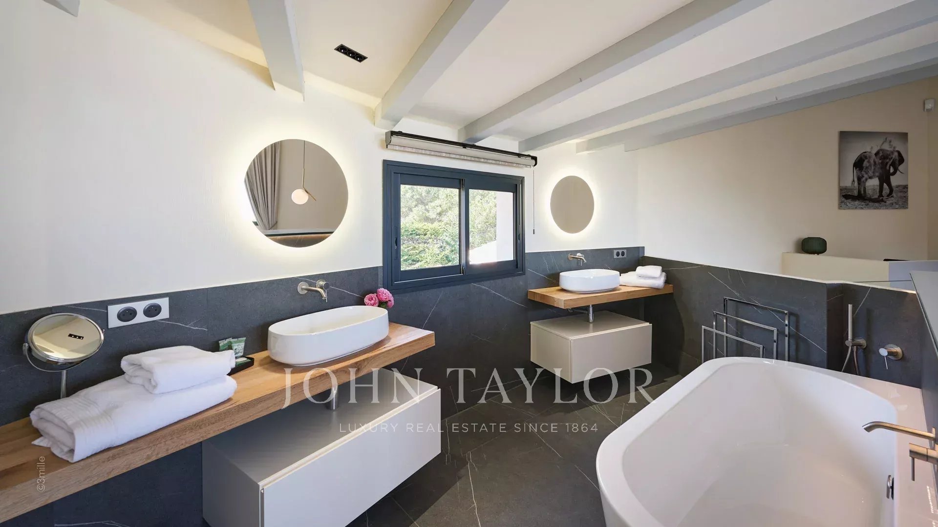 Situada a 100 metros del puerto y de las playas de La Salis y de la ciudad de Antibes, esta hermosa villa contemporánea ofrece 220 m2 de espacio habitable en el corazón de un jardín de 2000 m2.