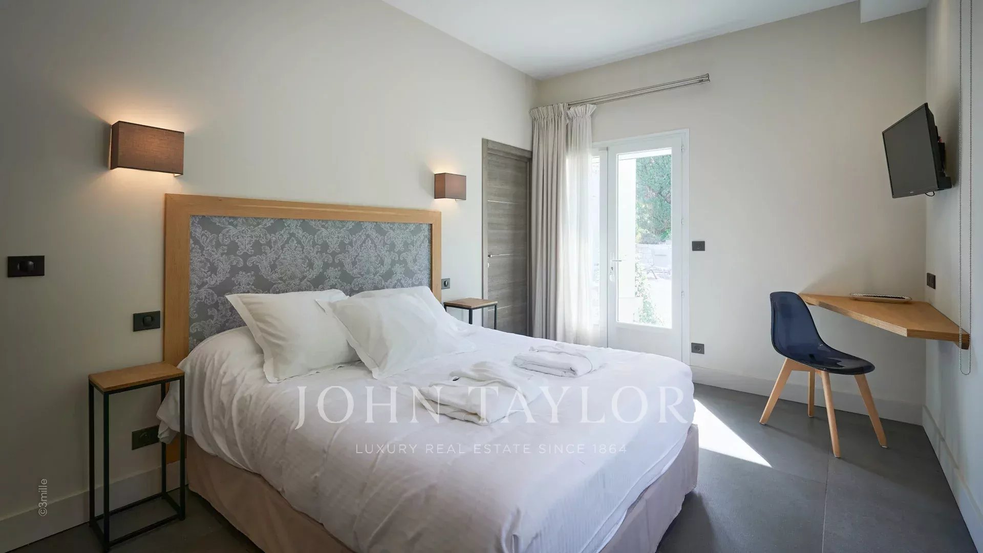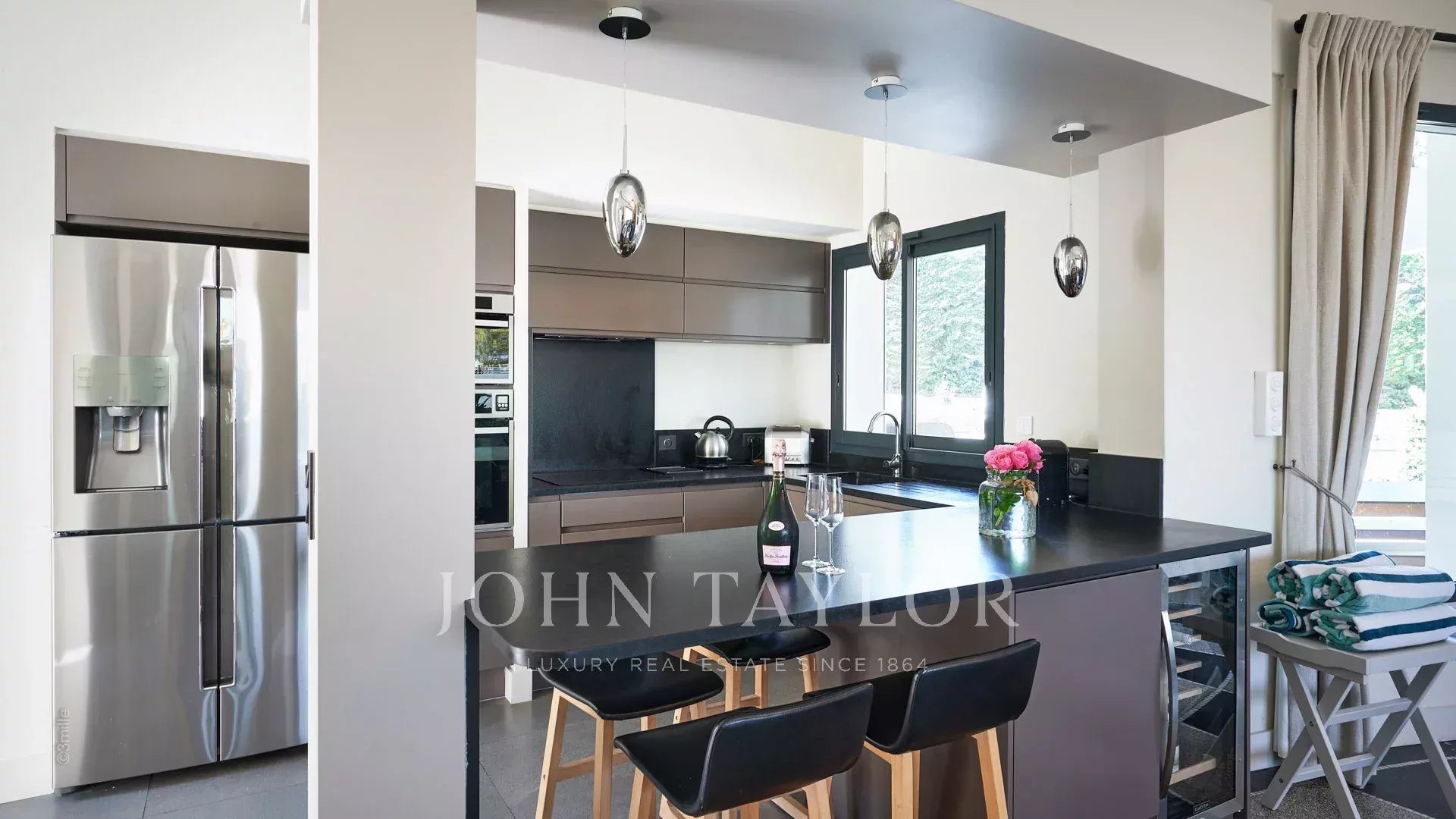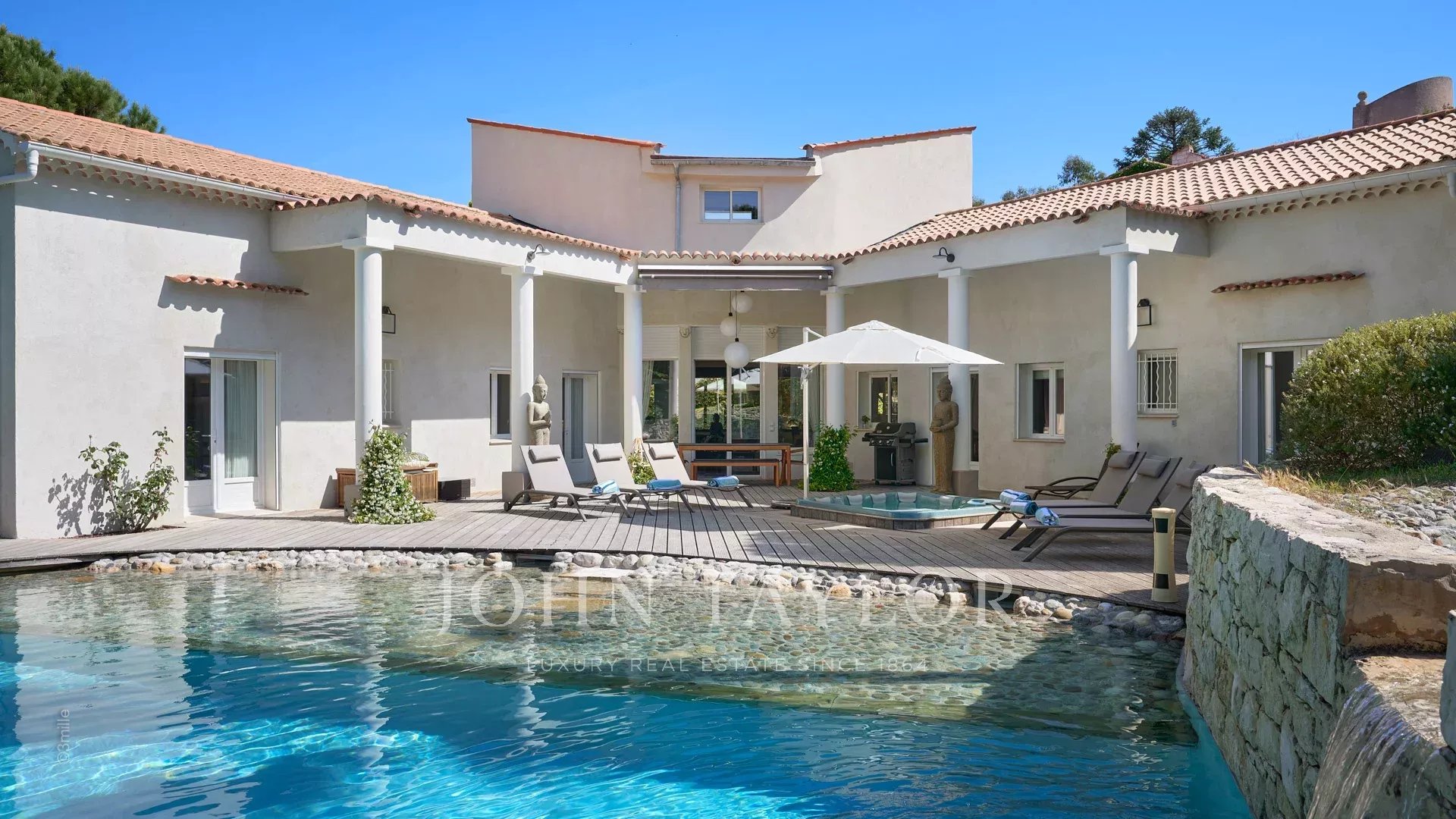 Situada a 100 metros del puerto y de las playas de La Salis y de la ciudad de Antibes, esta hermosa villa contemporánea ofrece 220 m2 de espacio habitable en el corazón de un jardín de 2000 m2.
