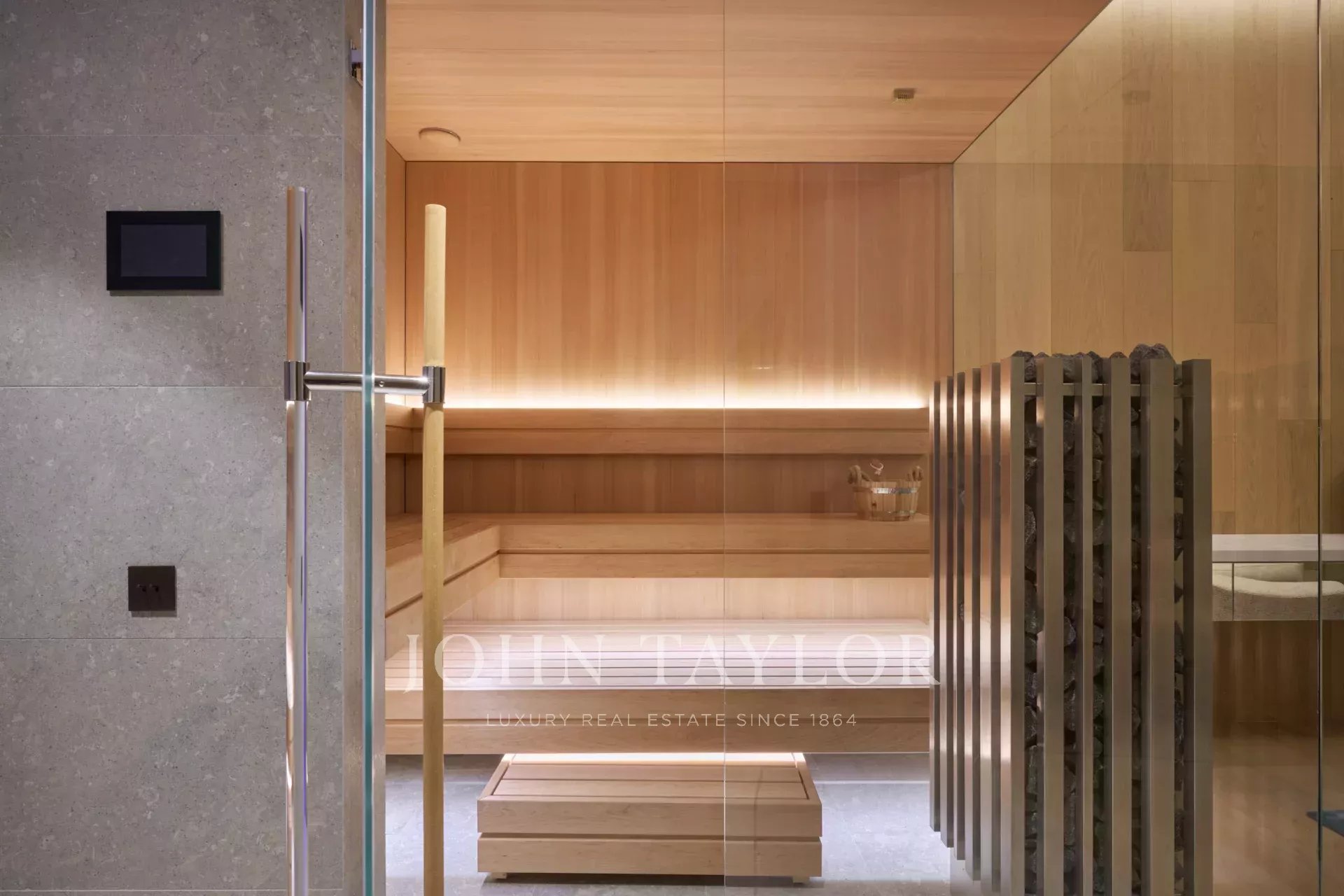 - Zona de bienestar: Un paraíso de relajación y desconexión, que incluye una sauna para rejuvenecer, una ducha sensorial para una experiencia revitalizante y una sala de TV para entretenerse.