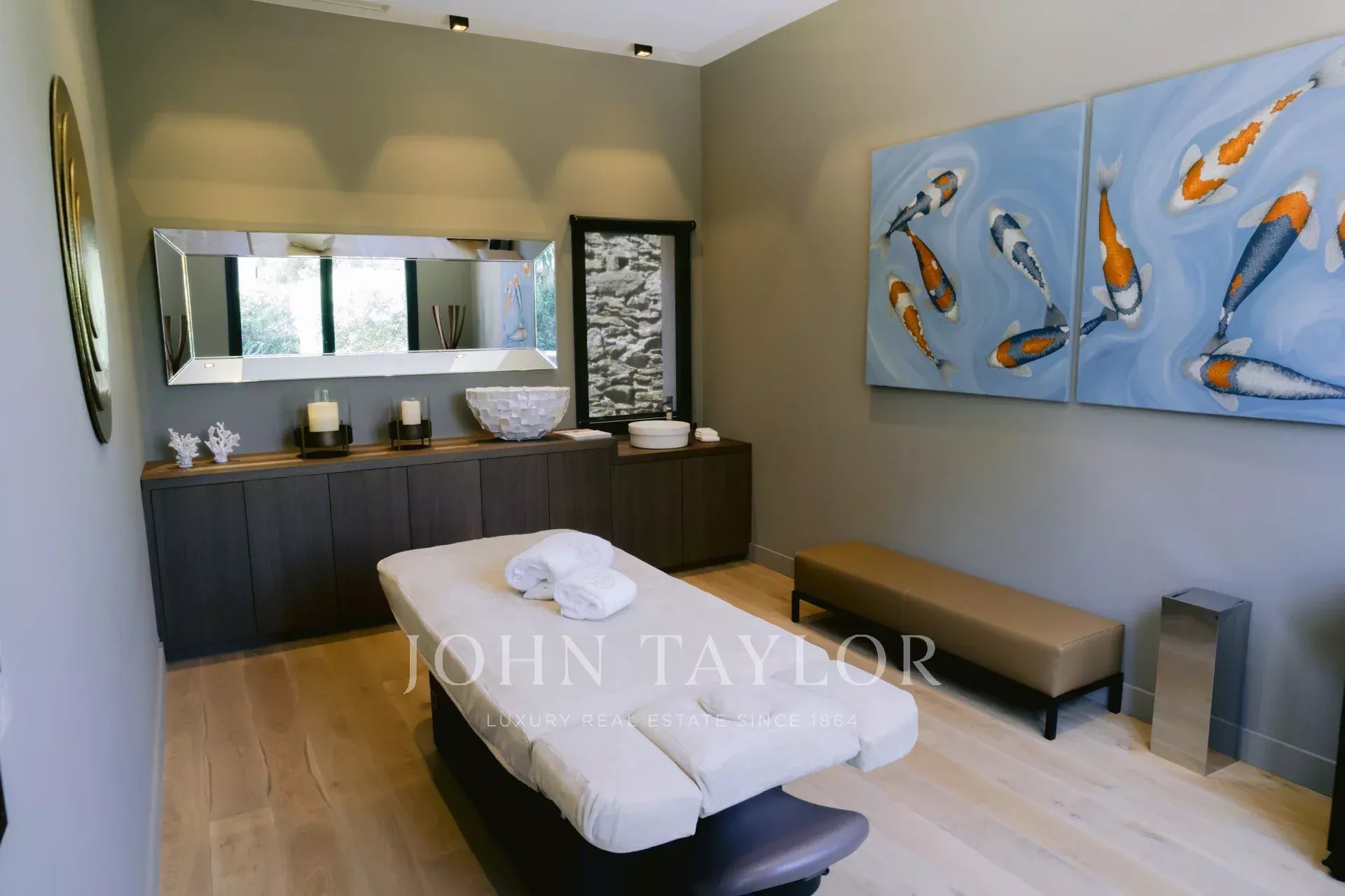 Esta villa, situada en La Croix-Valmer, cerca de la playa de Sylvabelle, ofrece 11 habitaciones espaciosas, ideales para unas vacaciones en familia. En el exterior, hay un gran jardín, una piscina, una hermosa casa de la piscina y varias terrazas donde podrá relajarse en completa tranquilidad. La villa también está equipada con un gimnasio y una sala de masajes, perfectos para momentos de bienestar y mantenimiento físico.