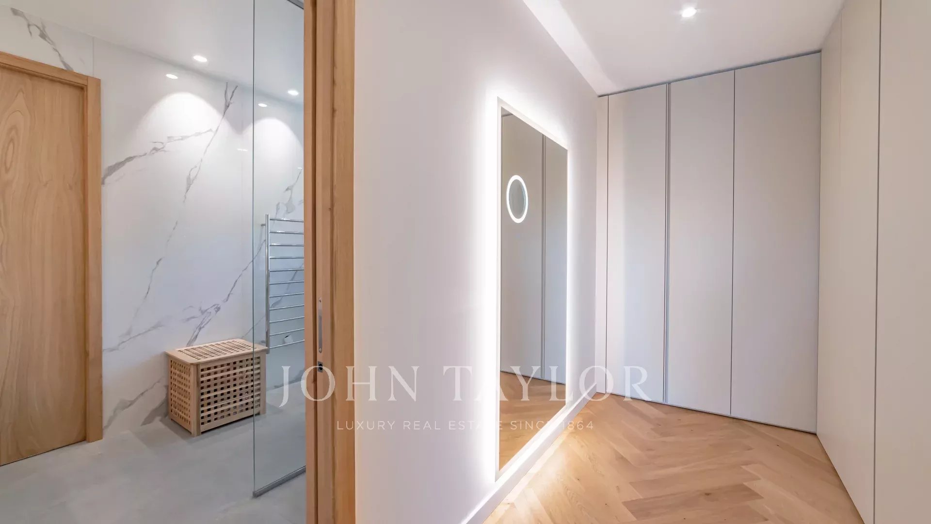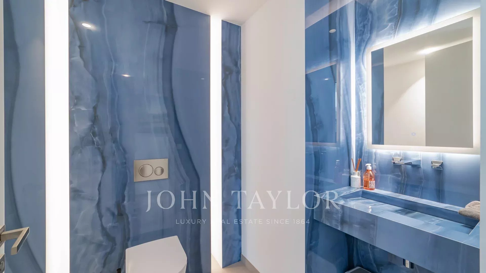 Desde la entrada, le seducirá su ambiente elegante y sofisticado. El amplio salón, bañado de luz natural gracias a sus grandes ventanales, se abre armoniosamente al exterior. Su diseño depurado, su mobiliario contemporáneo y sus obras de arte cuidadosamente seleccionadas crean un ambiente a la vez elegante y acogedor.