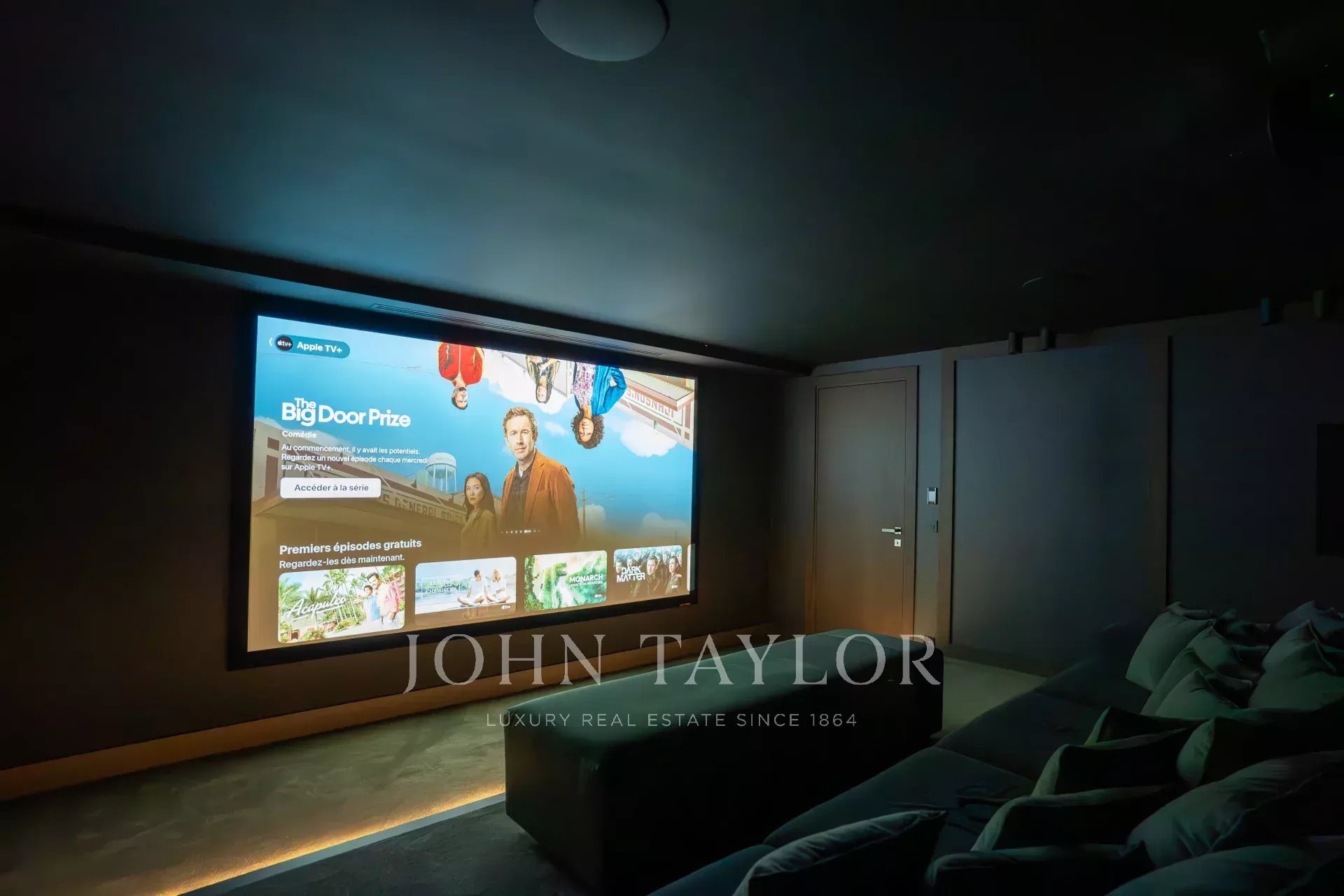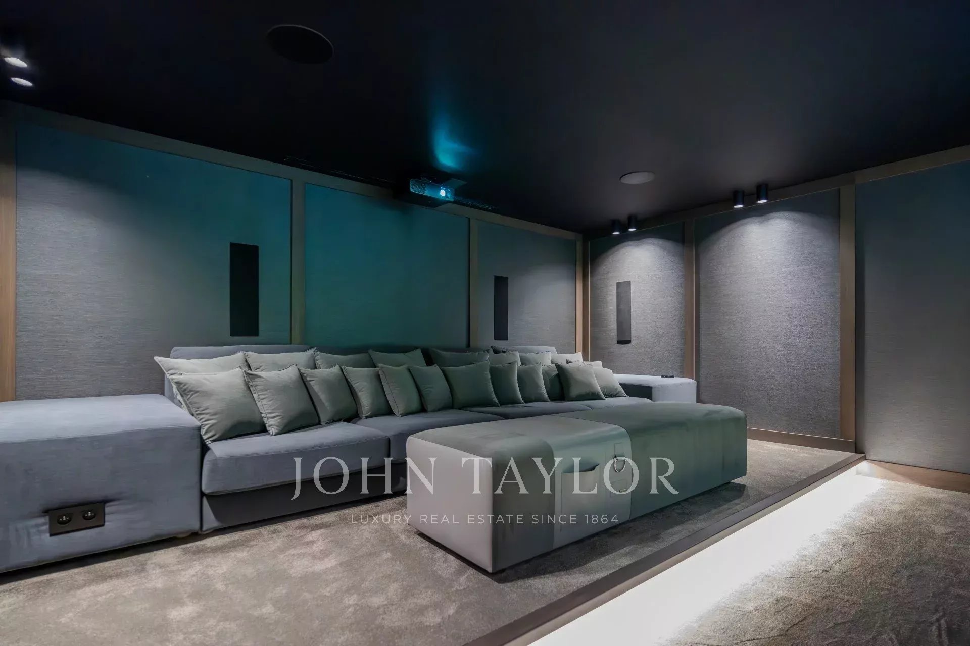 Sala de cine con asientos ultra cómodos y equipos audiovisuales de última generación para una experiencia cinematográfica envolvente.