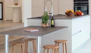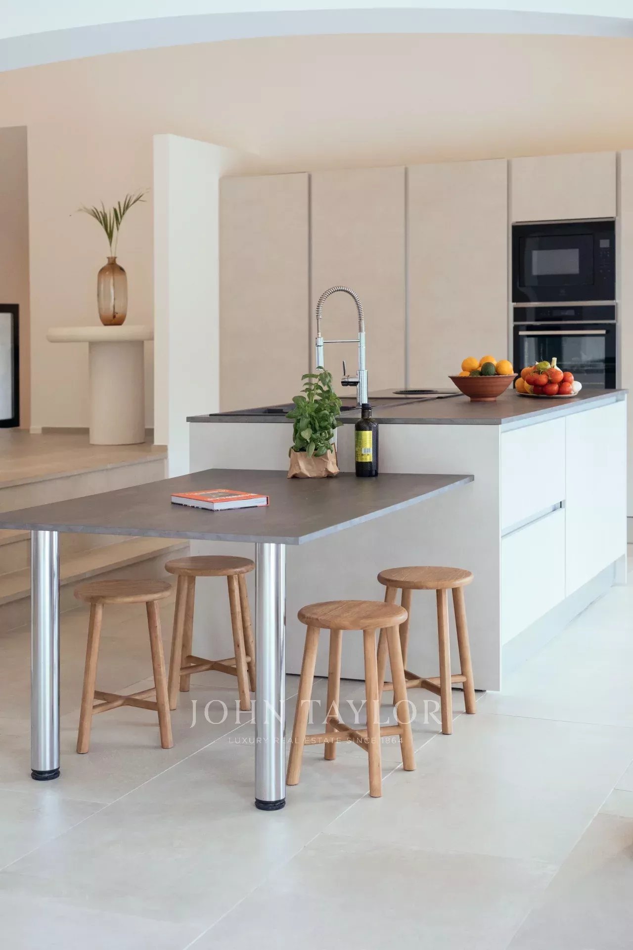 Cocina americana equipada con acceso a una gran terraza cubierta