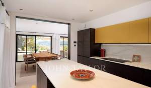 En el exterior, zona de barbacoa, muebles de jardín y una magnífica piscina infinita, perfecta para admirar las vistas de postal del mar y las colinas circundantes.