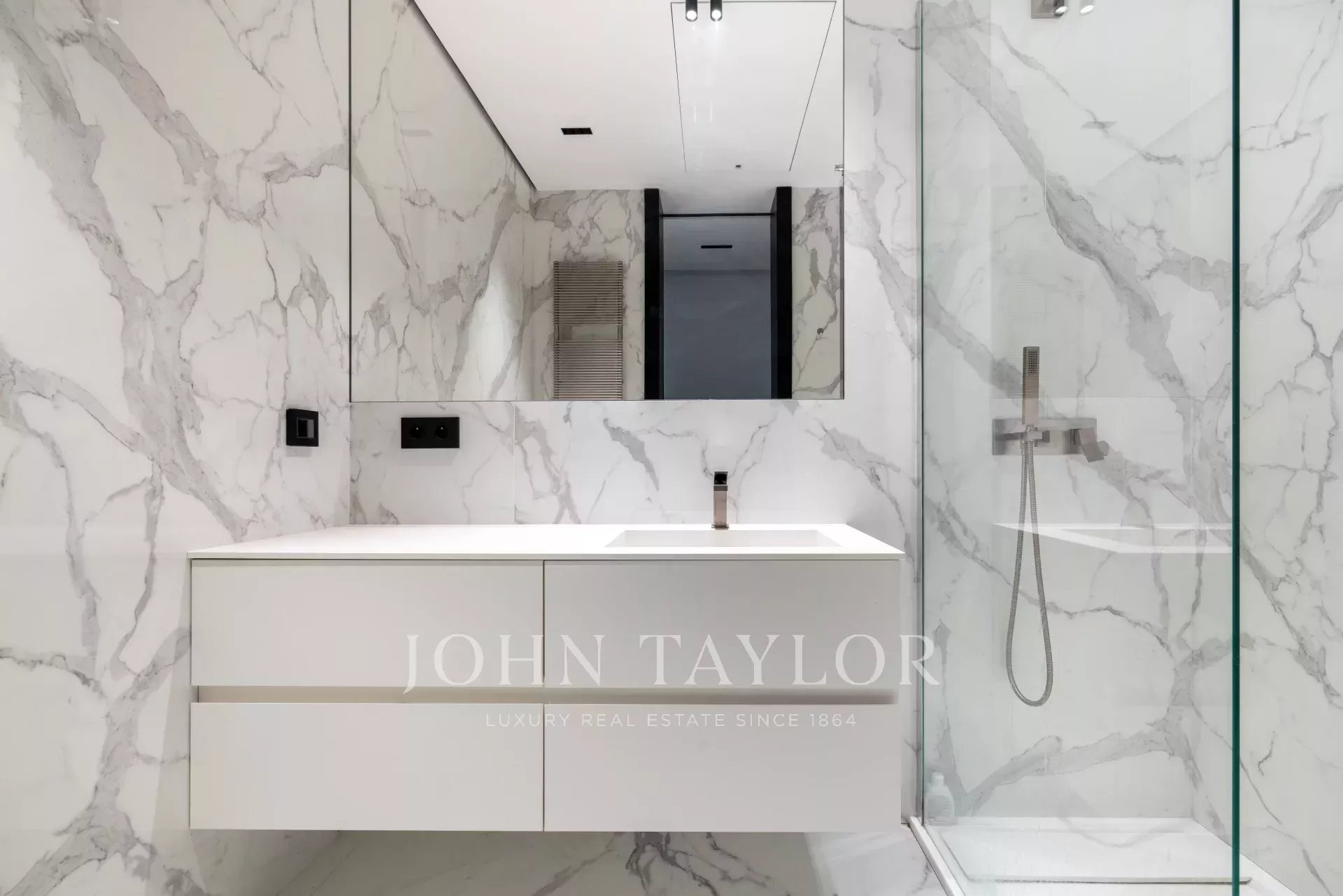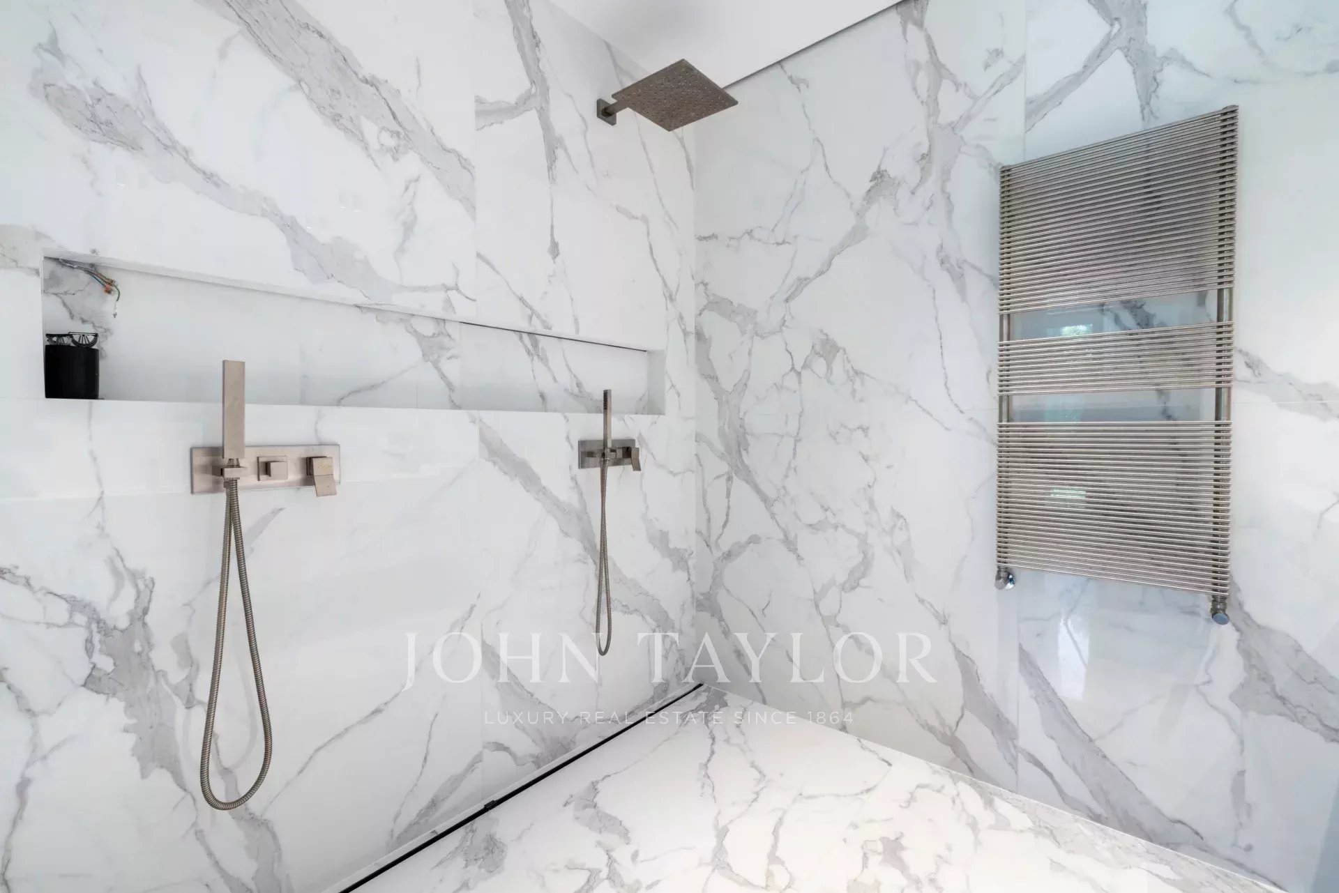 Dispone de un amplio y luminoso salón con impresionantes techos altos y una cocina totalmente equipada que da a un comedor acogedor, perfecto para recibir invitados.