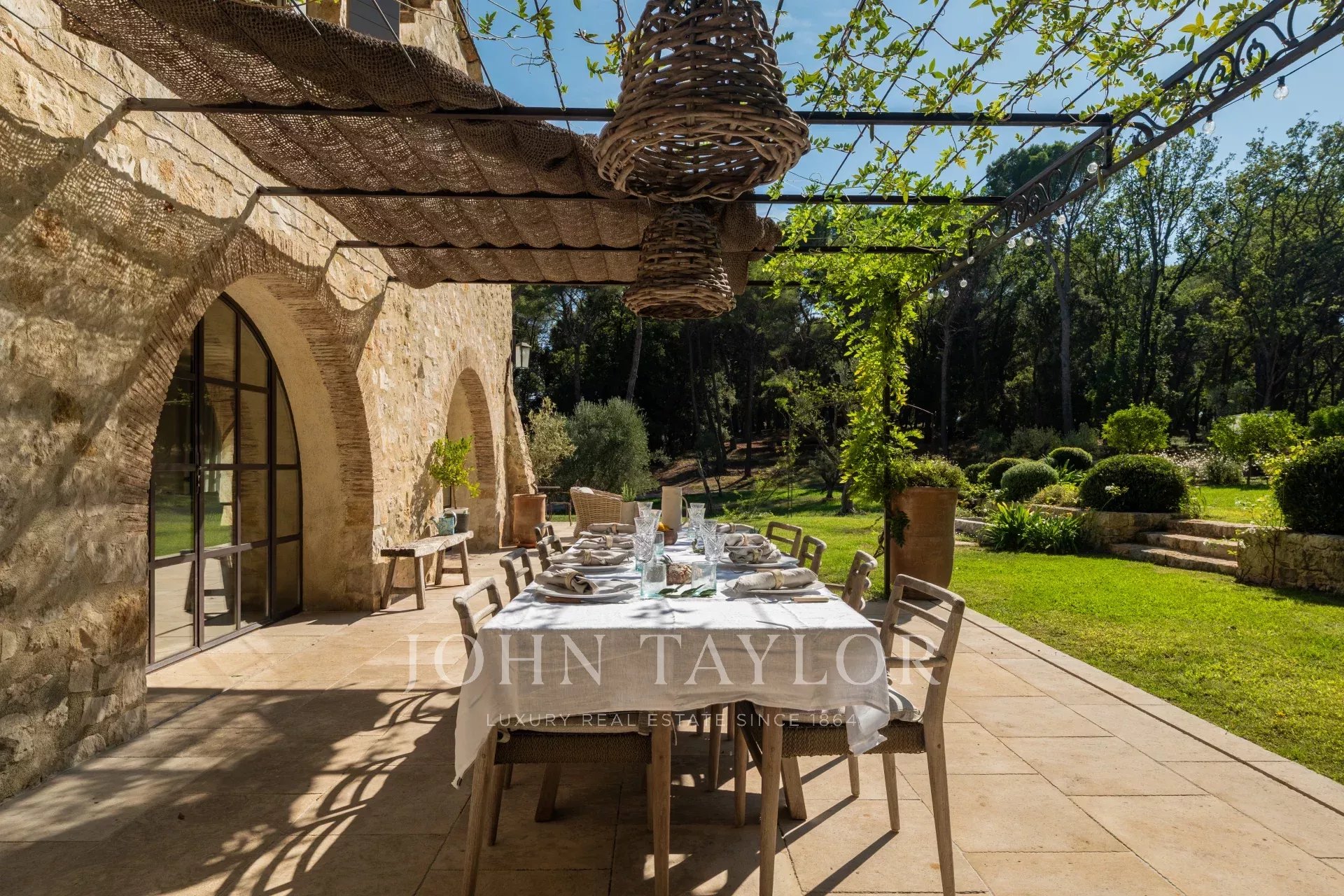 En el corazón de un gran jardín paisajista, esta propiedad de alta gama de 340 m² con dependencias le da la bienvenida para una estancia tranquila, lujosa y acogedora.