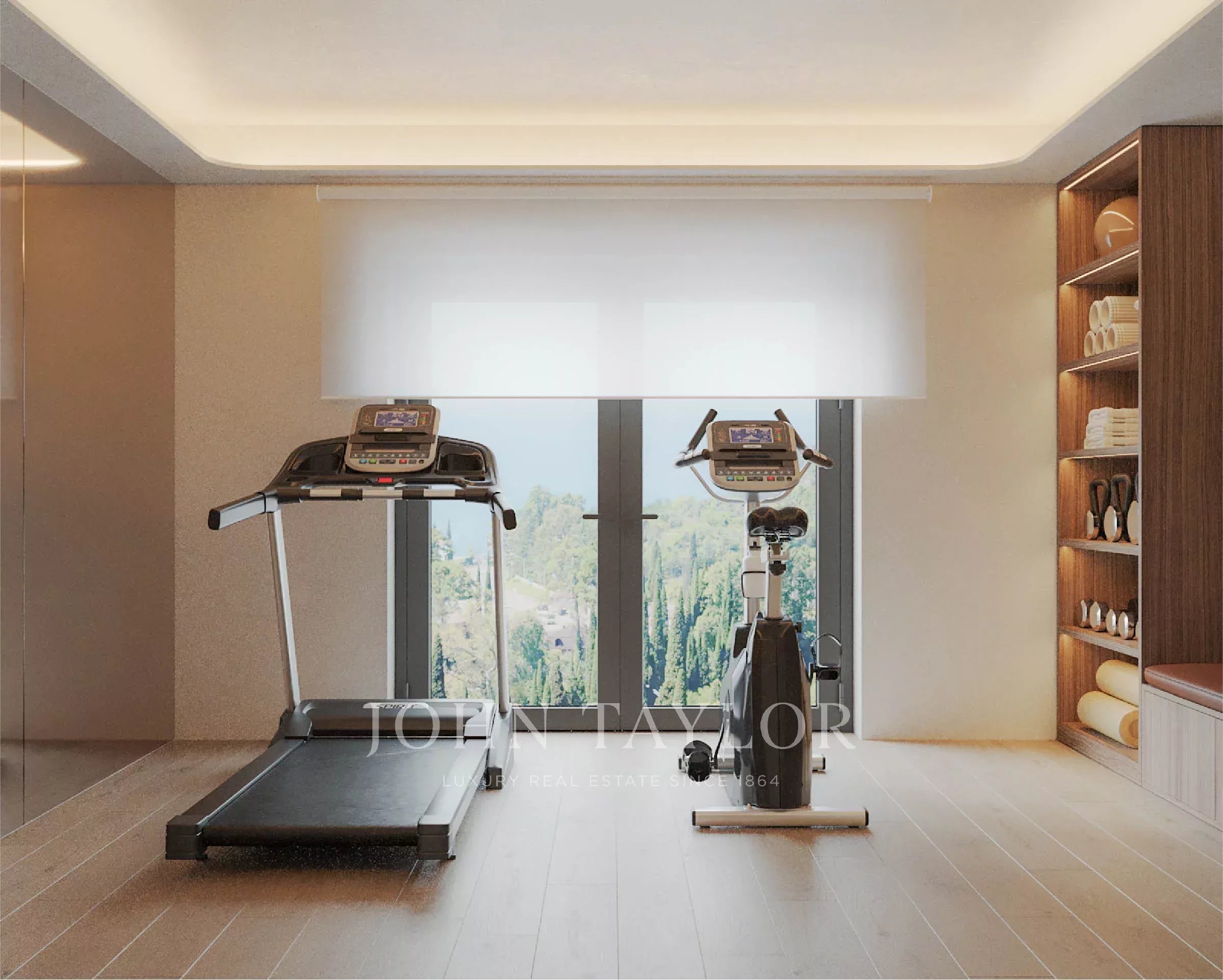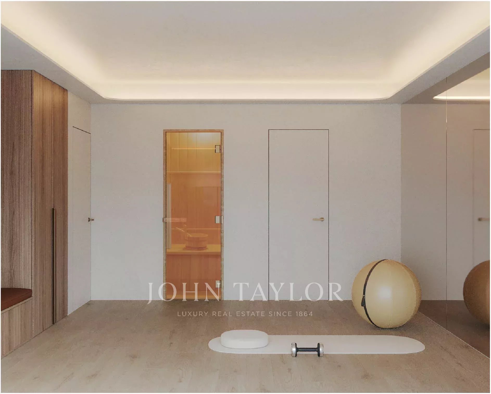 Zona de bienestar con sauna, ducha/WC y aparatos de fitness PENT.