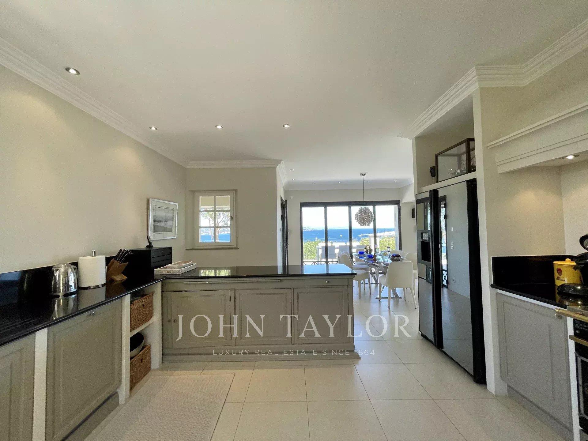 gran salón con magníficas vistas al mar, cocina bien equipada, terraza muy grande con barbacoa y una segunda terraza cubierta protegida del viento.