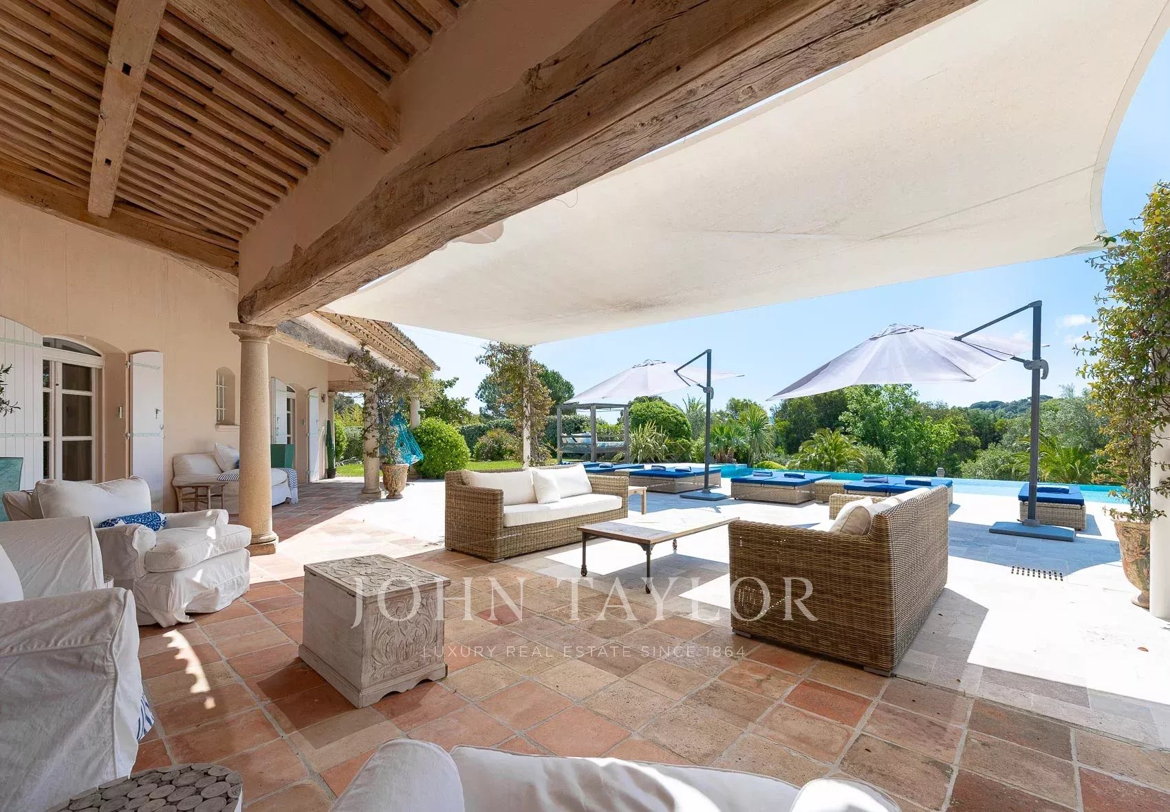 Enclavada en el corazón de magníficos viñedos, a sólo 7 minutos en coche de las famosas playas de Pampelonne, esta magnífica casa familiar ofrece paz y encanto.