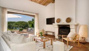 - un salón con chimenea que da a una terraza con vistas al mar y a un patio protegido del viento
