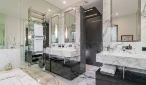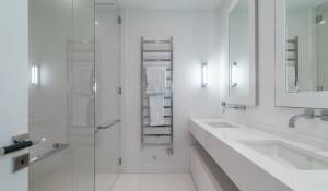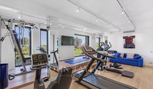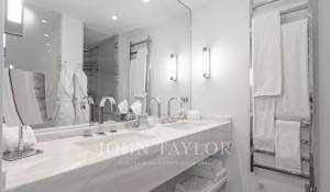 hall de entrada con aseo de invitados, gran salón con acceso a una terraza cubierta, comedor, cocina totalmente equipada con cámara frigorífica, dormitorio principal con vistas al mar sobre Pampelonne con cuarto de baño y vestidor con terraza privada.