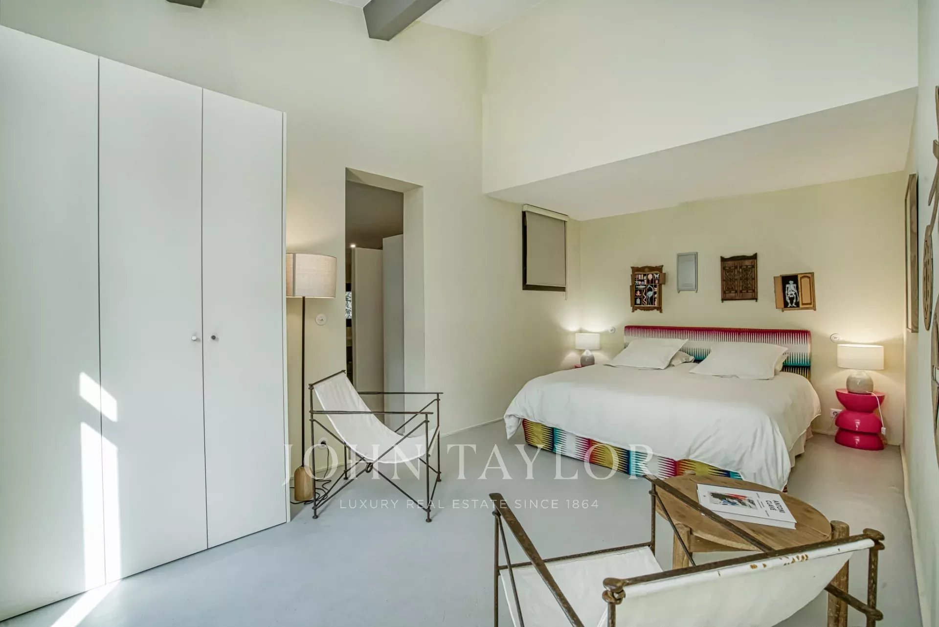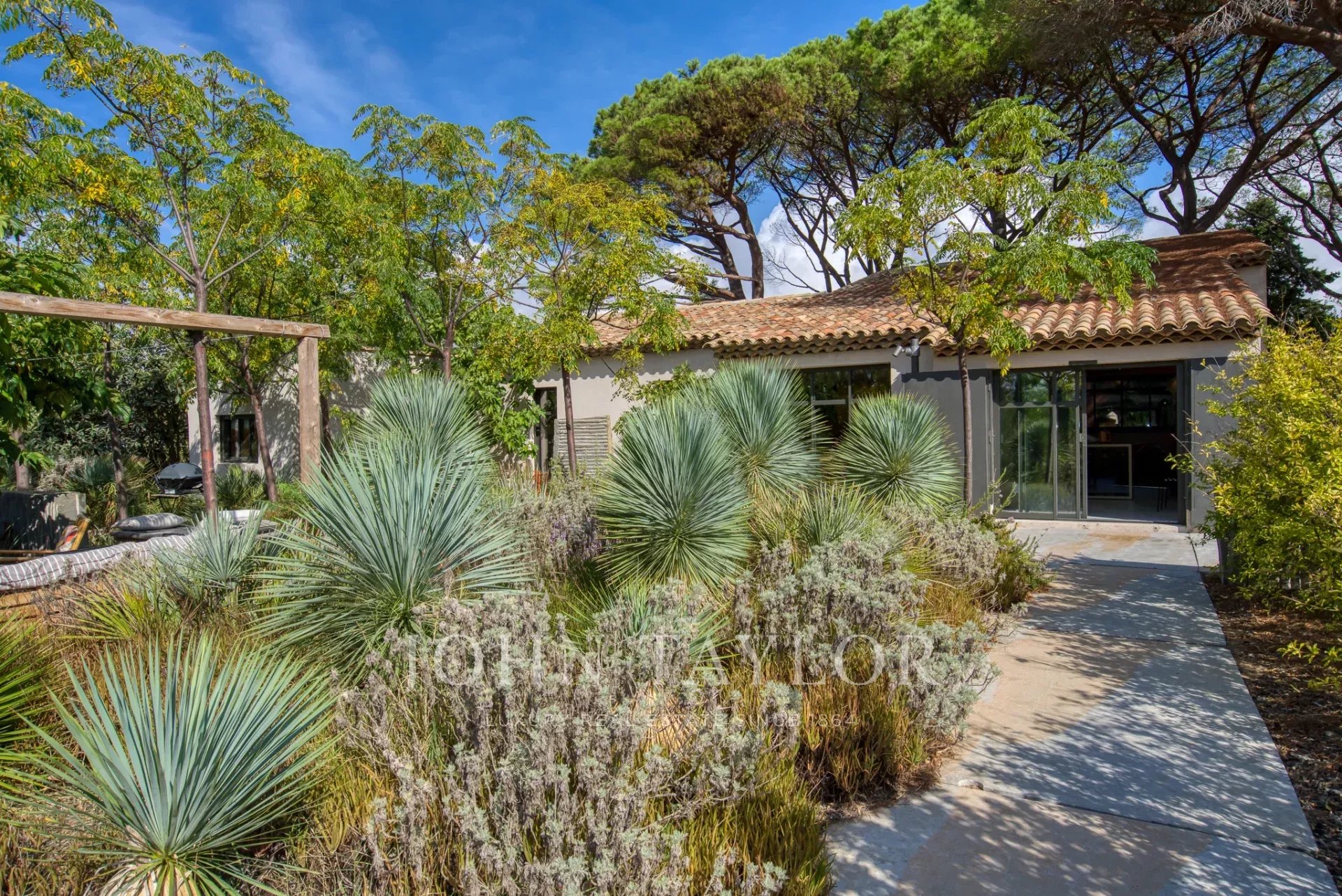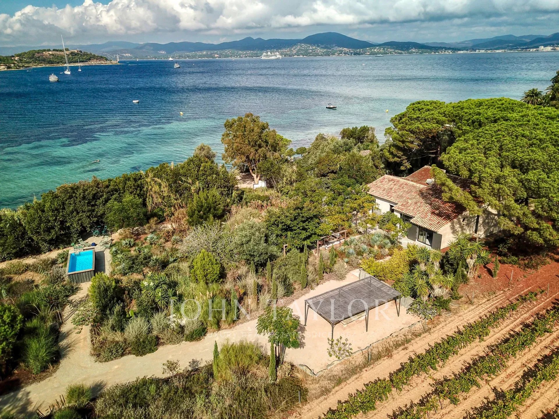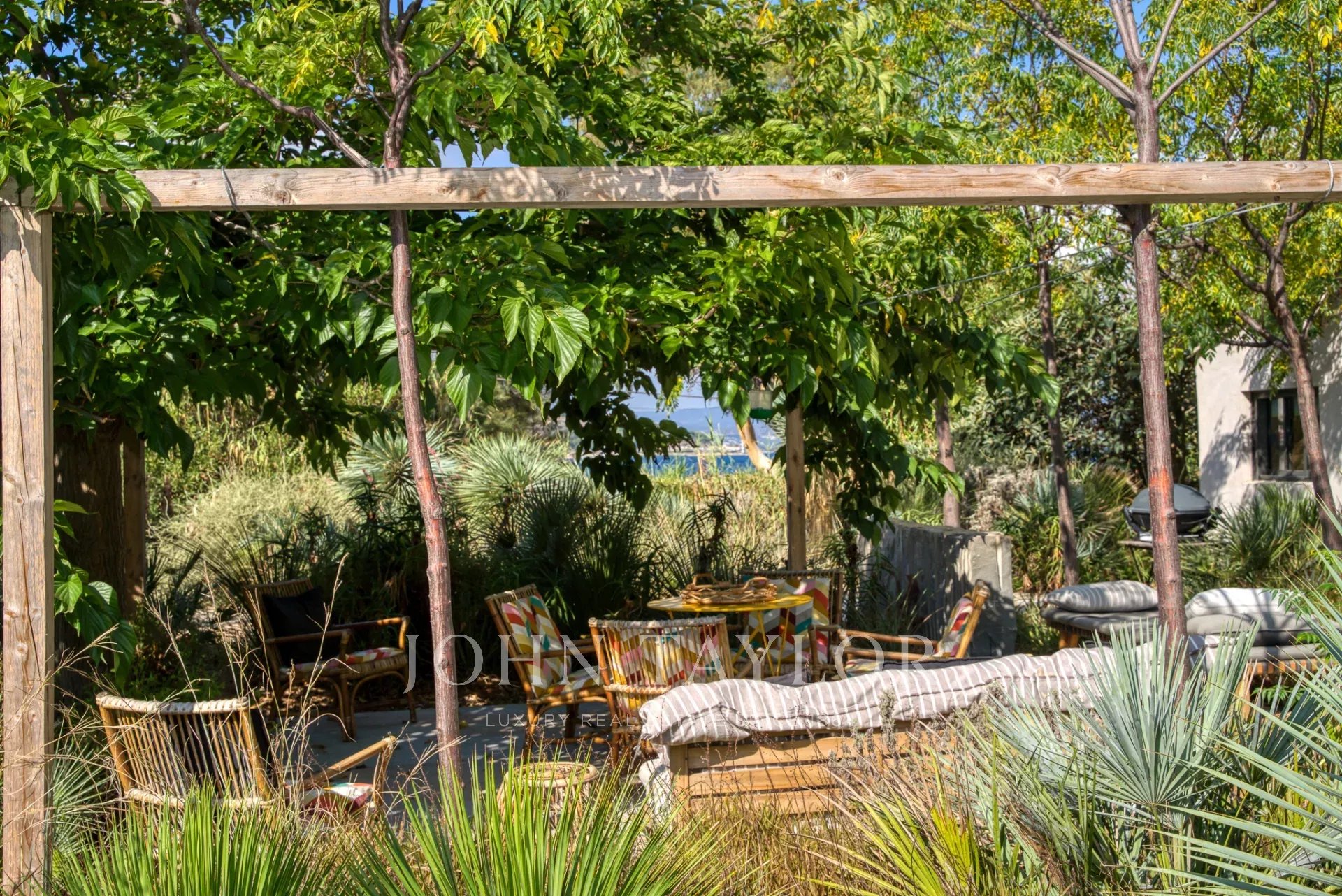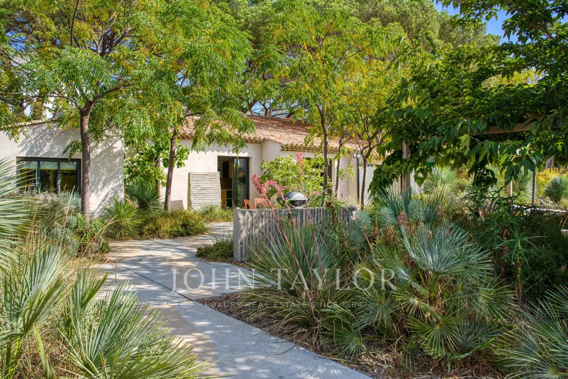 Antiguo estudio de artista, esta propiedad de 220 m2 meticulosamente renovada desprende carácter y encanto. Totalmente climatizada, cuenta con un exuberante jardín de unos 5.000 m2, cuidadosamente creado por los renombrados paisajistas Essard et Maurieres, con acceso exclusivo a la bahía de Canoubiers.