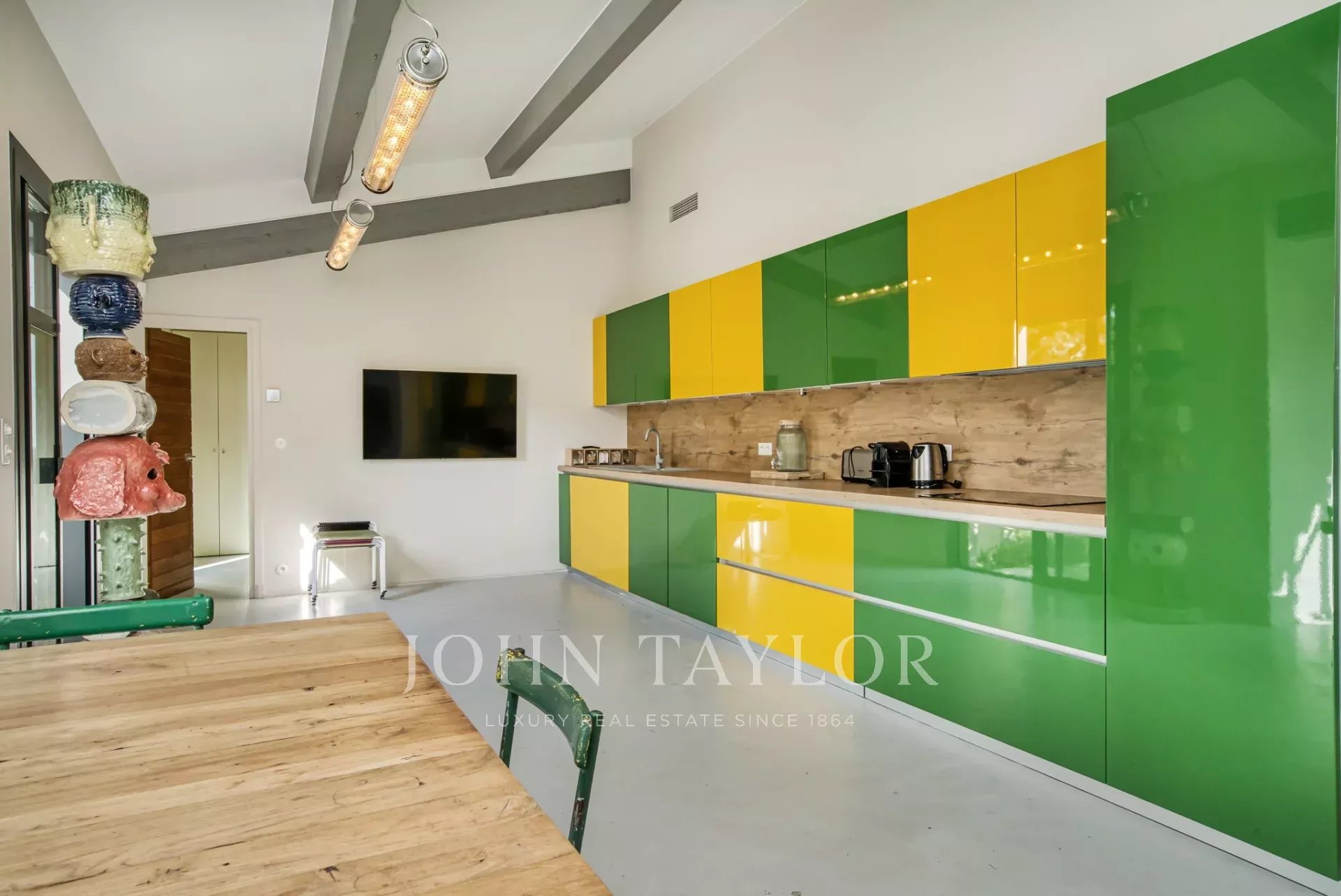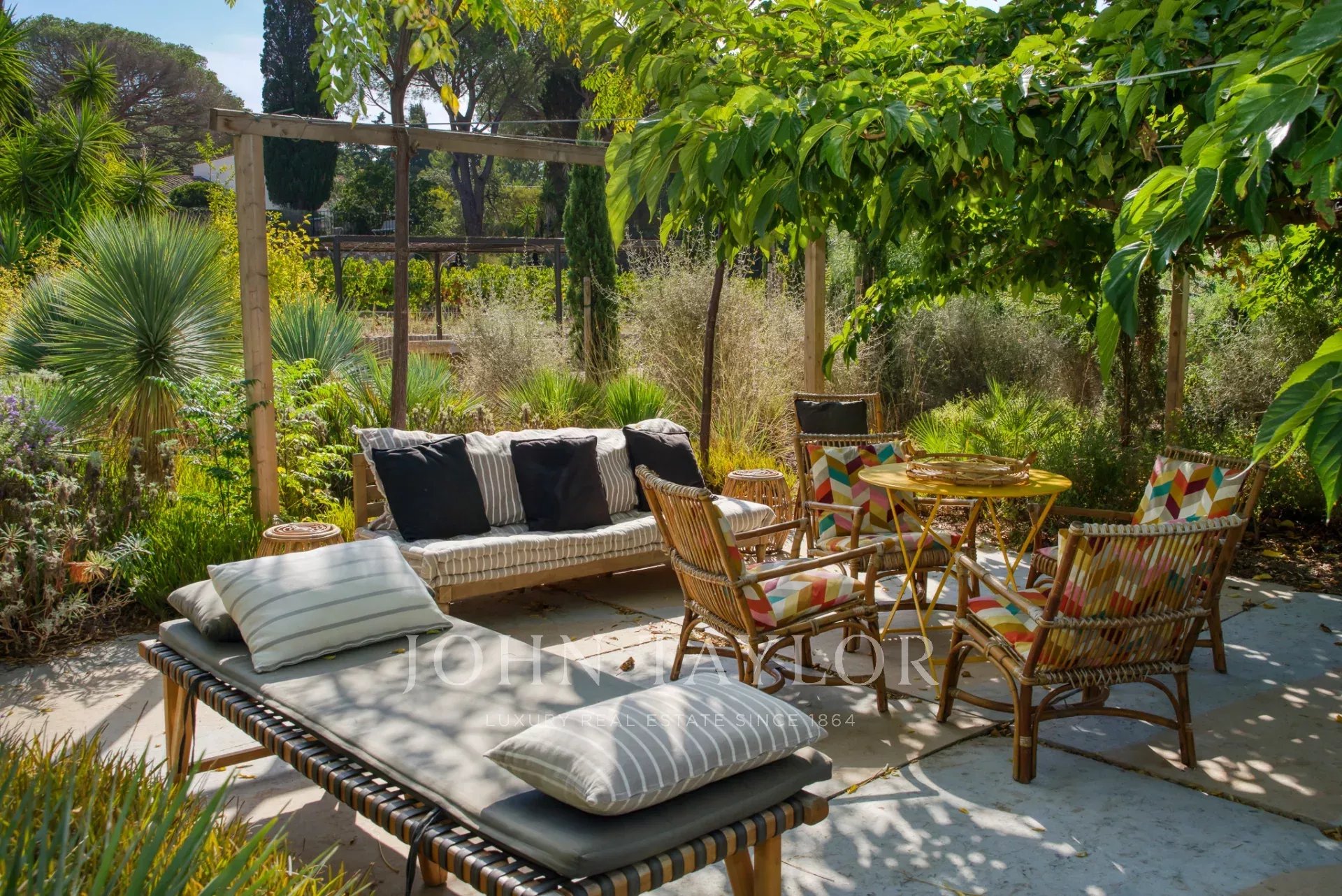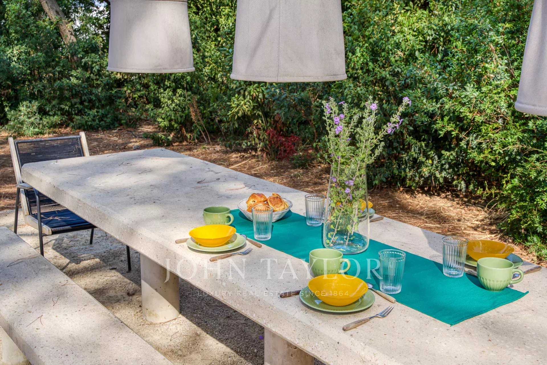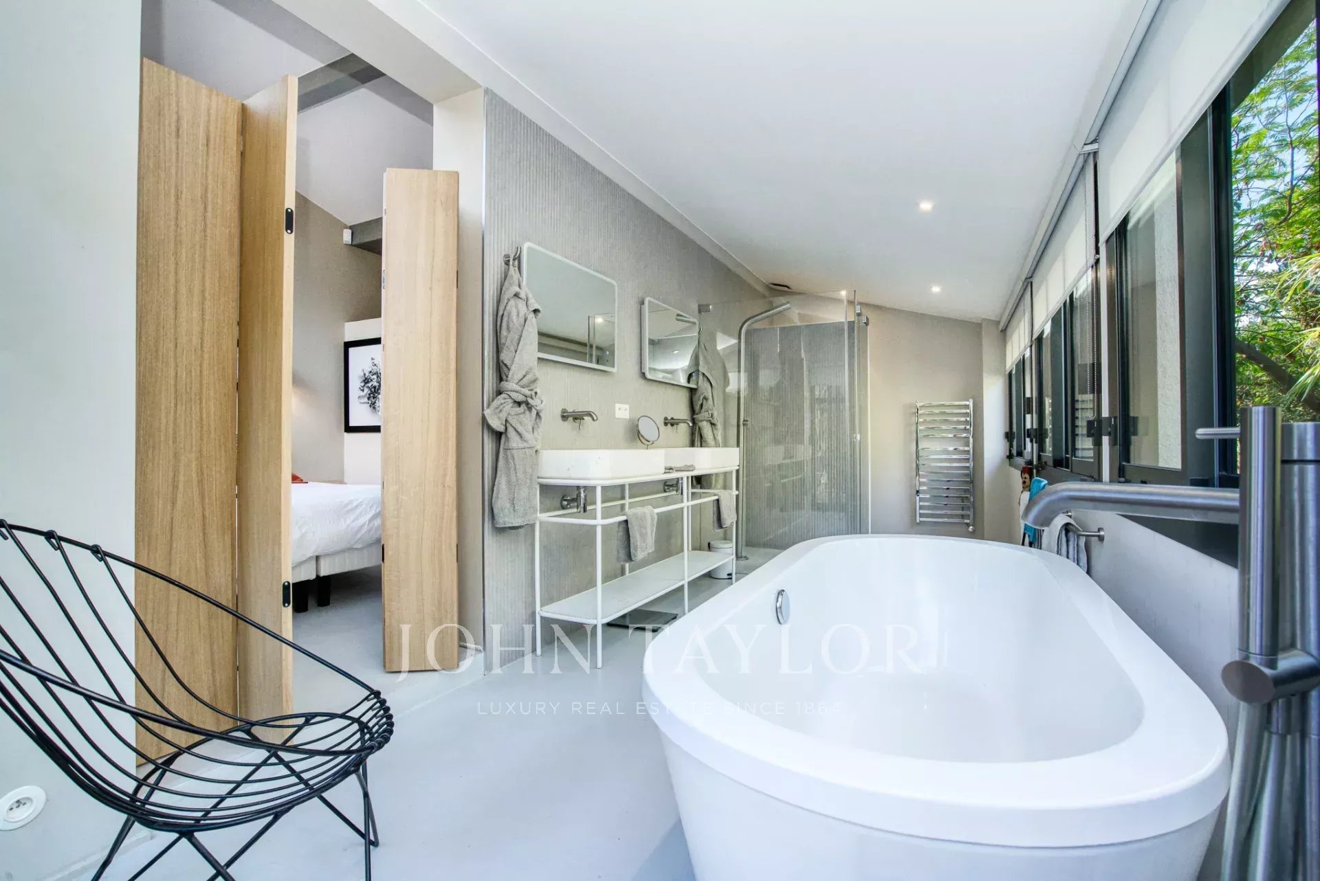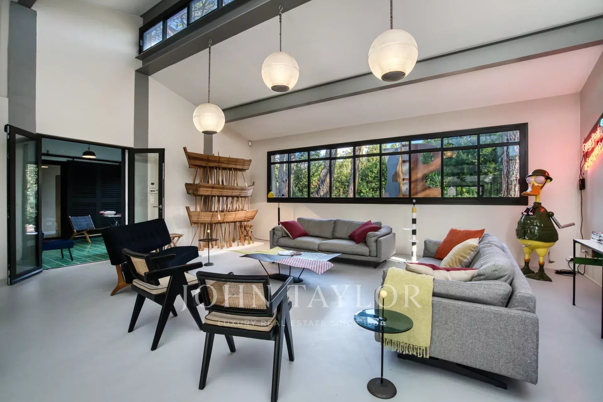 Antiguo estudio de artista, esta propiedad de 220 m2 meticulosamente renovada desprende carácter y encanto. Totalmente climatizada, cuenta con un exuberante jardín de unos 5.000 m2, cuidadosamente creado por los renombrados paisajistas Essard et Maurieres, con acceso exclusivo a la bahía de Canoubiers.