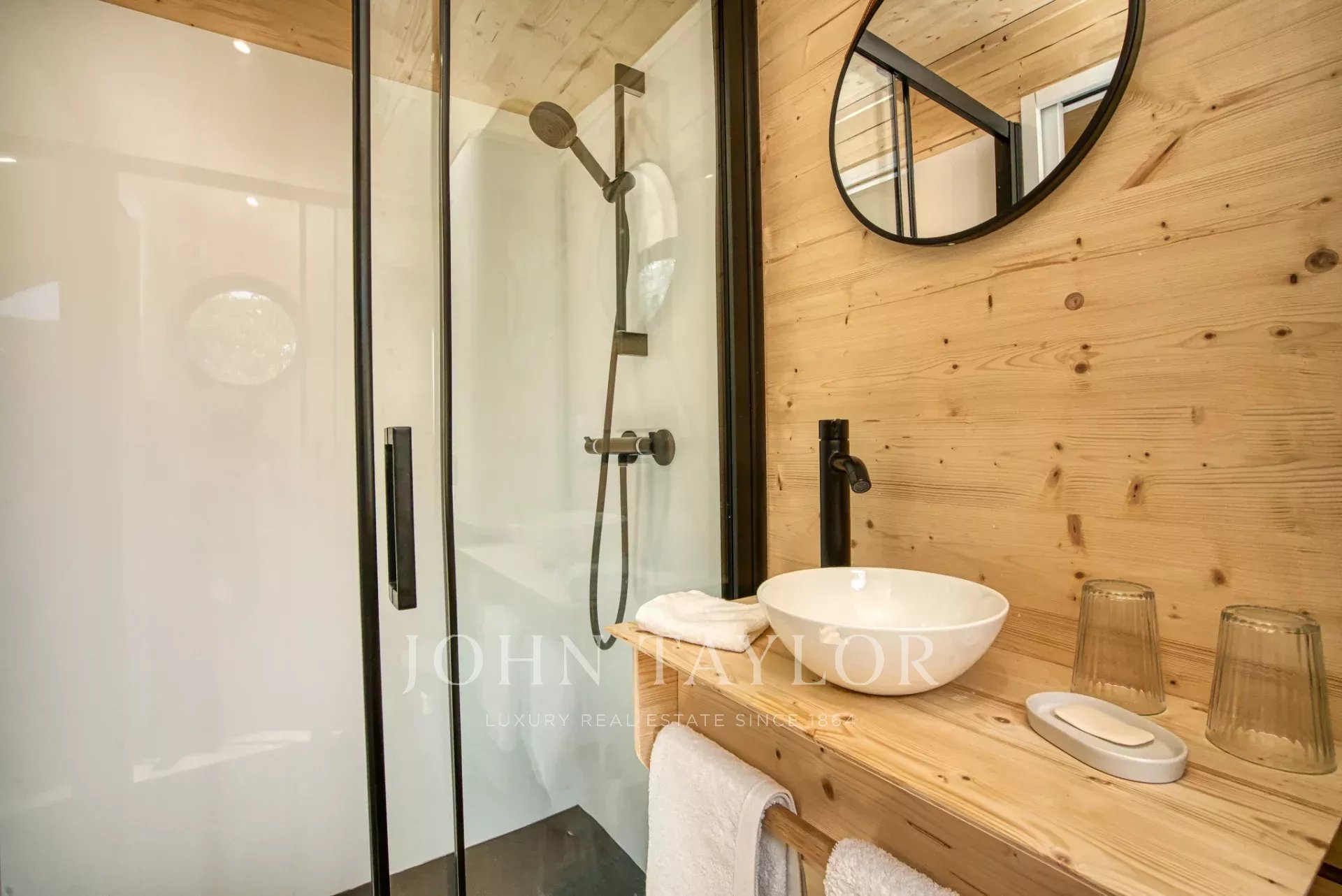 Tres dormitorios con amplio espacio de almacenamiento, cada uno con cuarto de baño en suite, incluyendo dos cuartos de ducha.