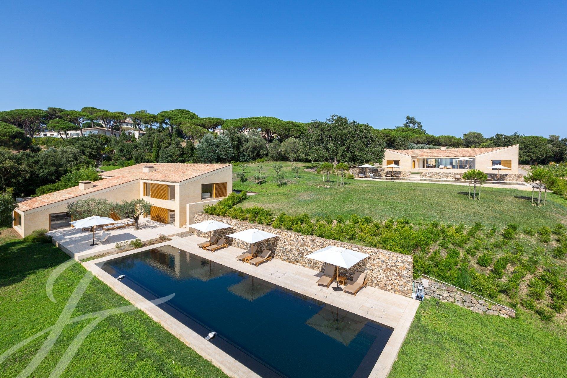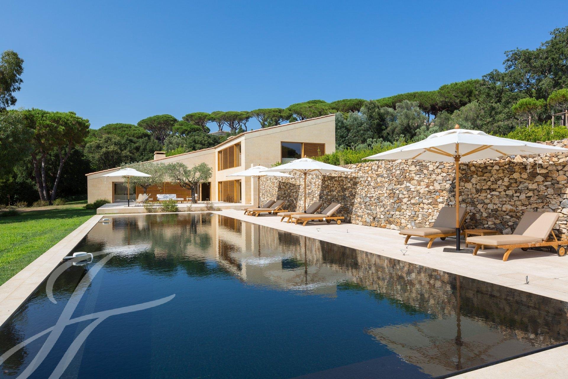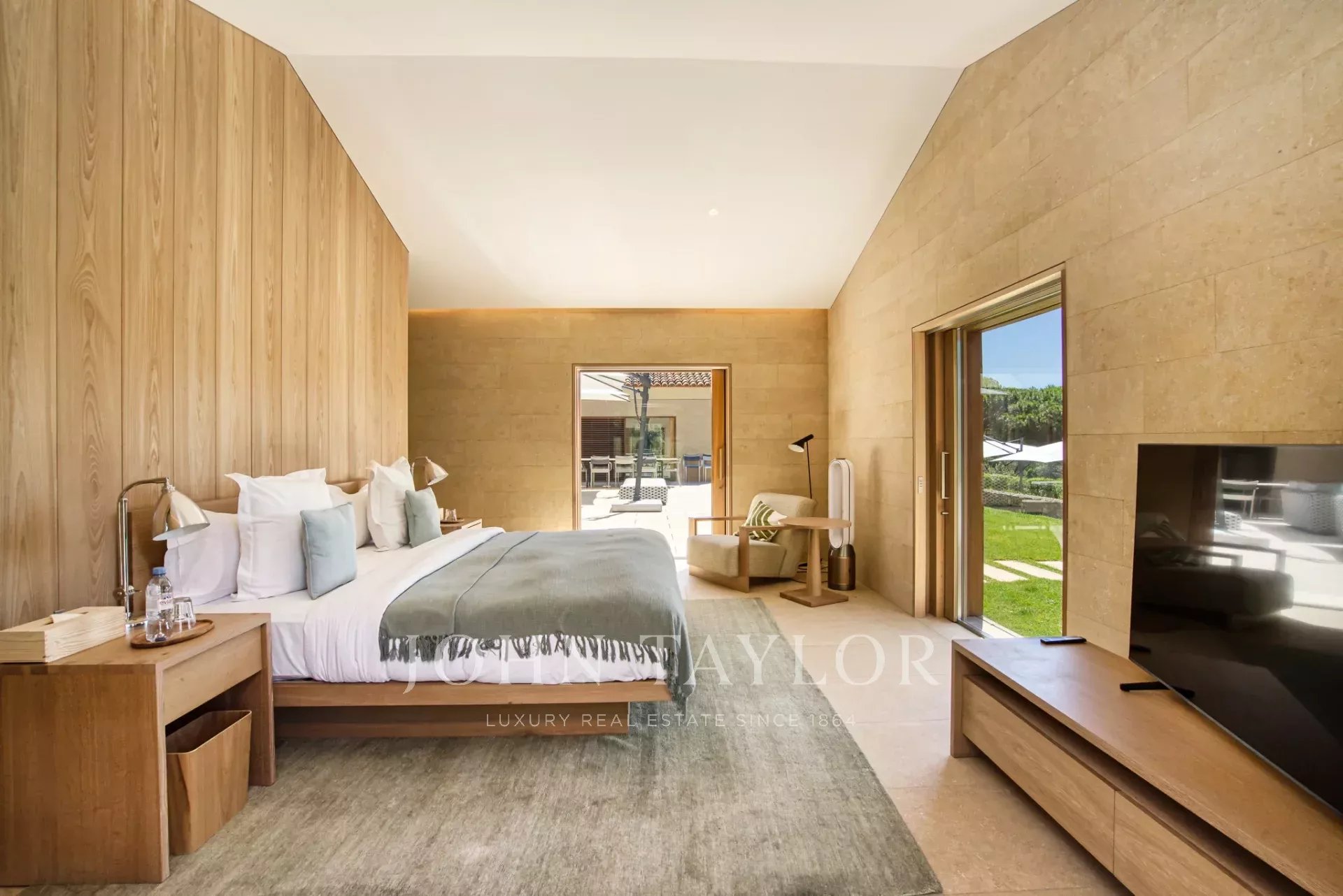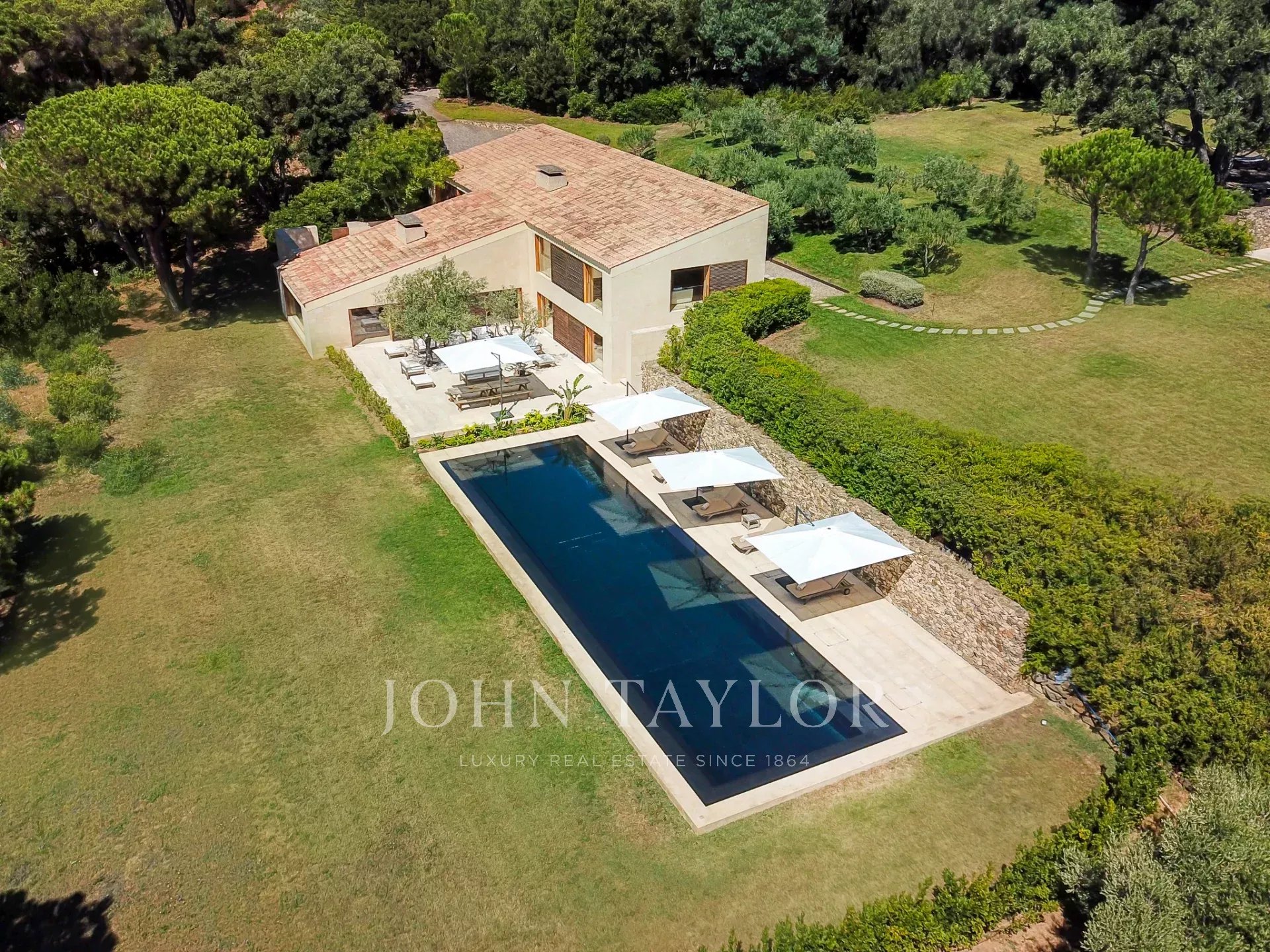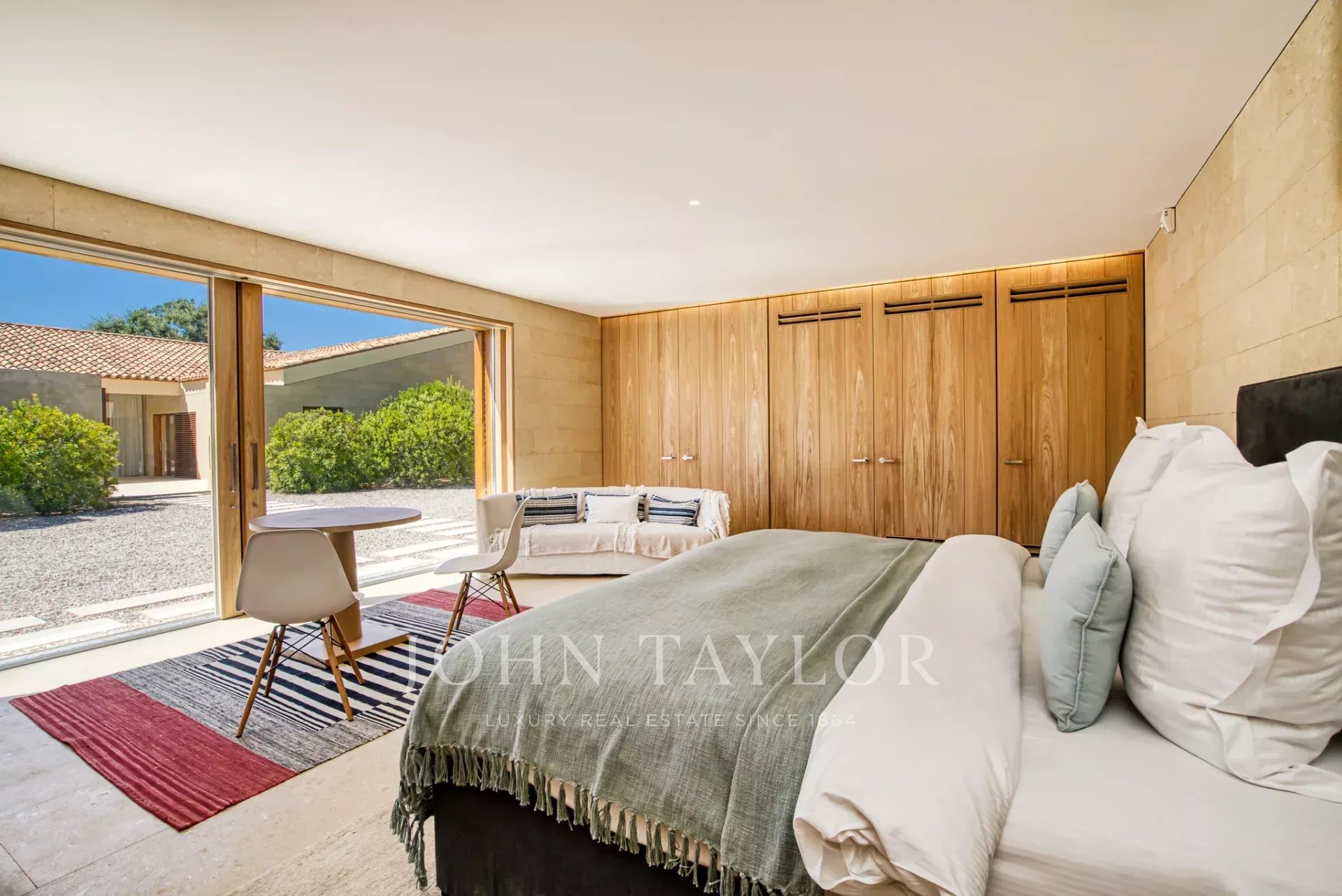 Exclusiva finca situada en los Parcs de Saint-Tropez, que puede alquilarse en su totalidad (8 habitaciones), diseñada por el arquitecto británico John Pawson y que consta de las siguientes estancias