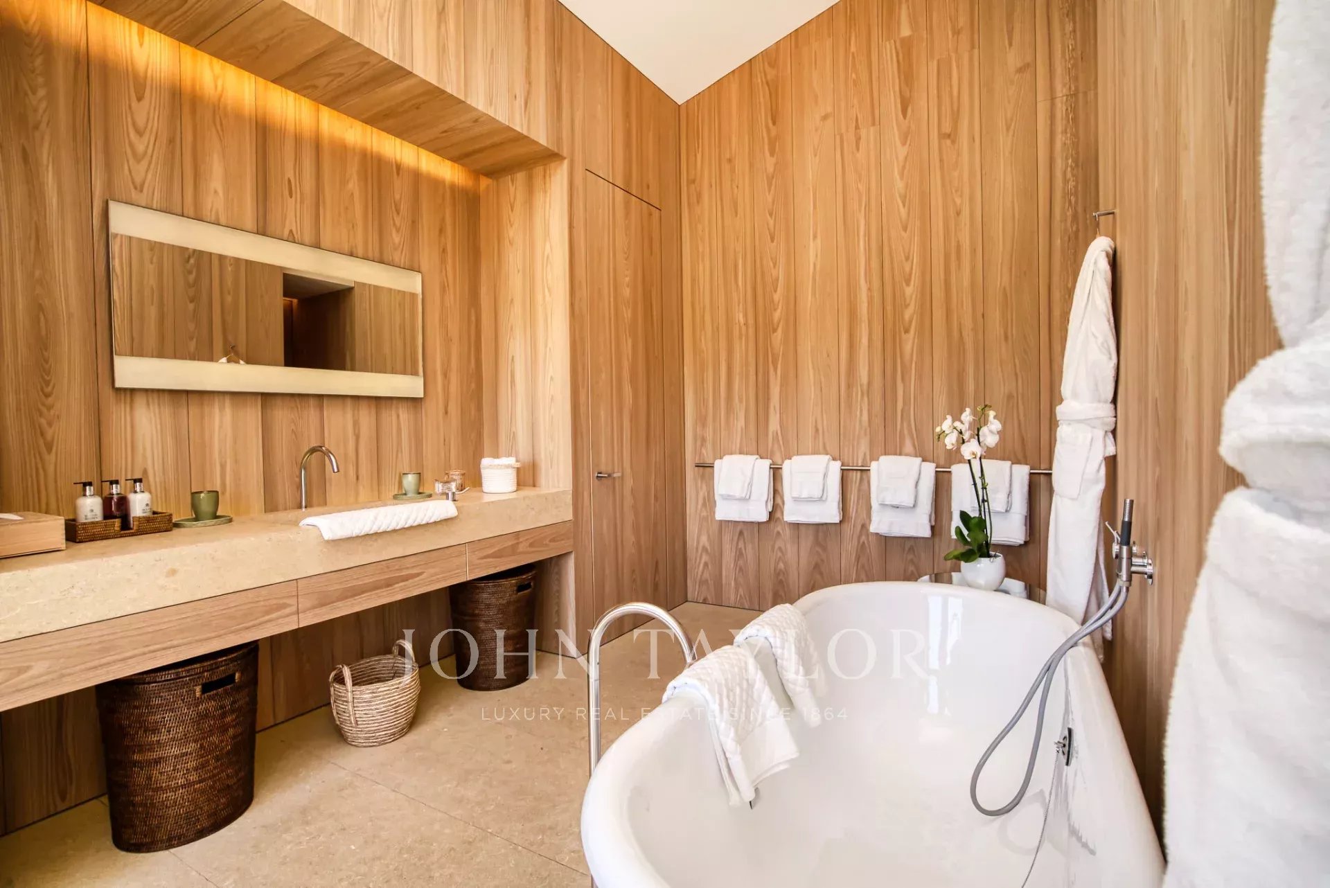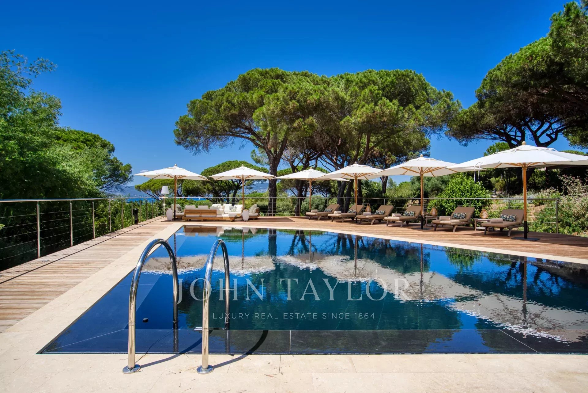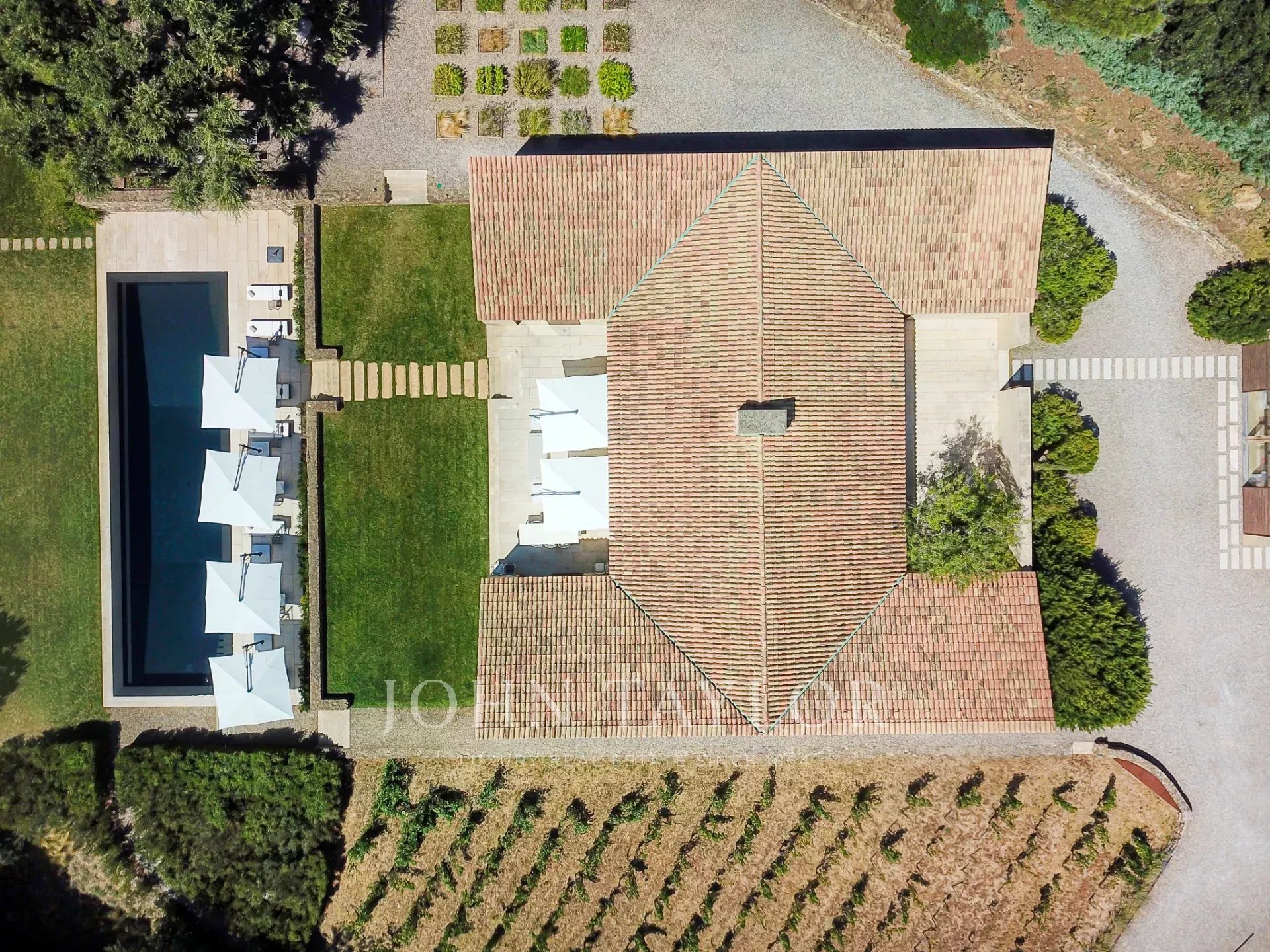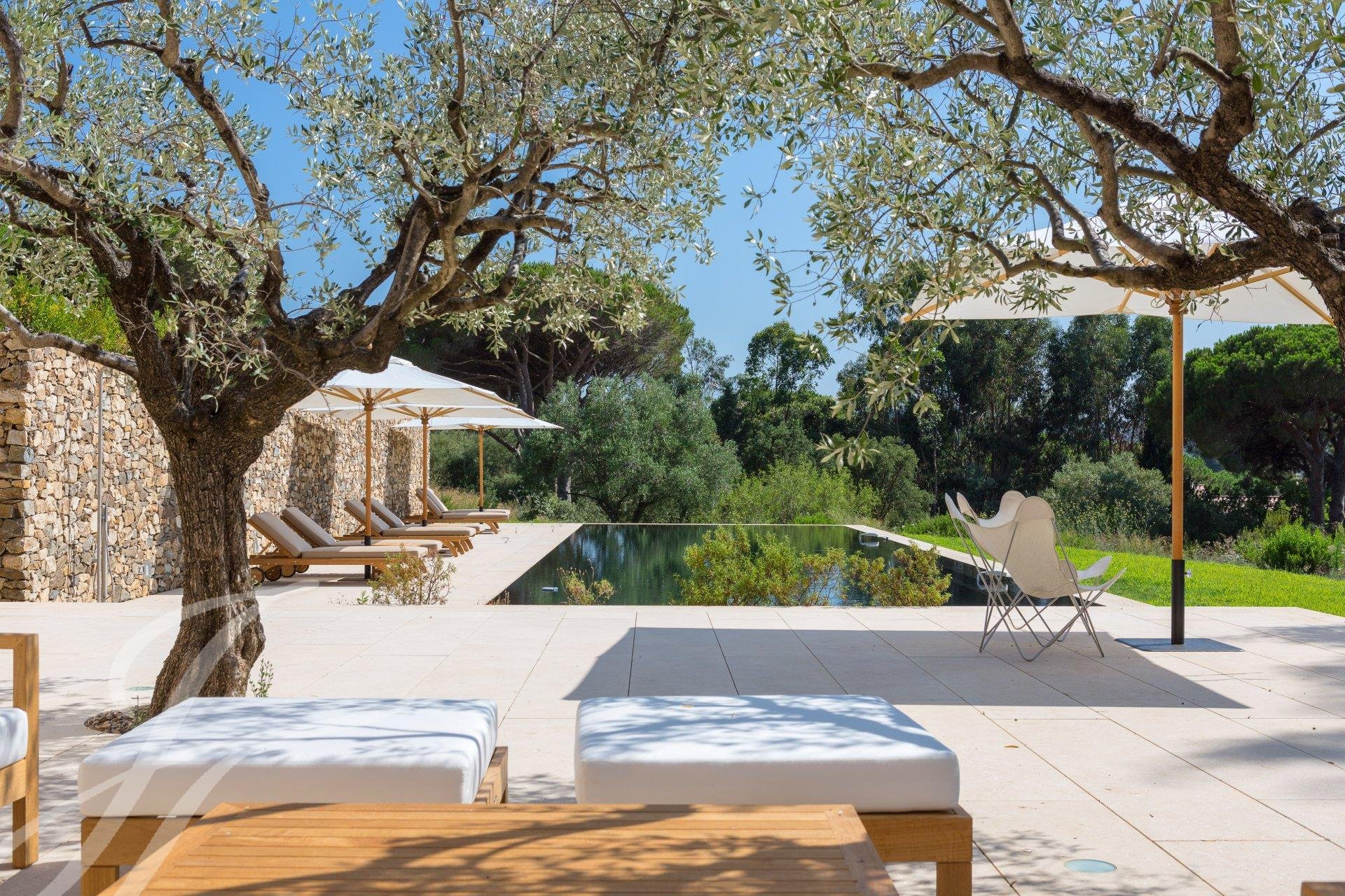 Exclusiva finca situada en los Parcs de Saint-Tropez, que puede alquilarse en su totalidad (8 habitaciones), diseñada por el arquitecto británico John Pawson y que consta de las siguientes estancias
