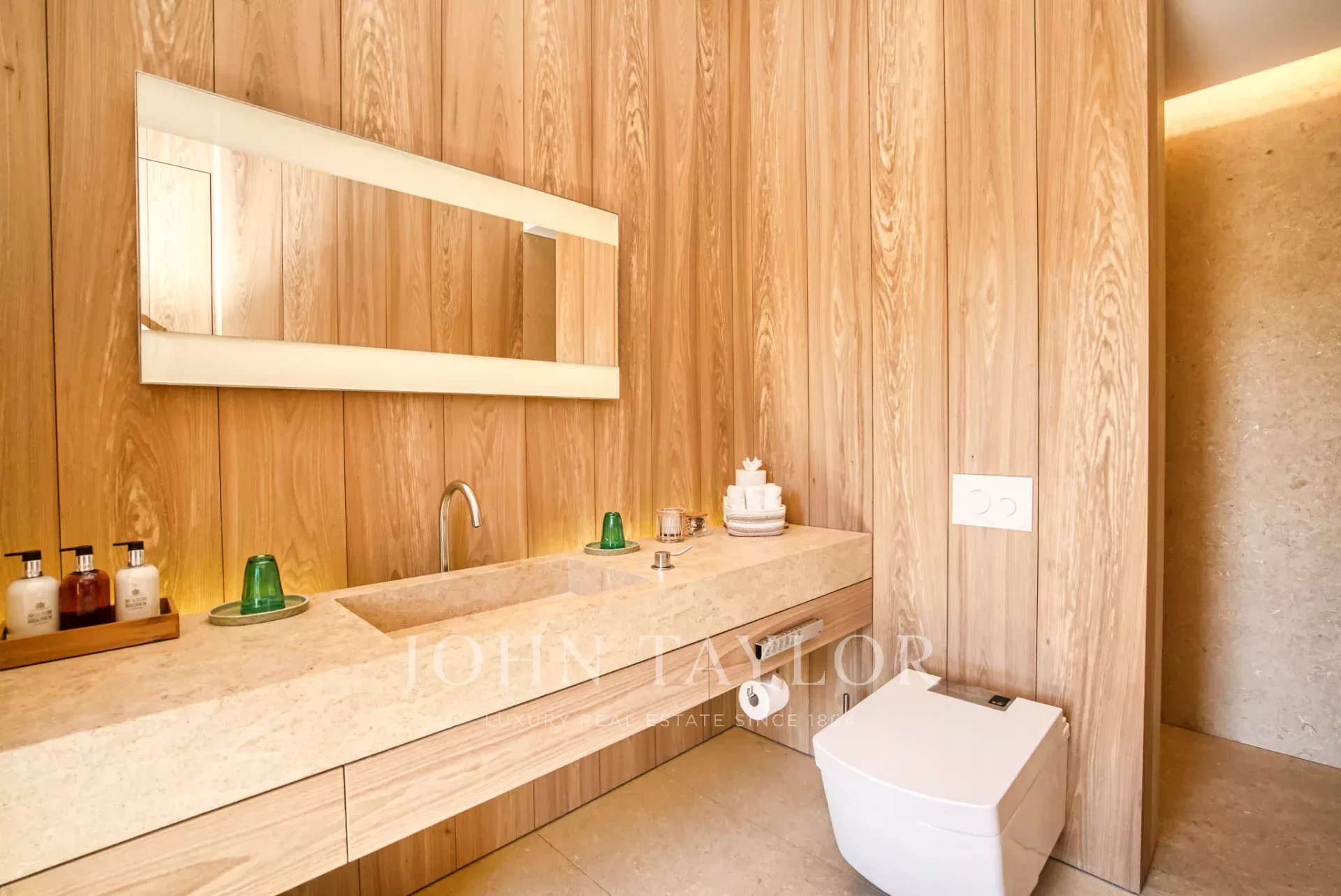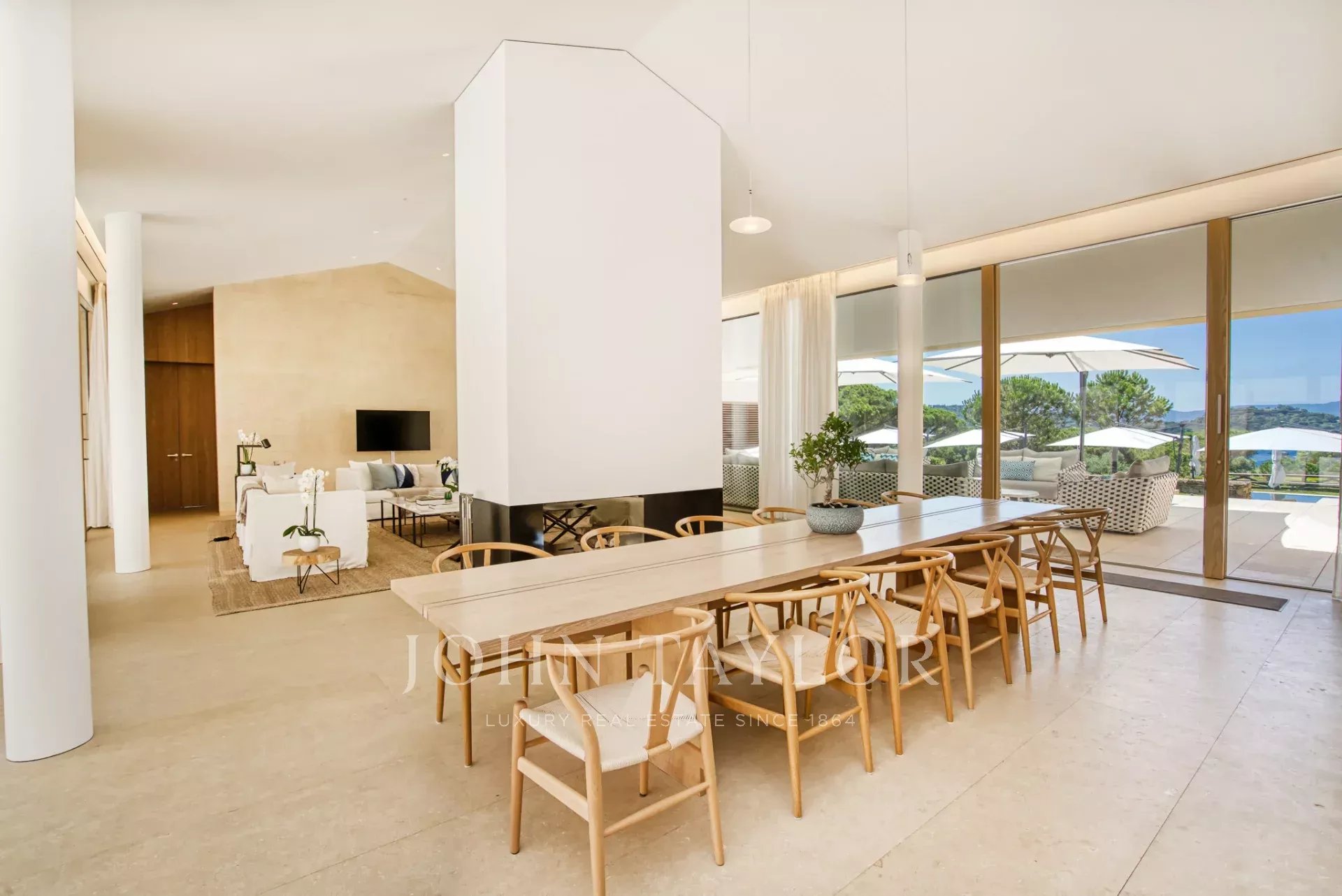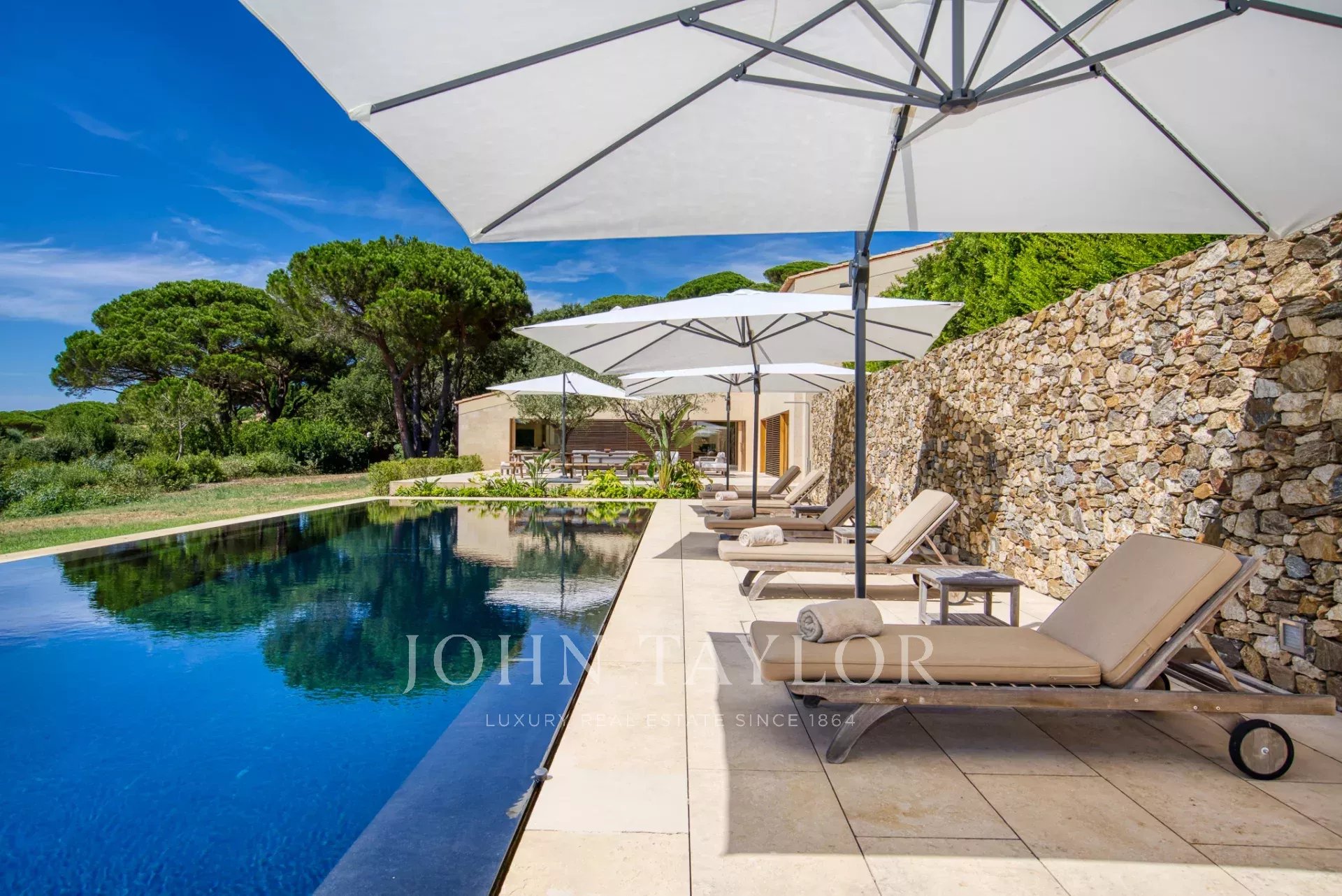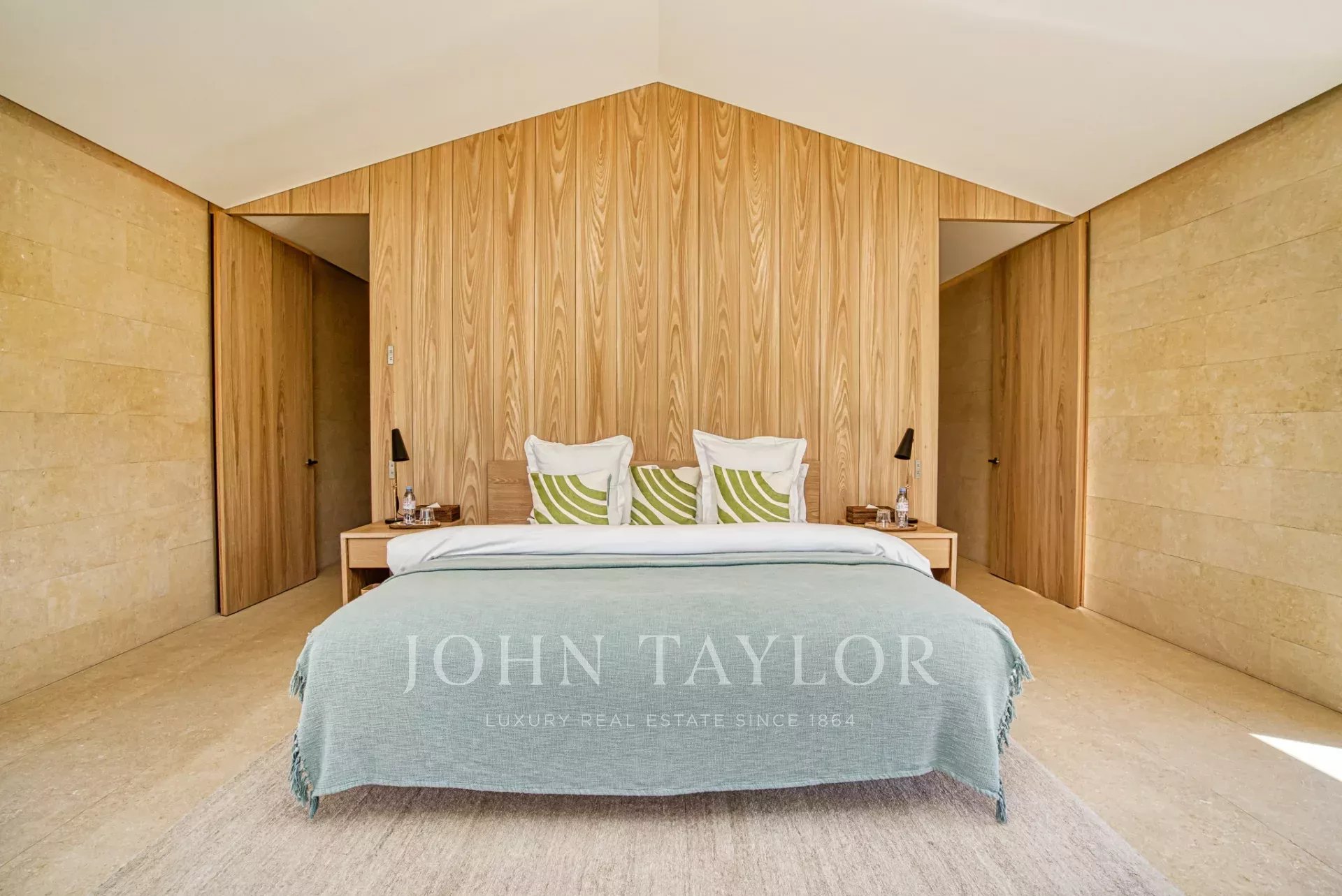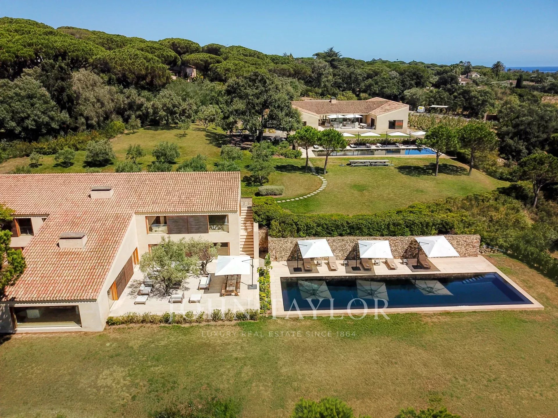 Exclusiva finca situada en los Parcs de Saint-Tropez, que puede alquilarse en su totalidad (8 habitaciones), diseñada por el arquitecto británico John Pawson y que consta de las siguientes estancias