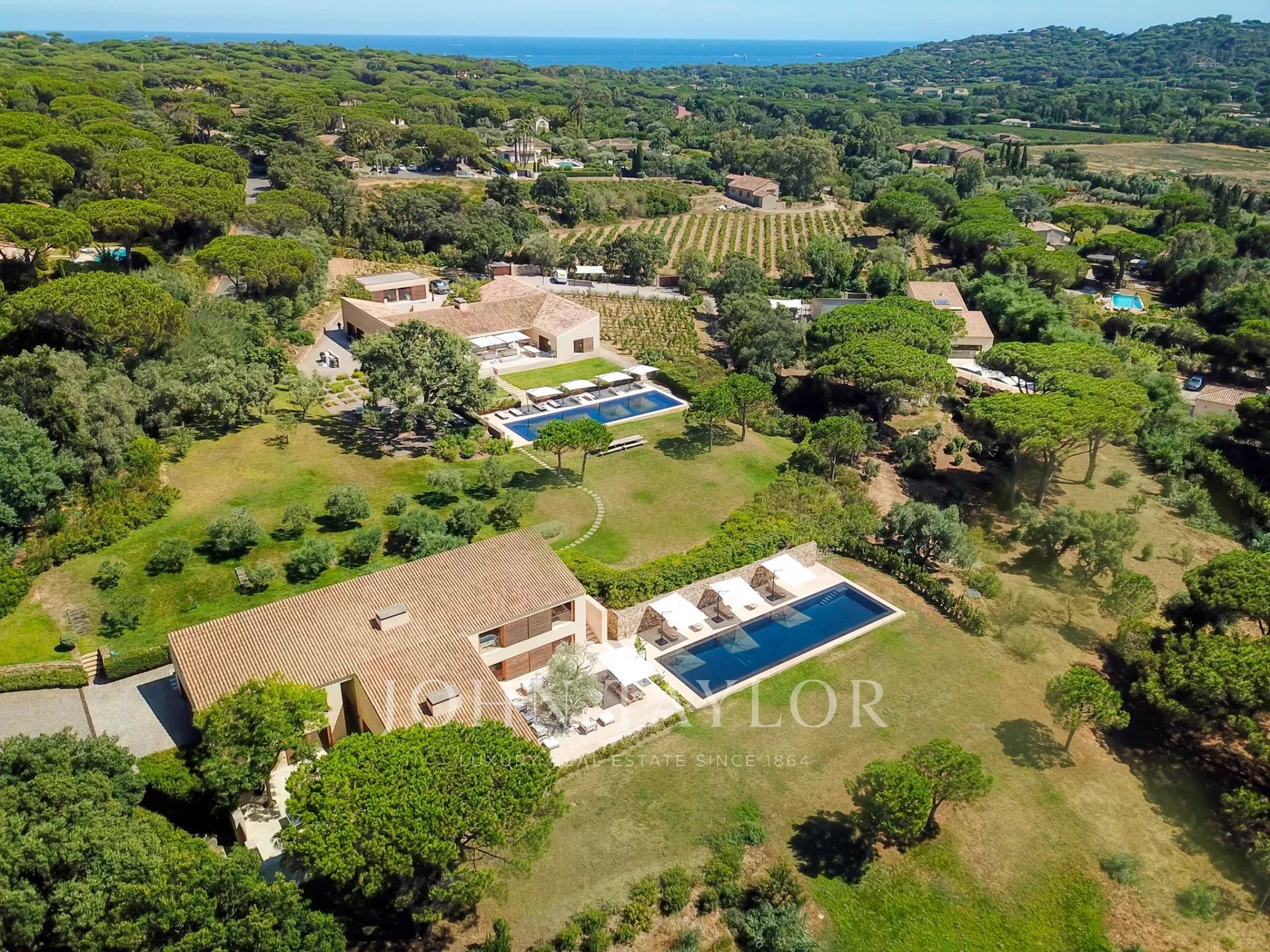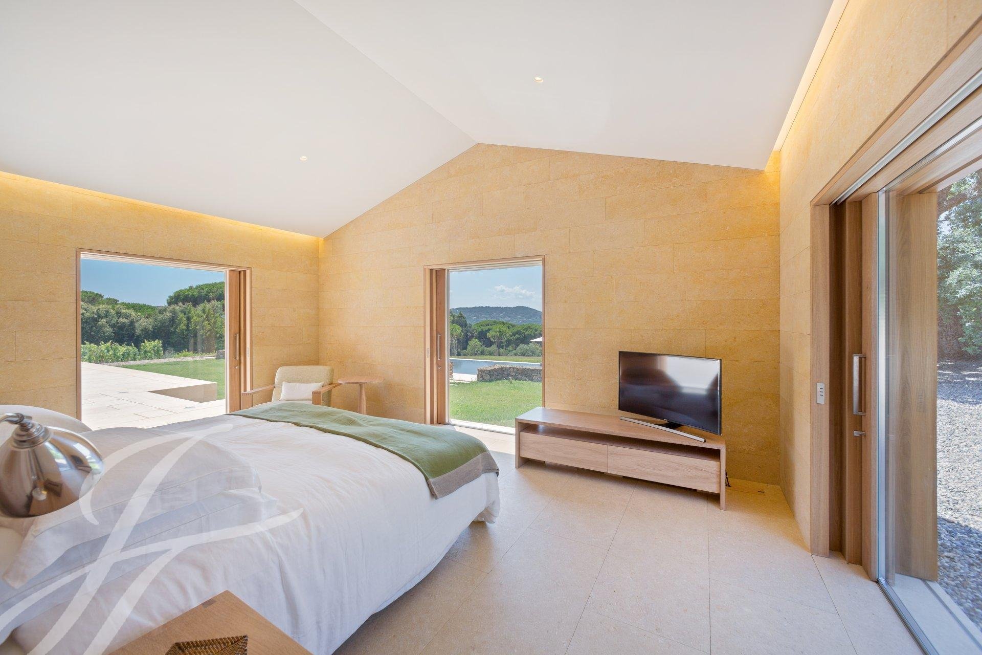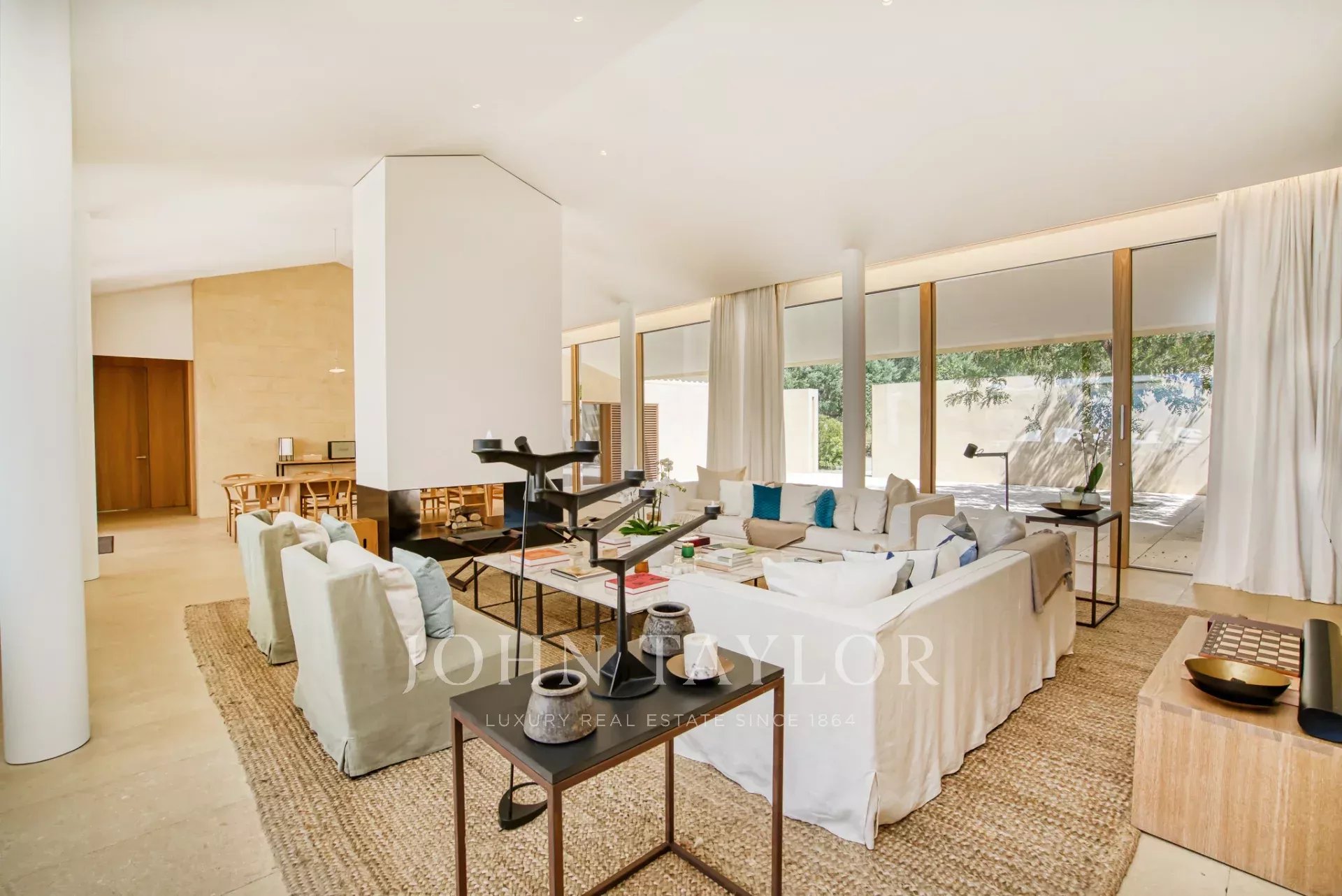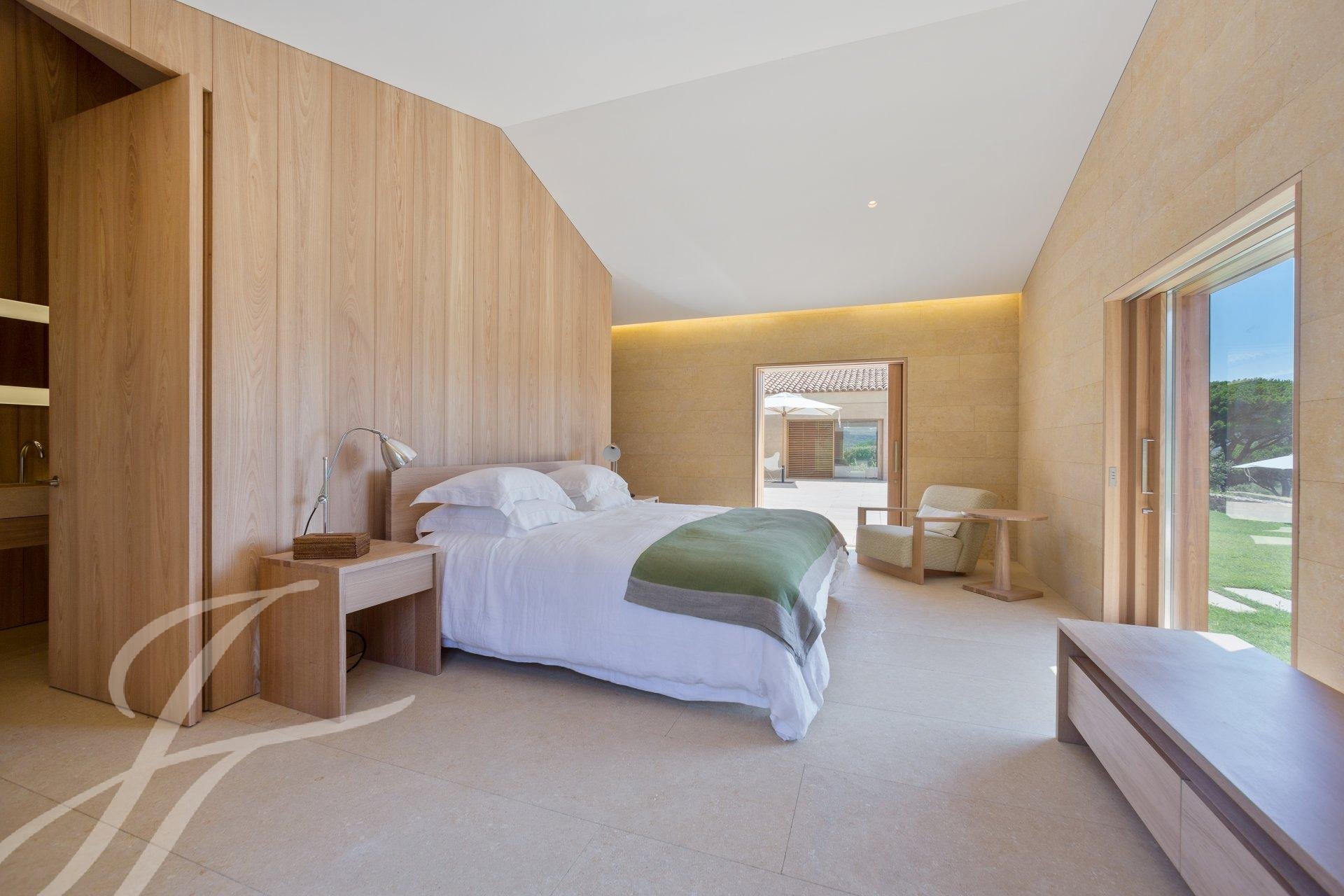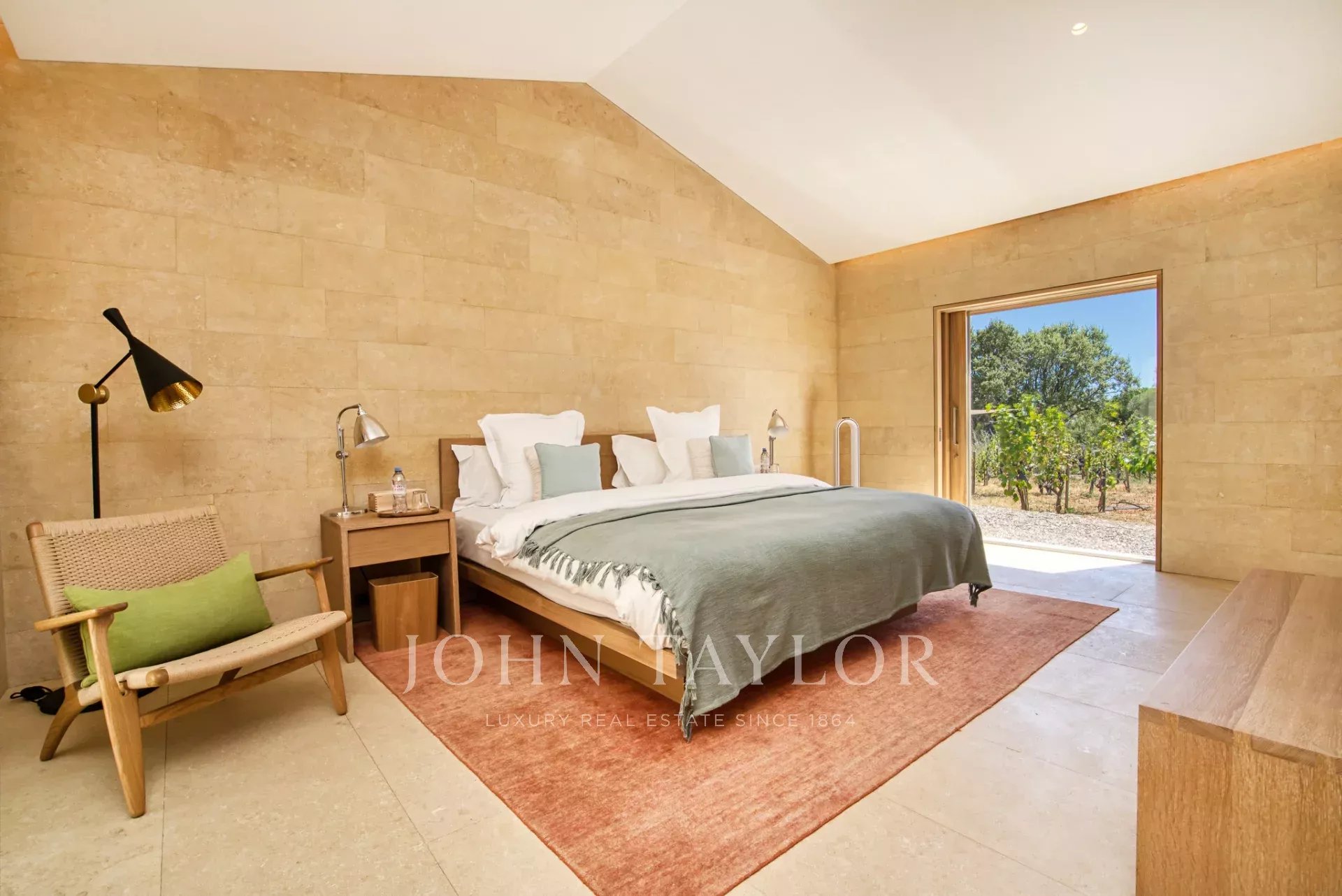 Exclusiva finca situada en los Parcs de Saint-Tropez, que puede alquilarse en su totalidad (8 habitaciones), diseñada por el arquitecto británico John Pawson y que consta de las siguientes estancias