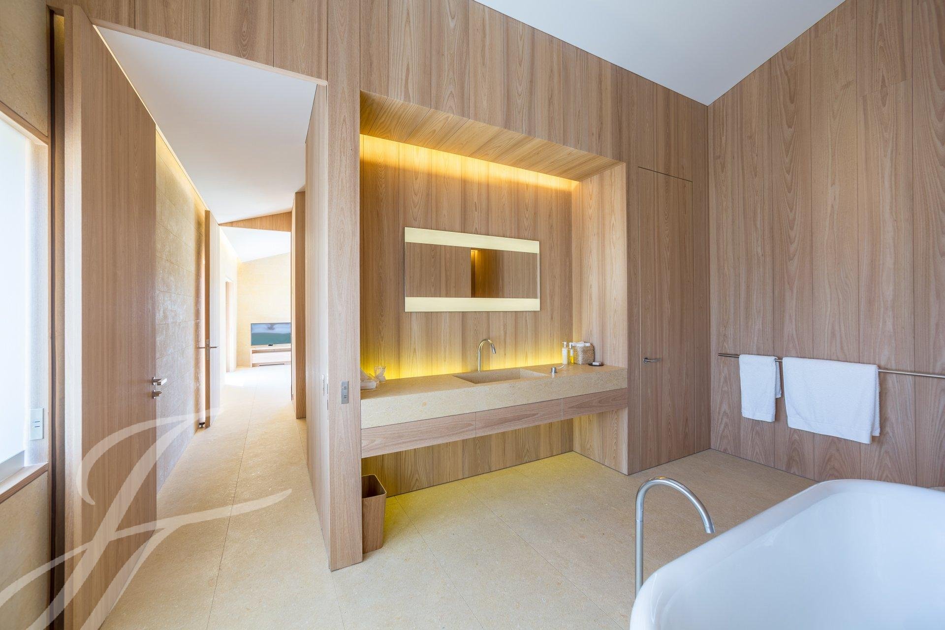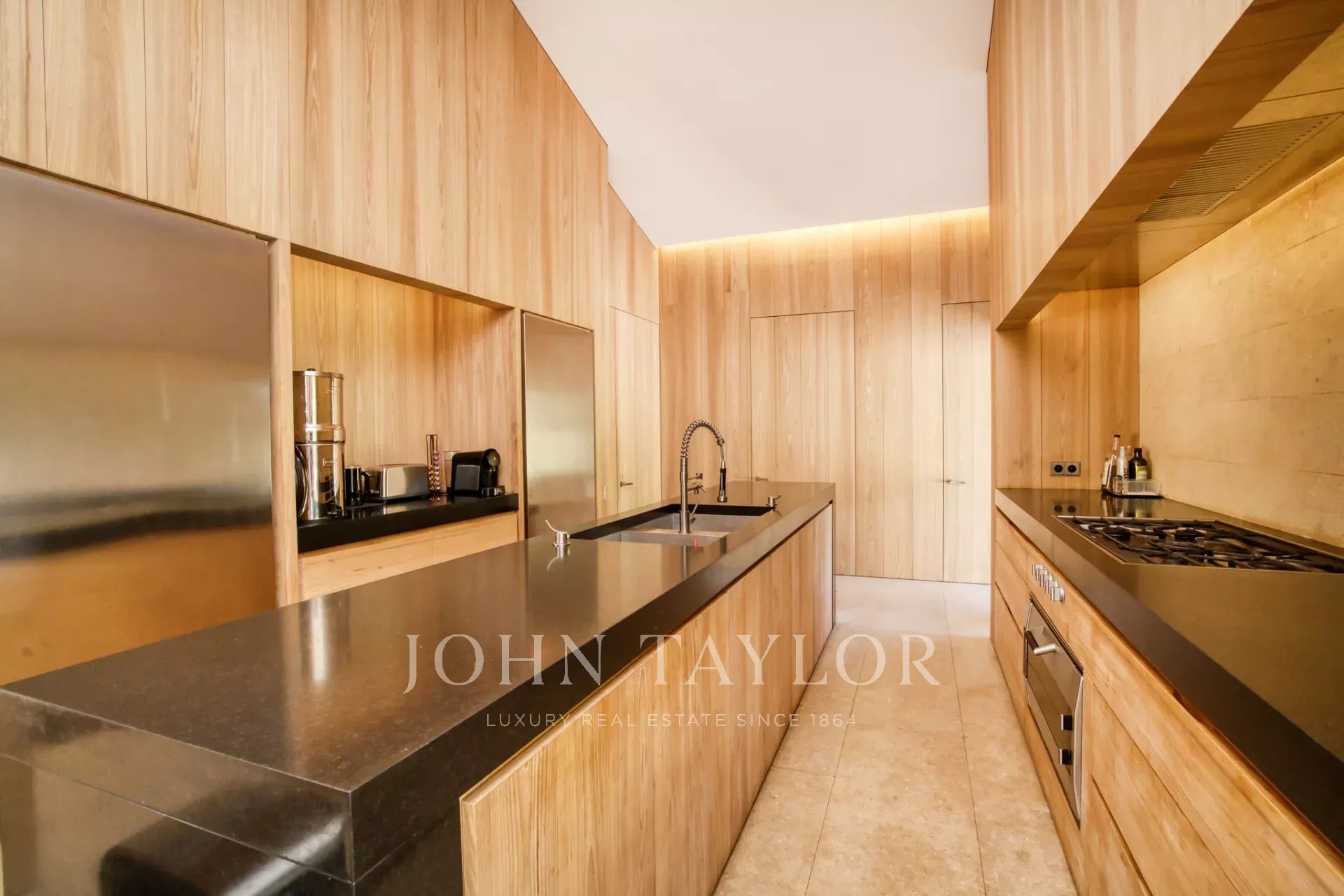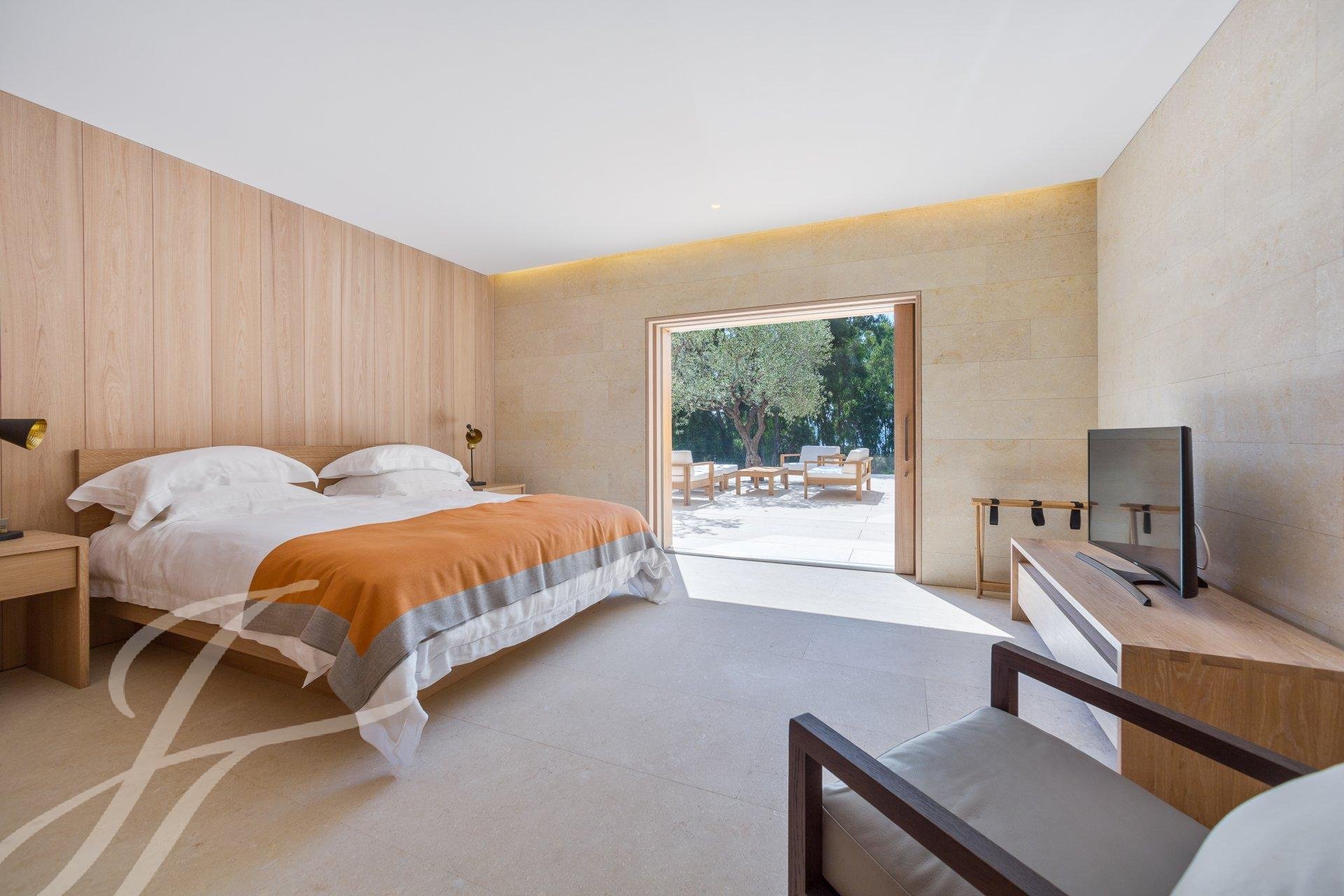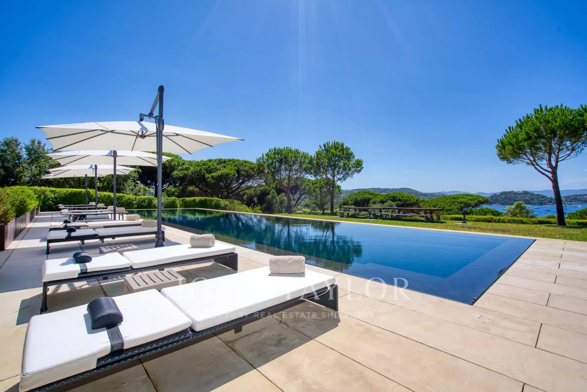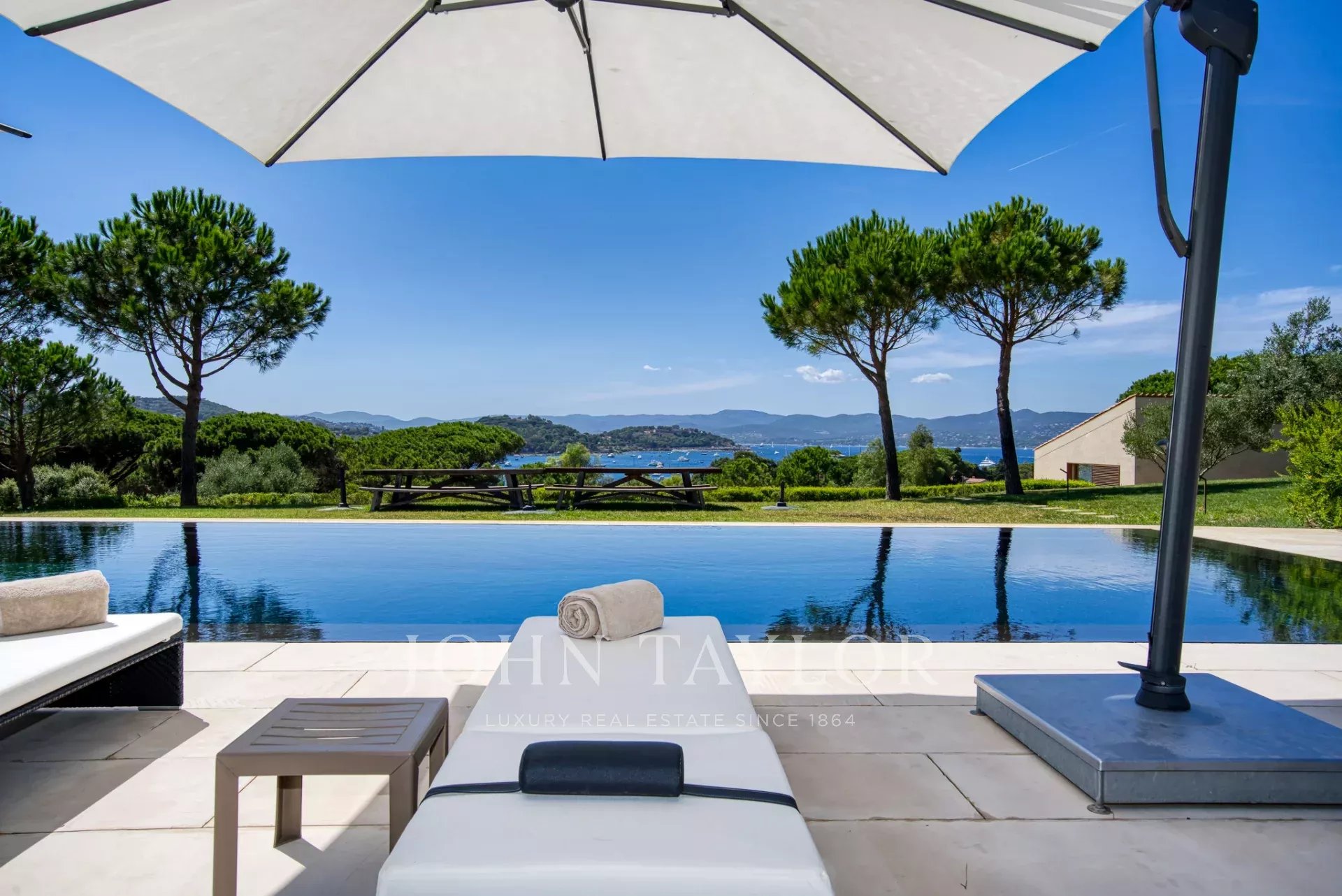 Exclusiva finca situada en los Parcs de Saint-Tropez, que puede alquilarse en su totalidad (8 habitaciones), diseñada por el arquitecto británico John Pawson y que consta de las siguientes estancias