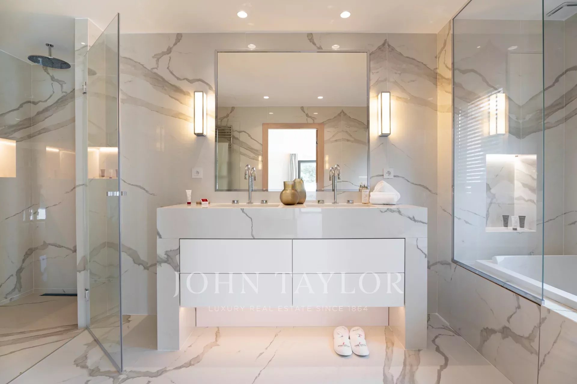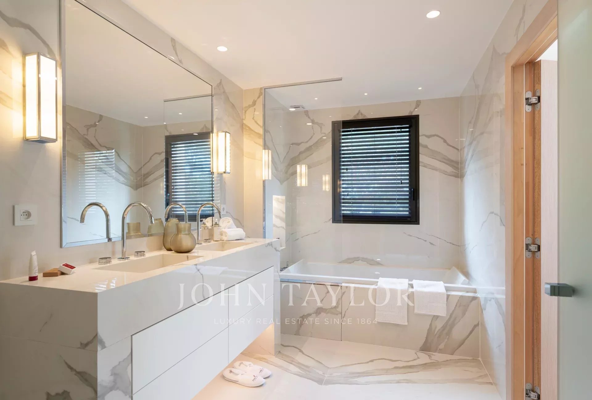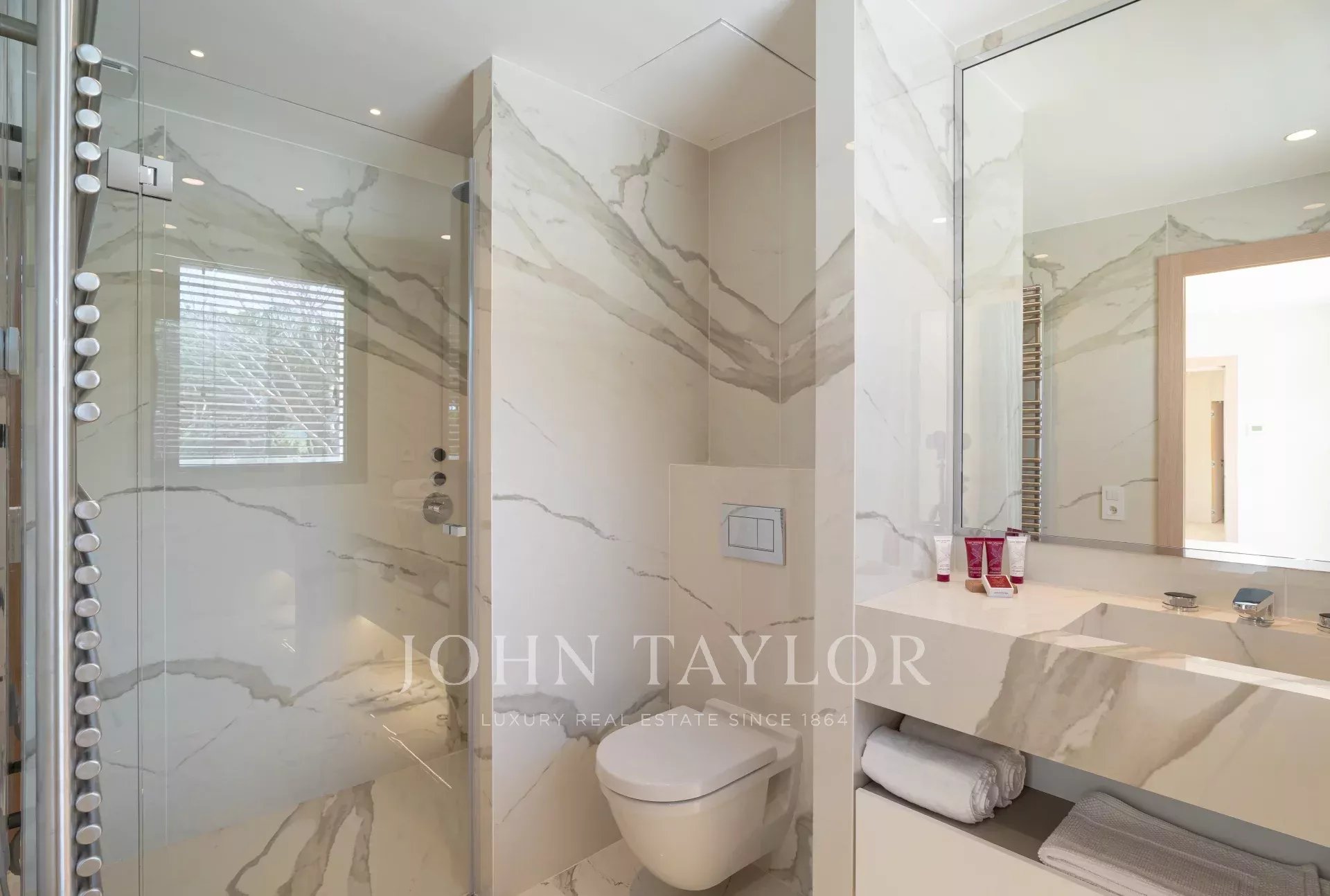 Una piscina (no climatizada) con su casita de piscina, aire acondicionado en toda la propiedad, cajas fuertes en todos los dormitorios, lavadero, garaje, sistema de alarma, sala de fitness equipada con sala de masajes, hammam y cuarto de ducha/WC.
