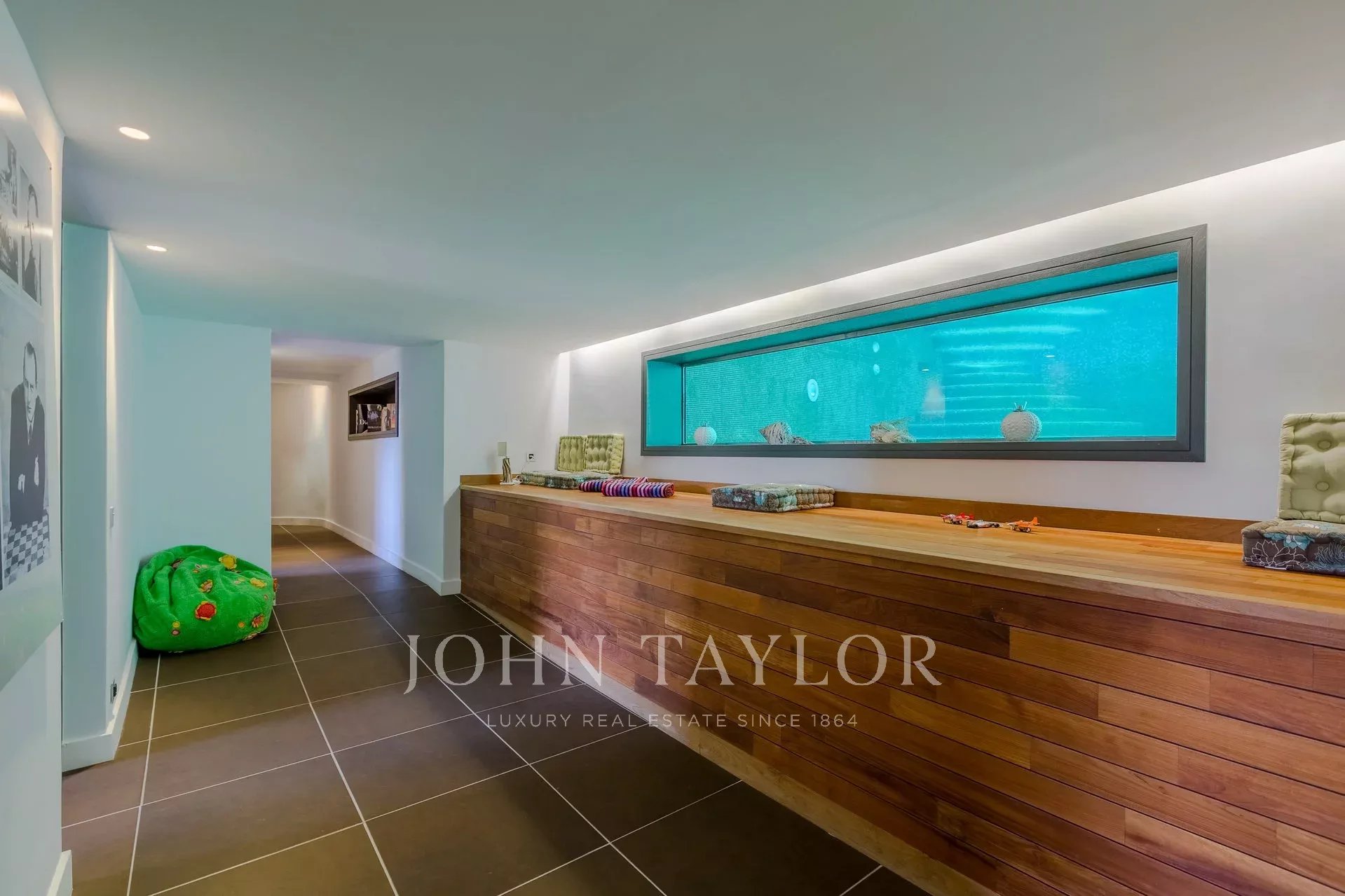 Se compone de una sala de estar, comedor, cocina totalmente equipada, cinco dormitorios, cinco baños, un montón de espacio de almacenamiento y una piscina climatizada.
