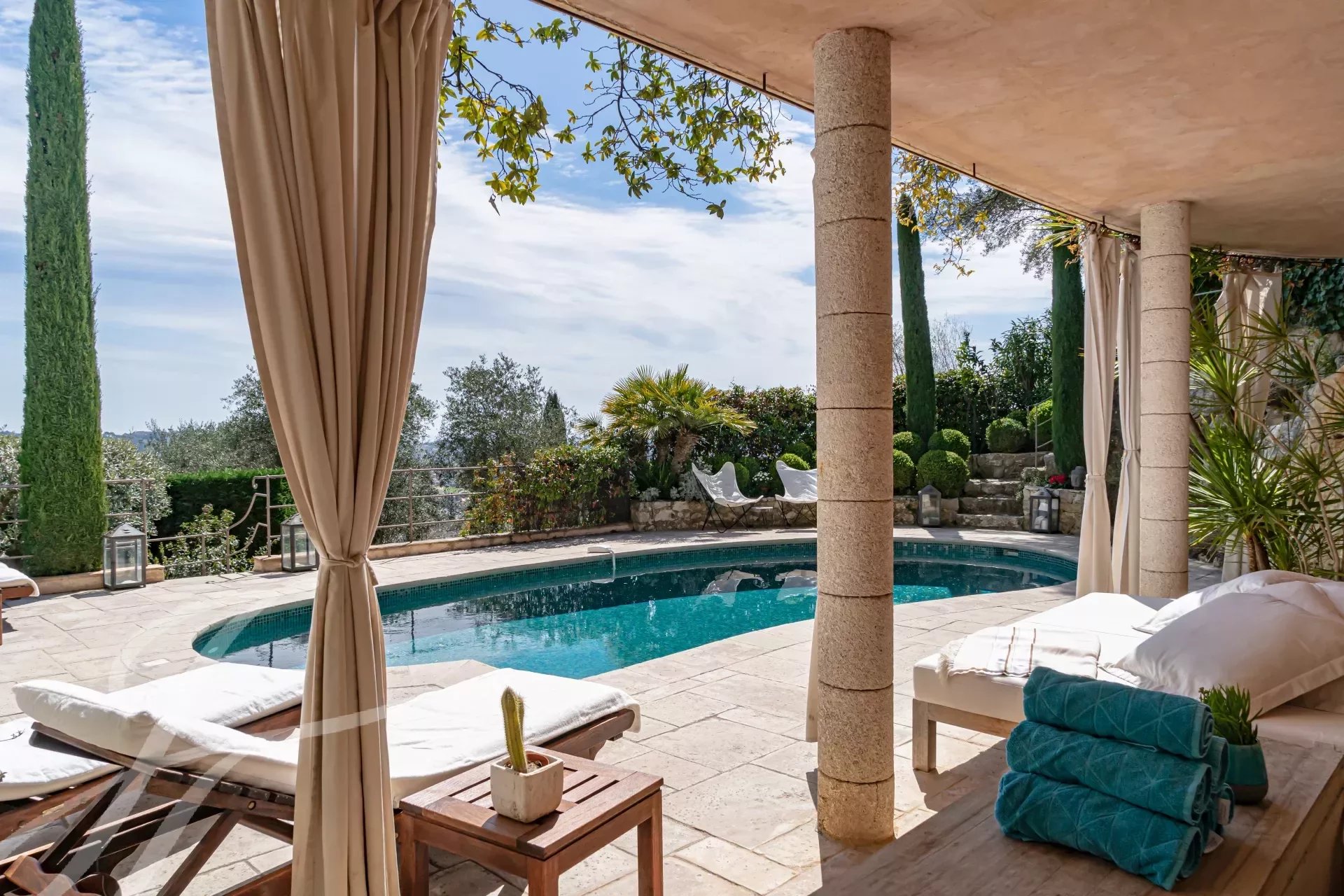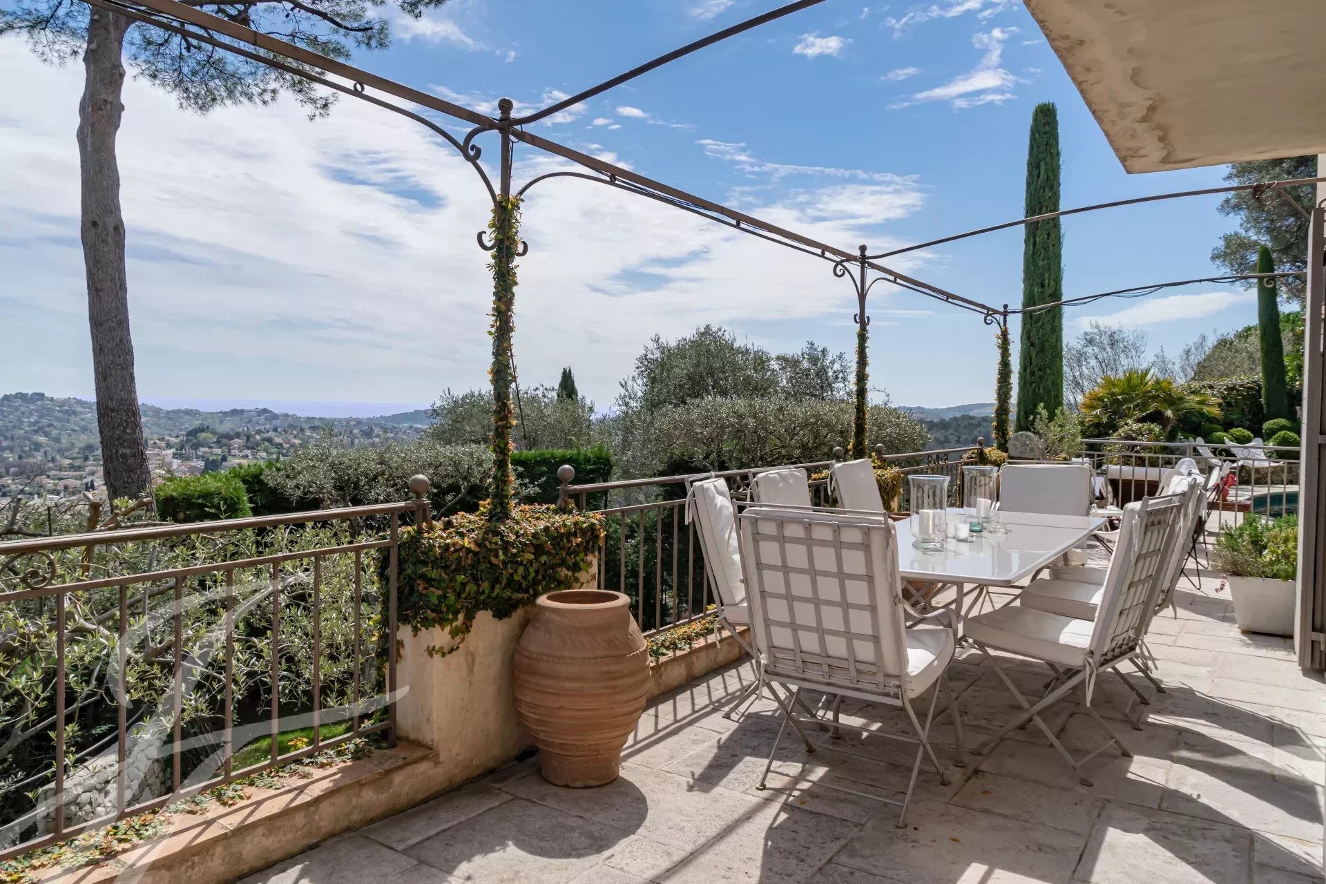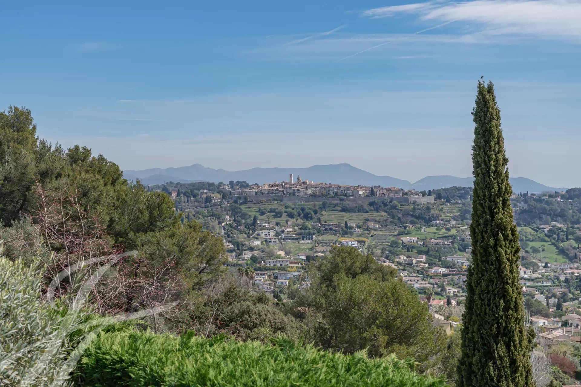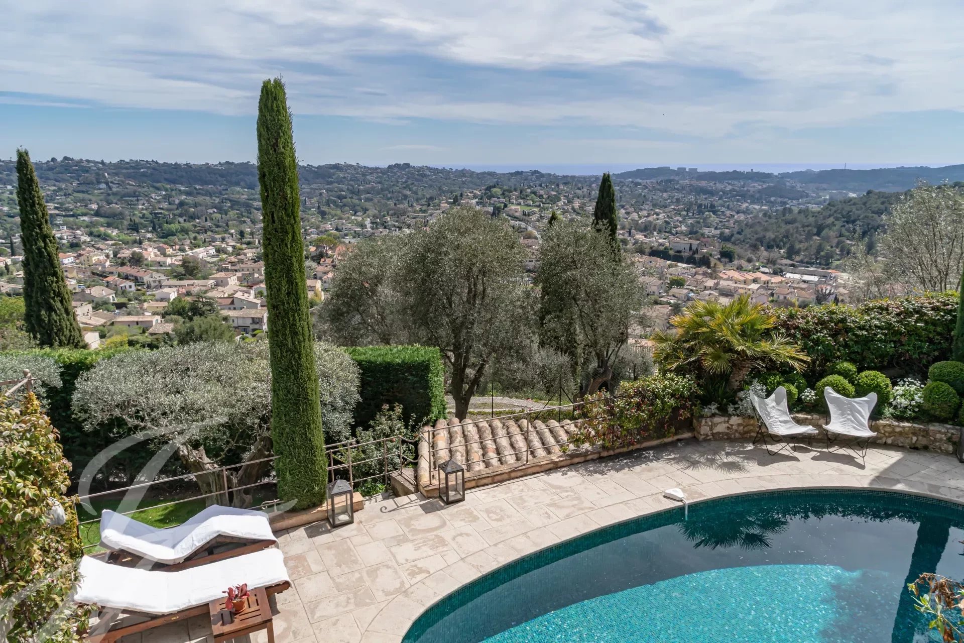 Esta bonita casa goza de un entorno relajante con vistas ininterrumpidas al mar y al pueblo de Saint-Paul de Vence.