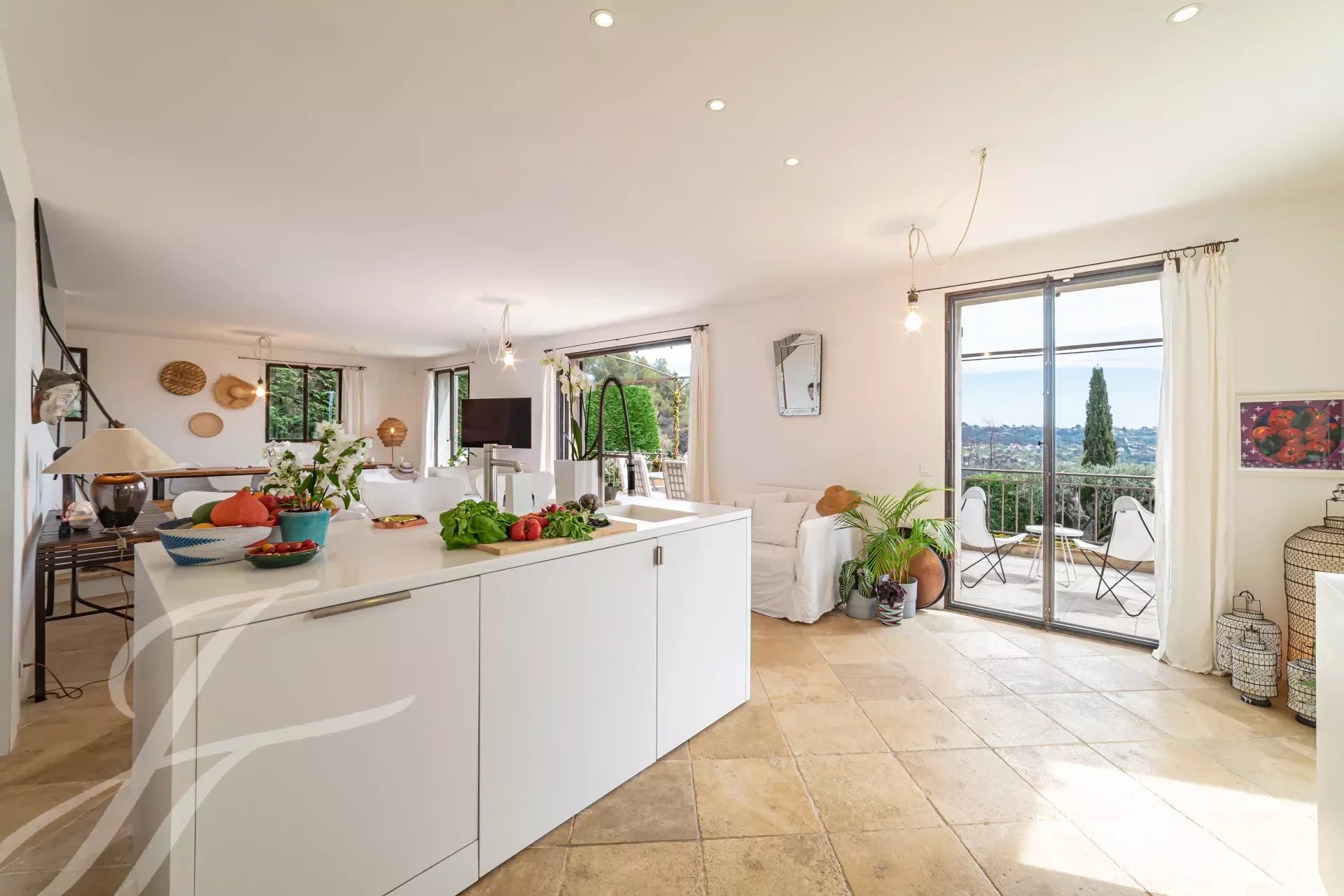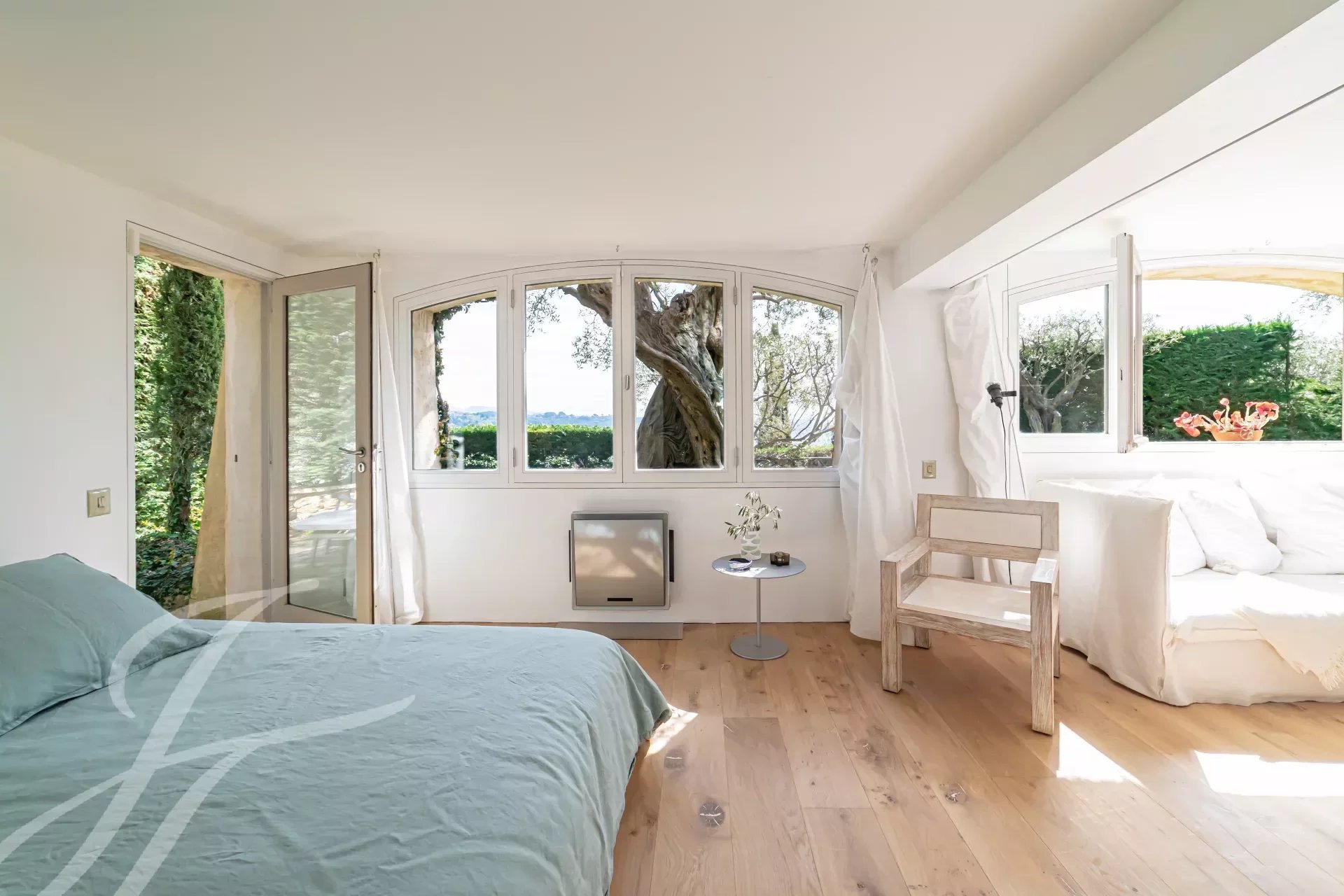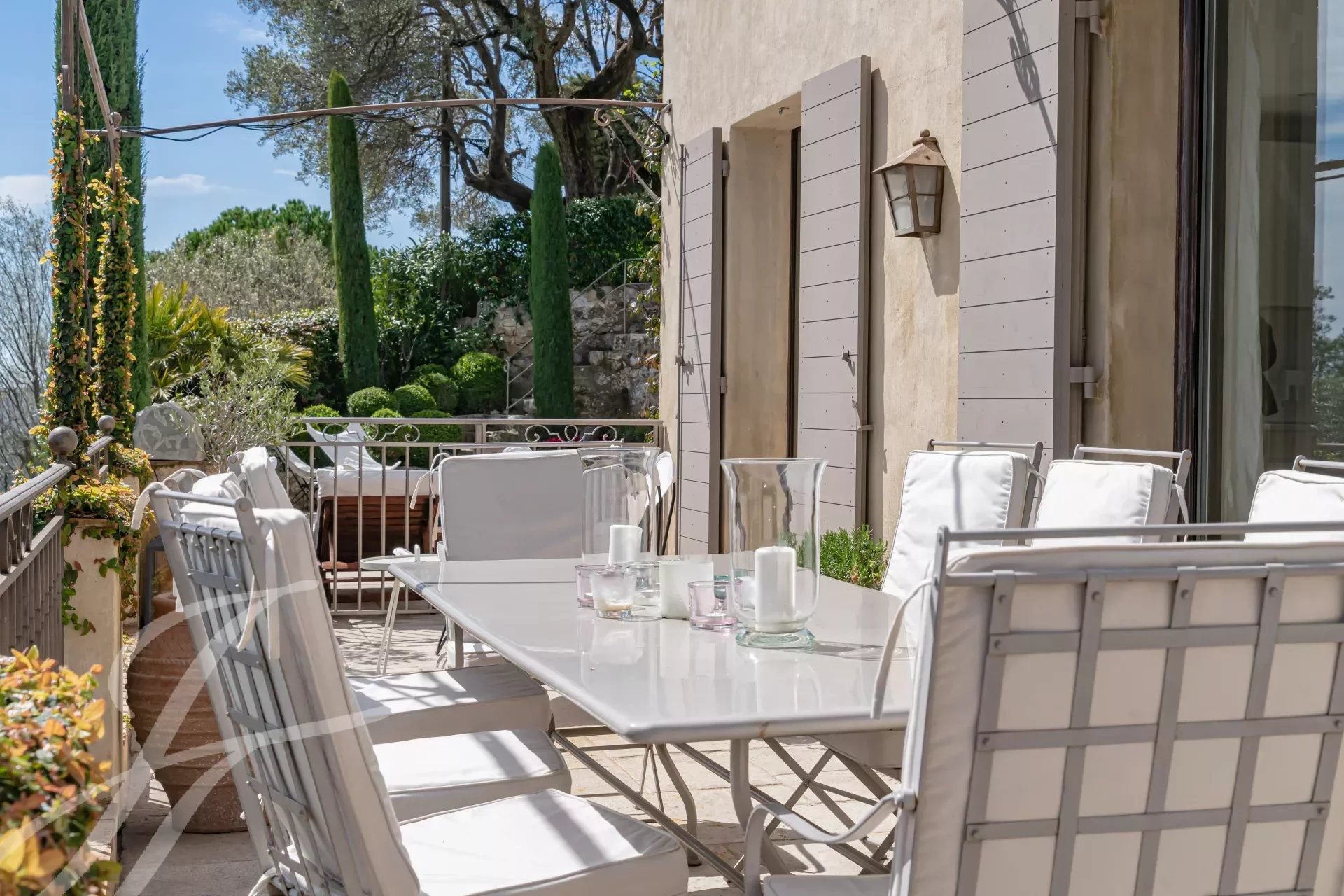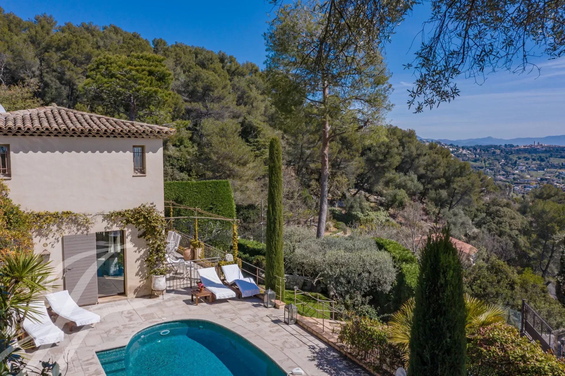 Esta bonita casa goza de un entorno relajante con vistas ininterrumpidas al mar y al pueblo de Saint-Paul de Vence.