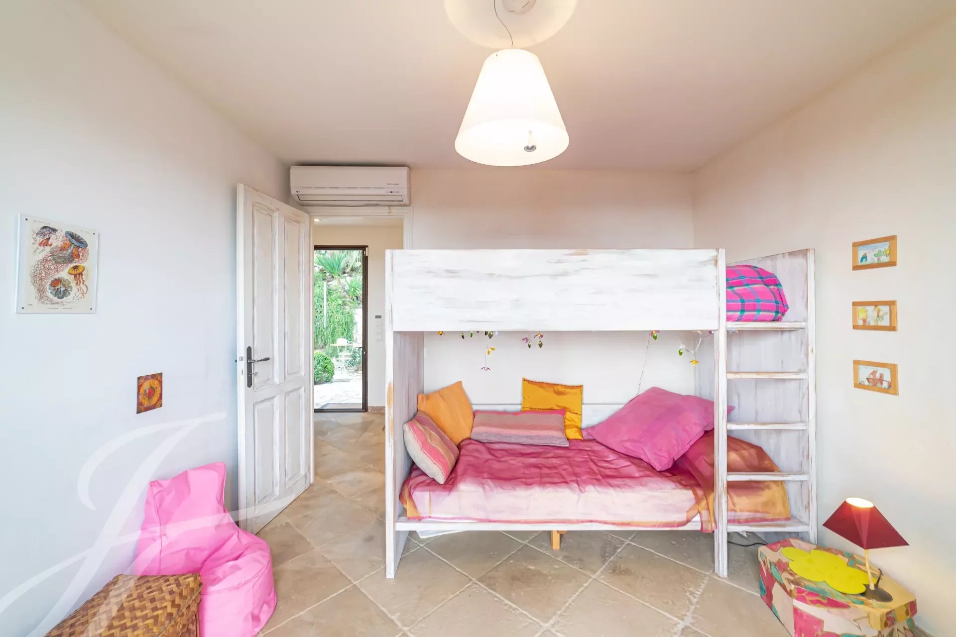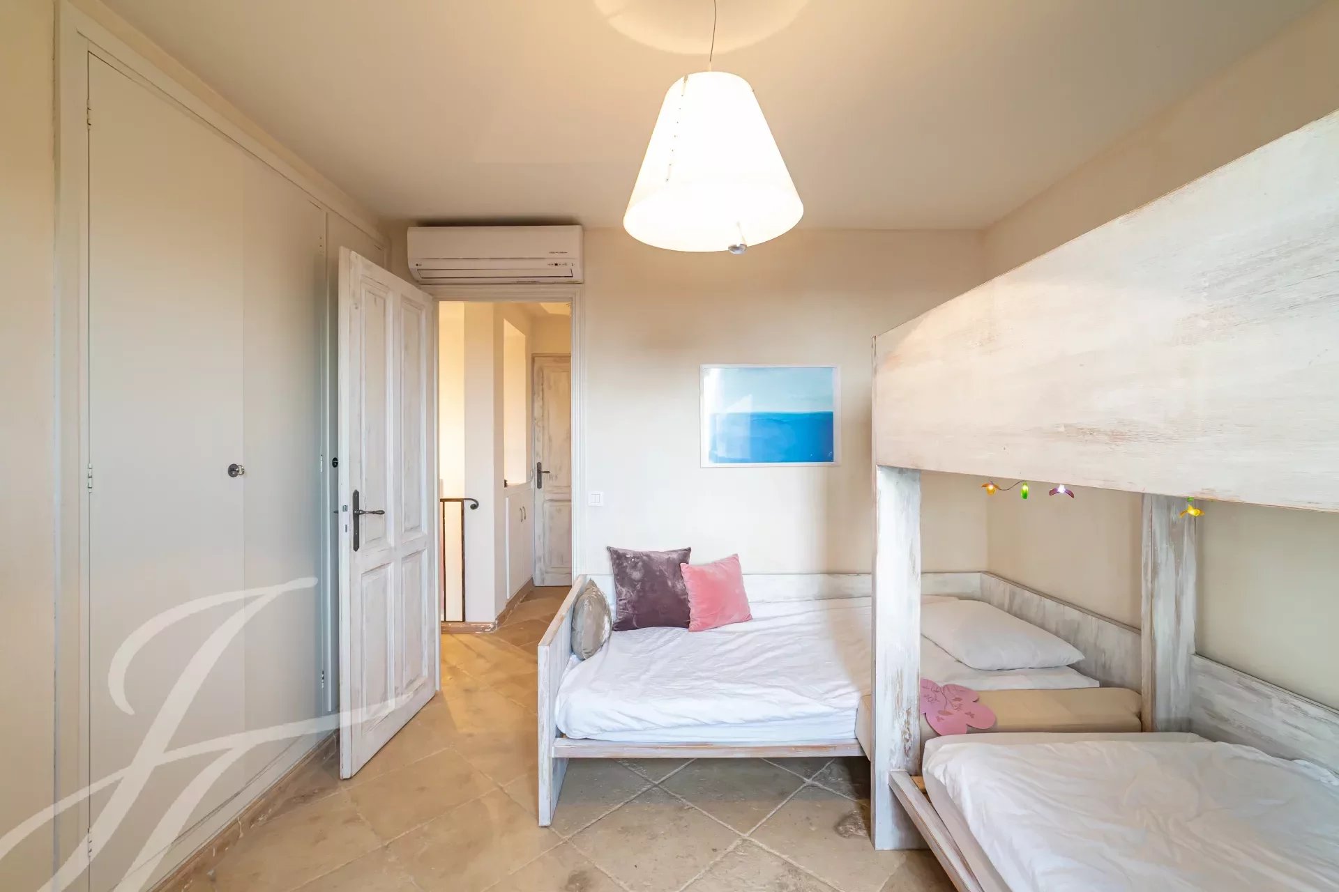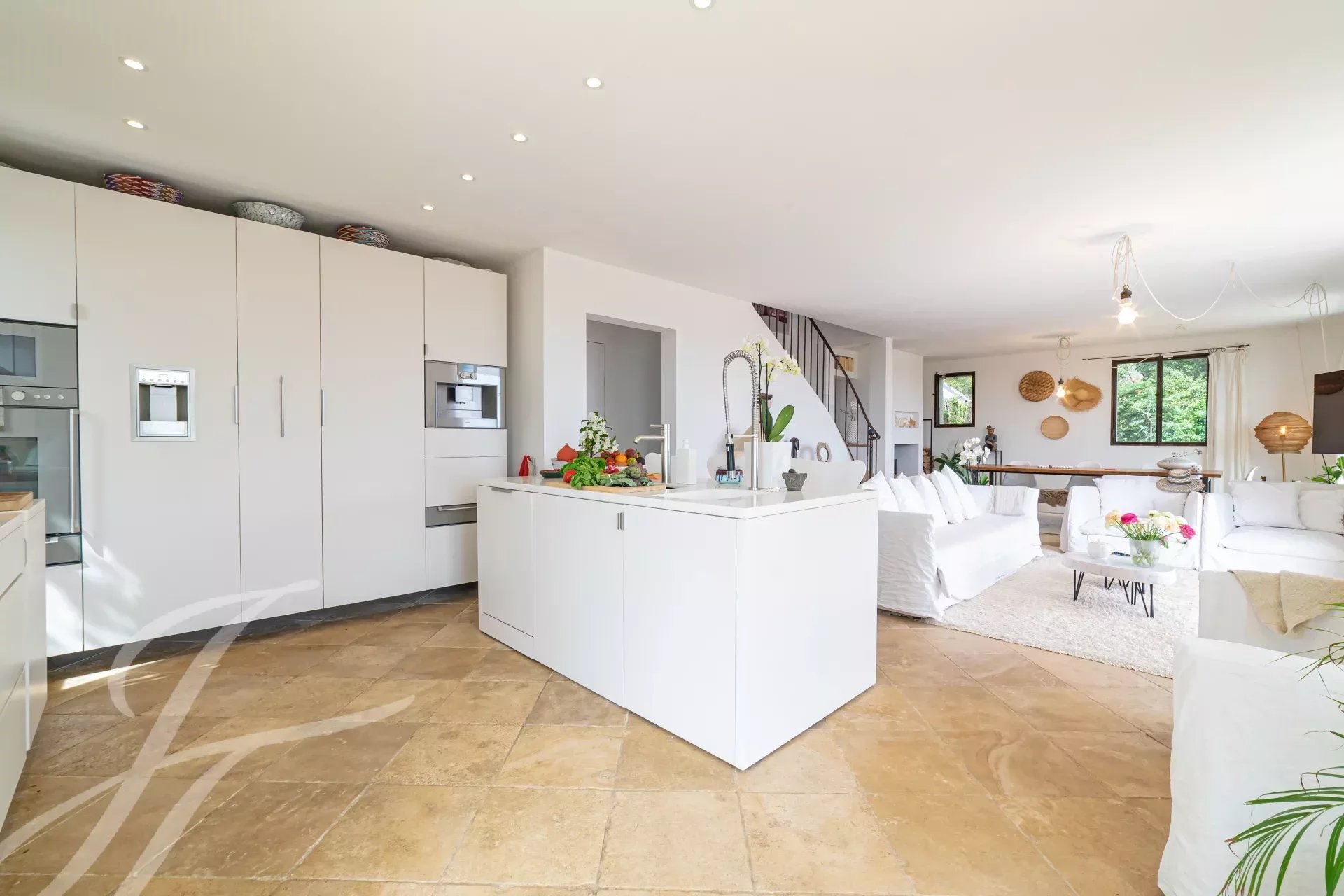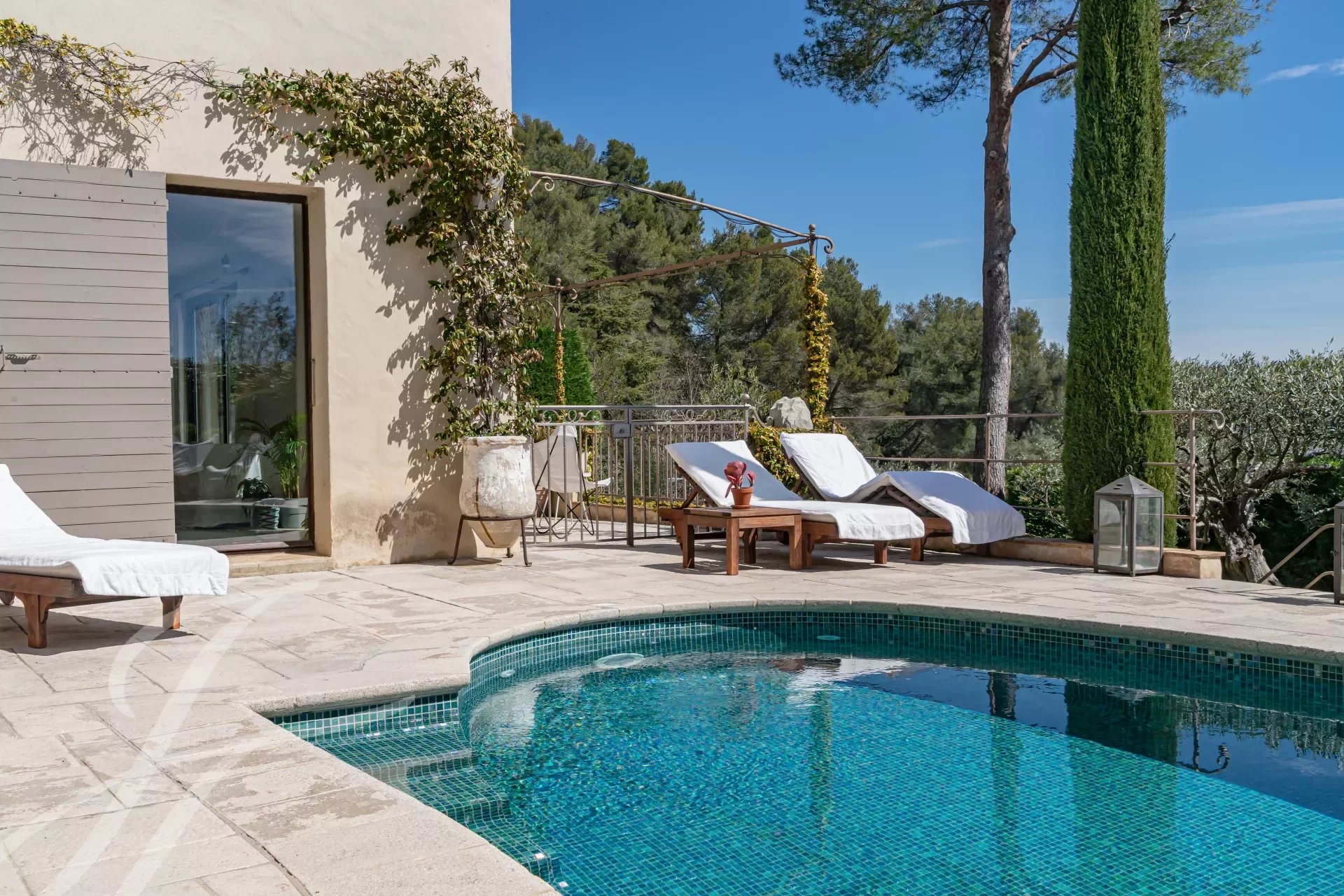 En el exterior, el jardín paisajista ofrece varias zonas de descanso: una zona de piscina, una terraza a la sombra de un bonito toldo y una zona de aperitivo, todo ello con vistas a un panorama excepcional. Una barbacoa completa las instalaciones para disfrutar de comidas al aire libre.
