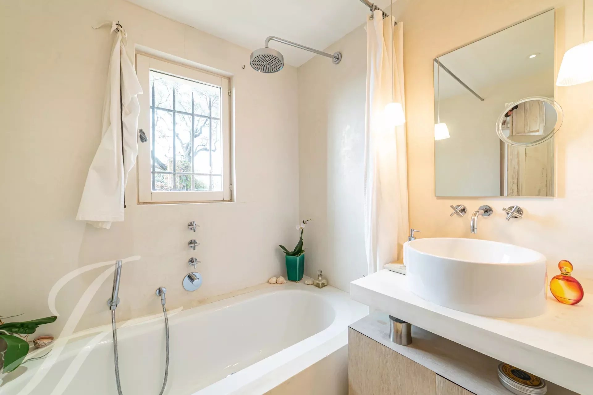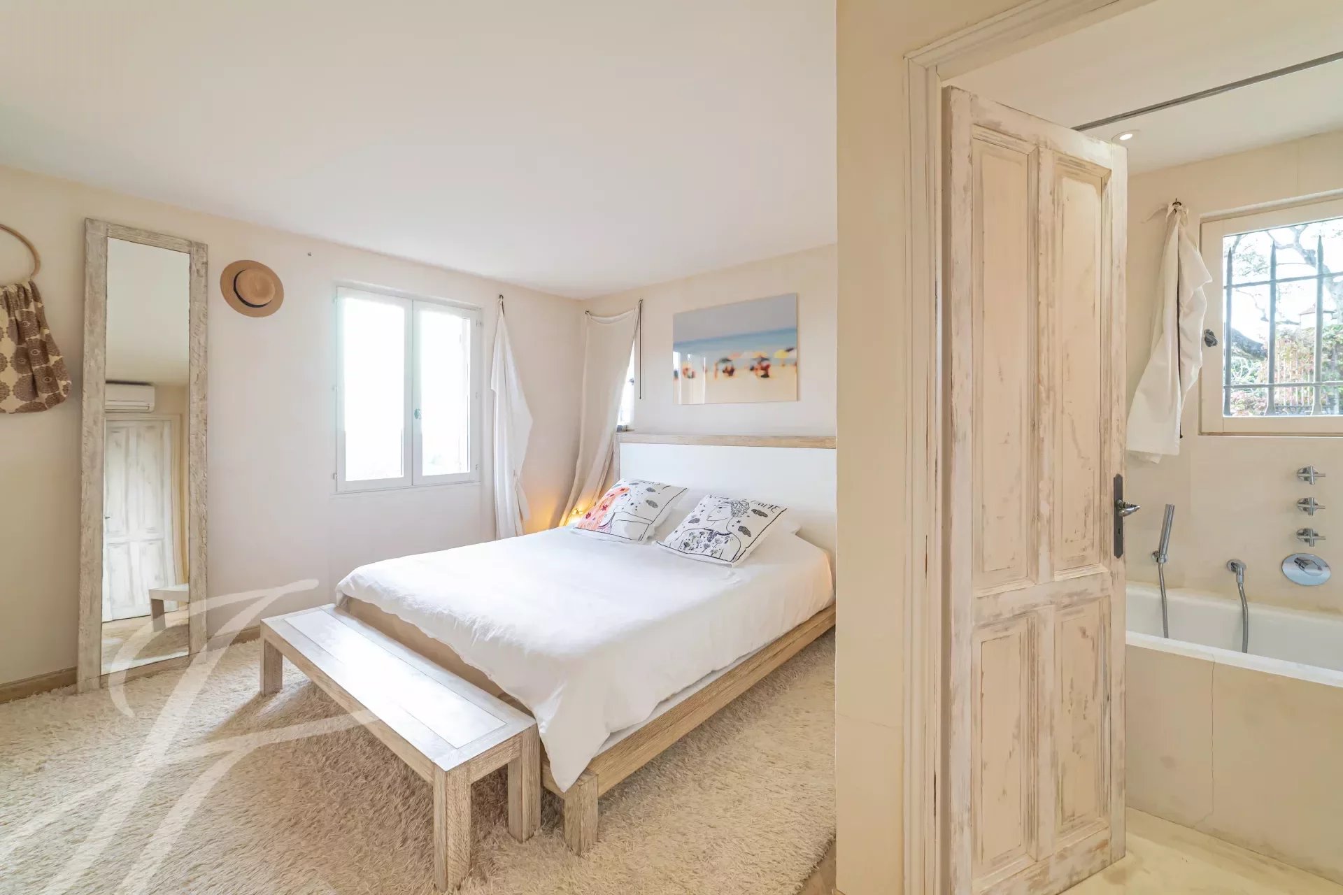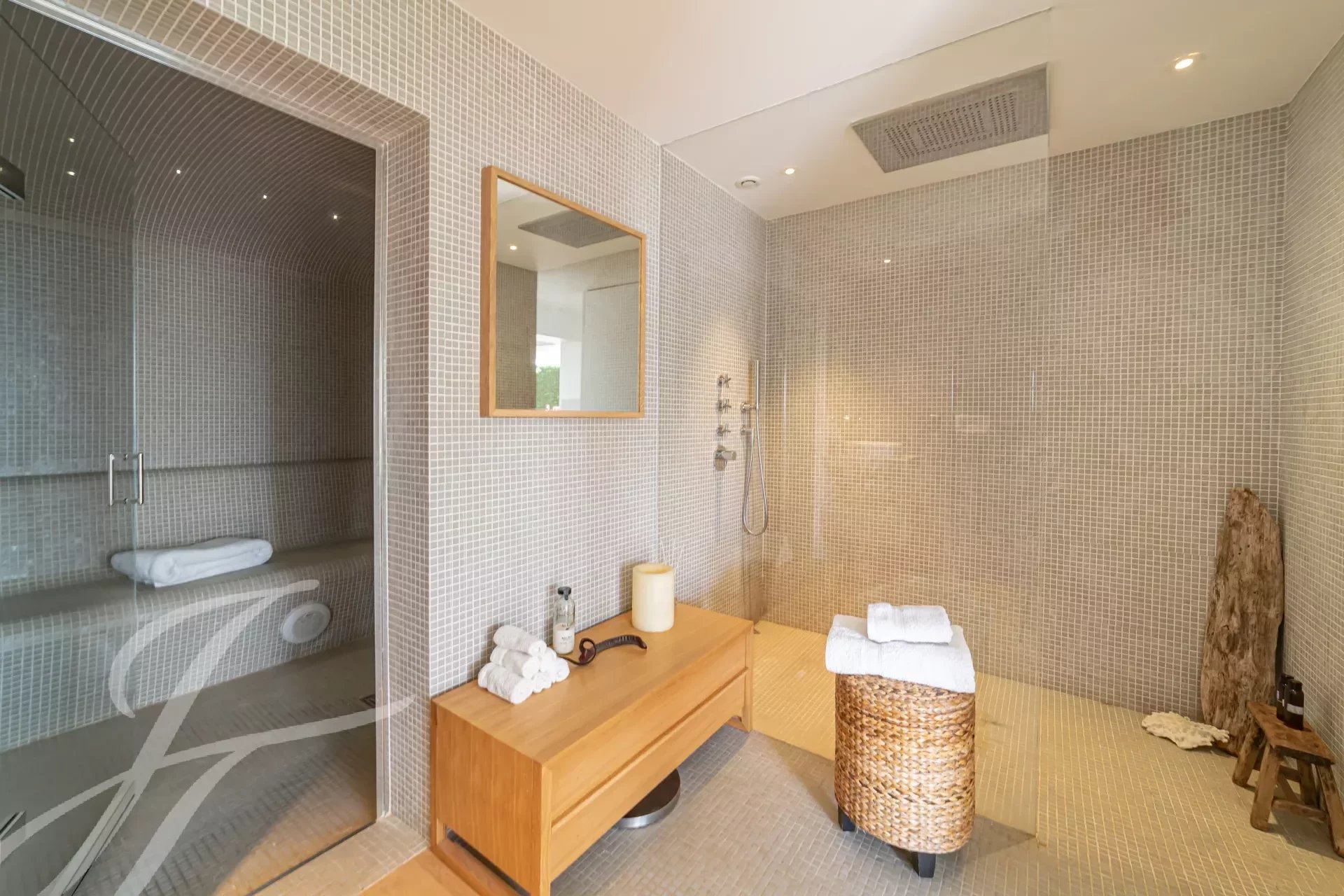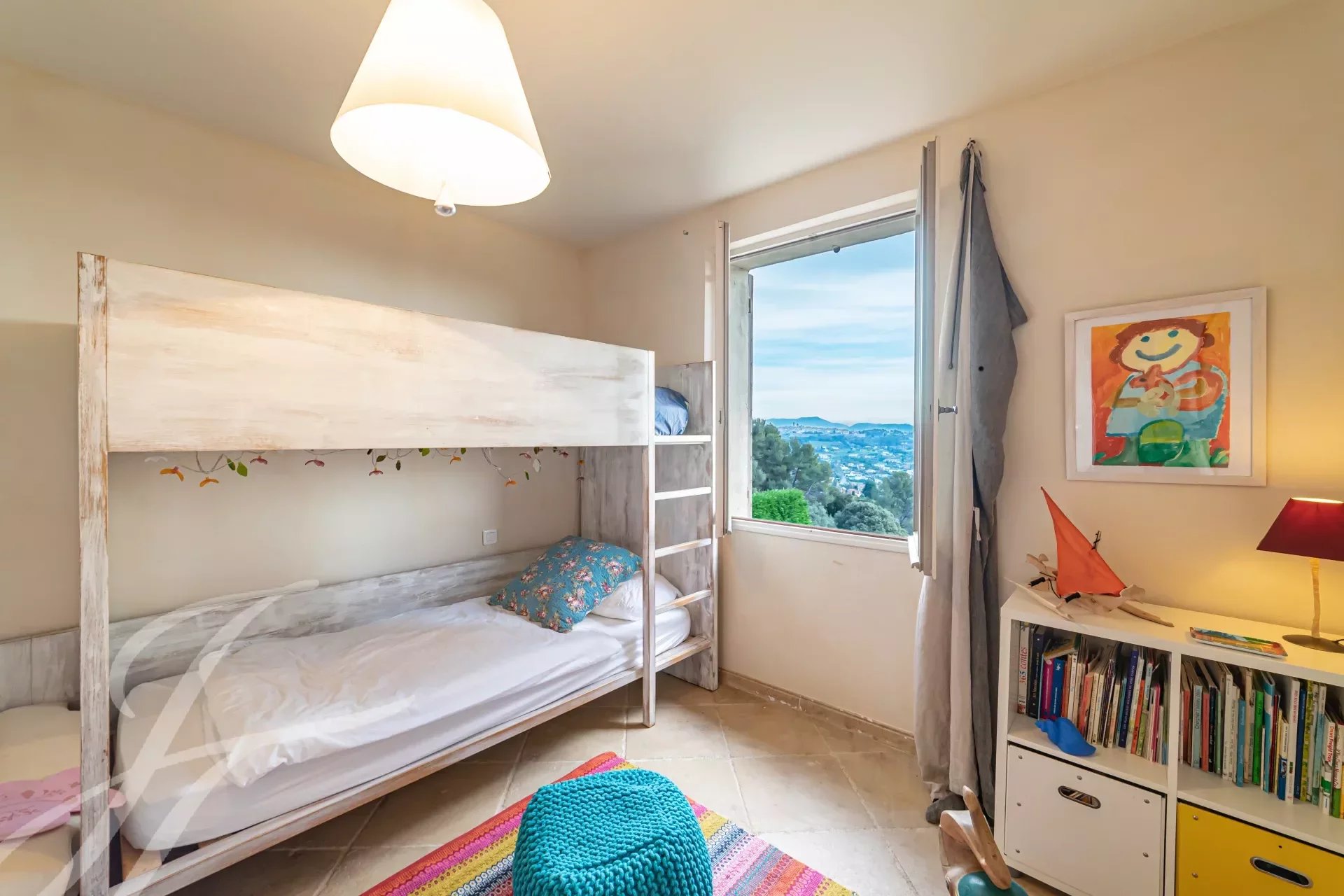 En el exterior, el jardín paisajista ofrece varias zonas de descanso: una zona de piscina, una terraza a la sombra de un bonito toldo y una zona de aperitivo, todo ello con vistas a un panorama excepcional. Una barbacoa completa las instalaciones para disfrutar de comidas al aire libre.