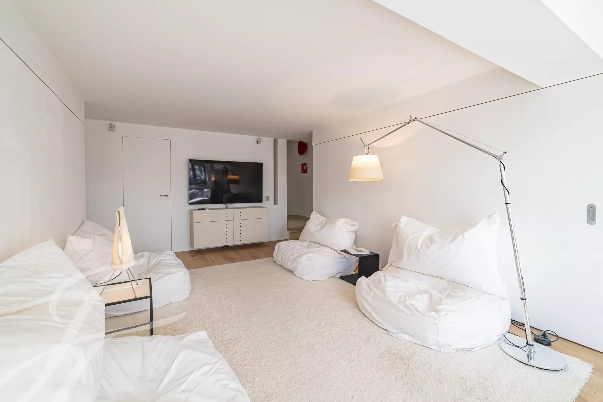 Distribuida en 3 plantas, la casa ofrece 3 espacios distintos: el primero está dedicado a la zona de noche, el segundo a la convivencia y a compartir, y el último es más íntimo. Jacqueline Morabito ha diseñado el acondicionamiento interior y exterior.