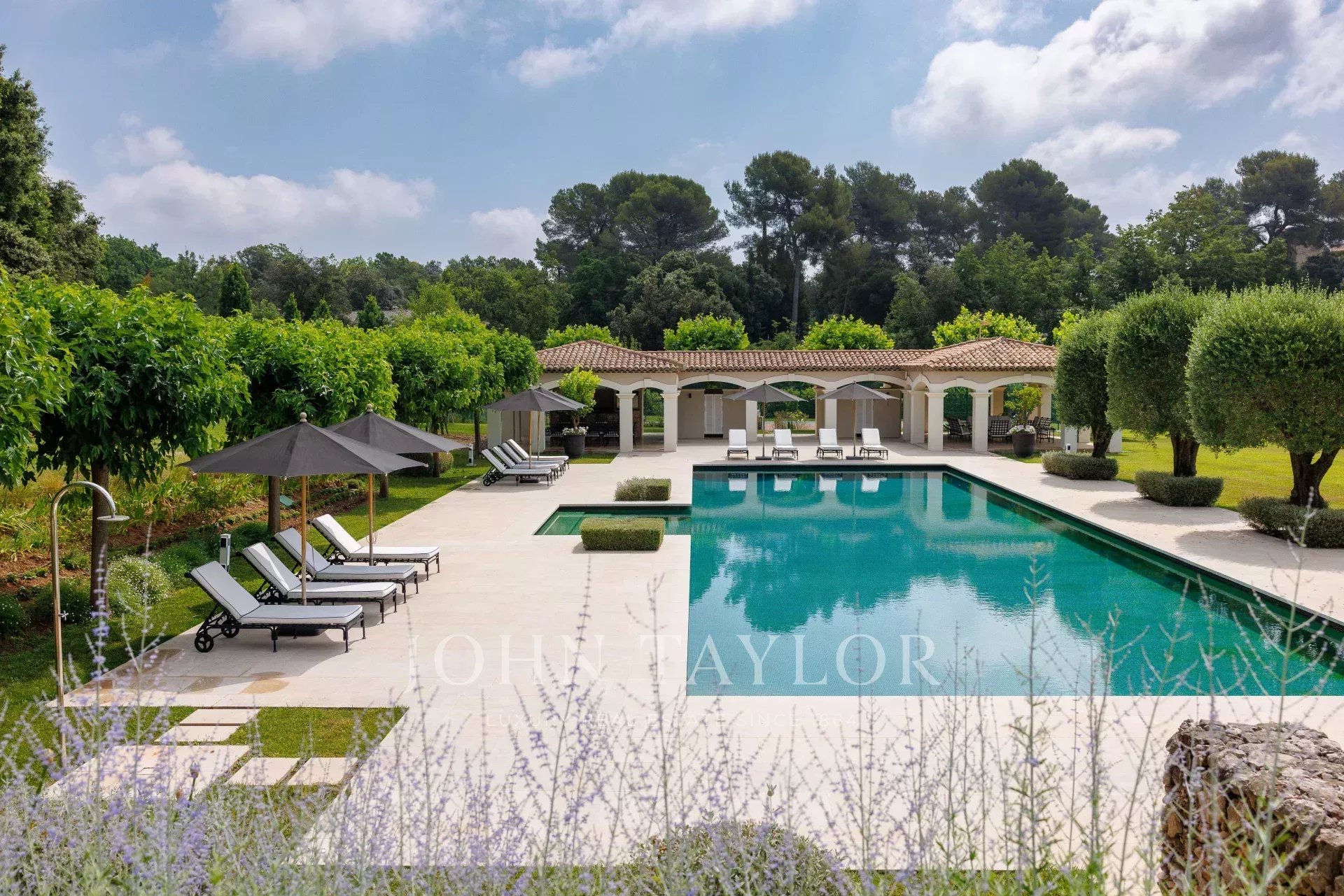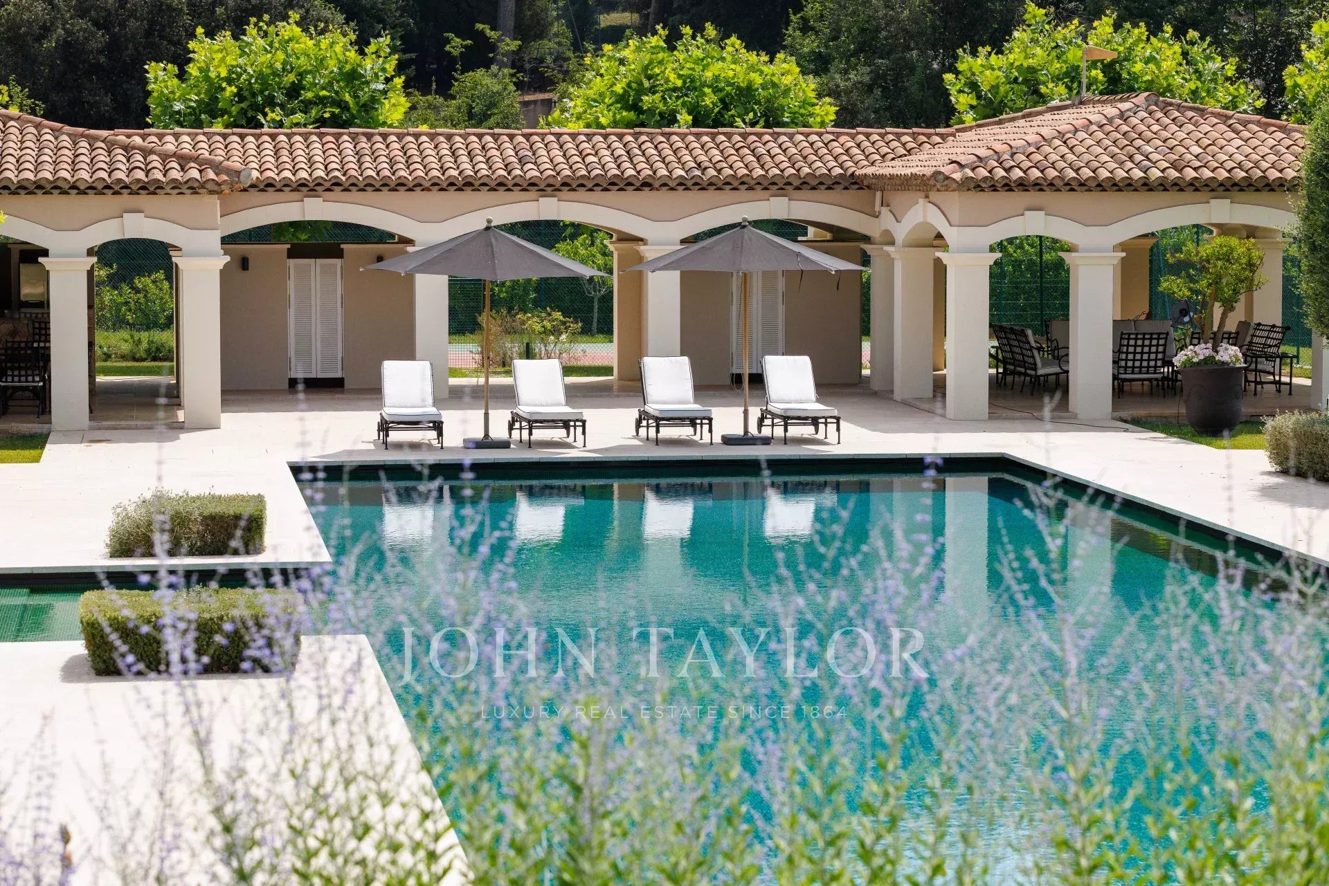 En el exterior, disfrutará de una gran piscina (20 m x 10 m), una casita de piscina con cocina de verano, una pista de tenis para actividades deportivas y varias terrazas, una de ellas climatizada para veladas de convivencia.