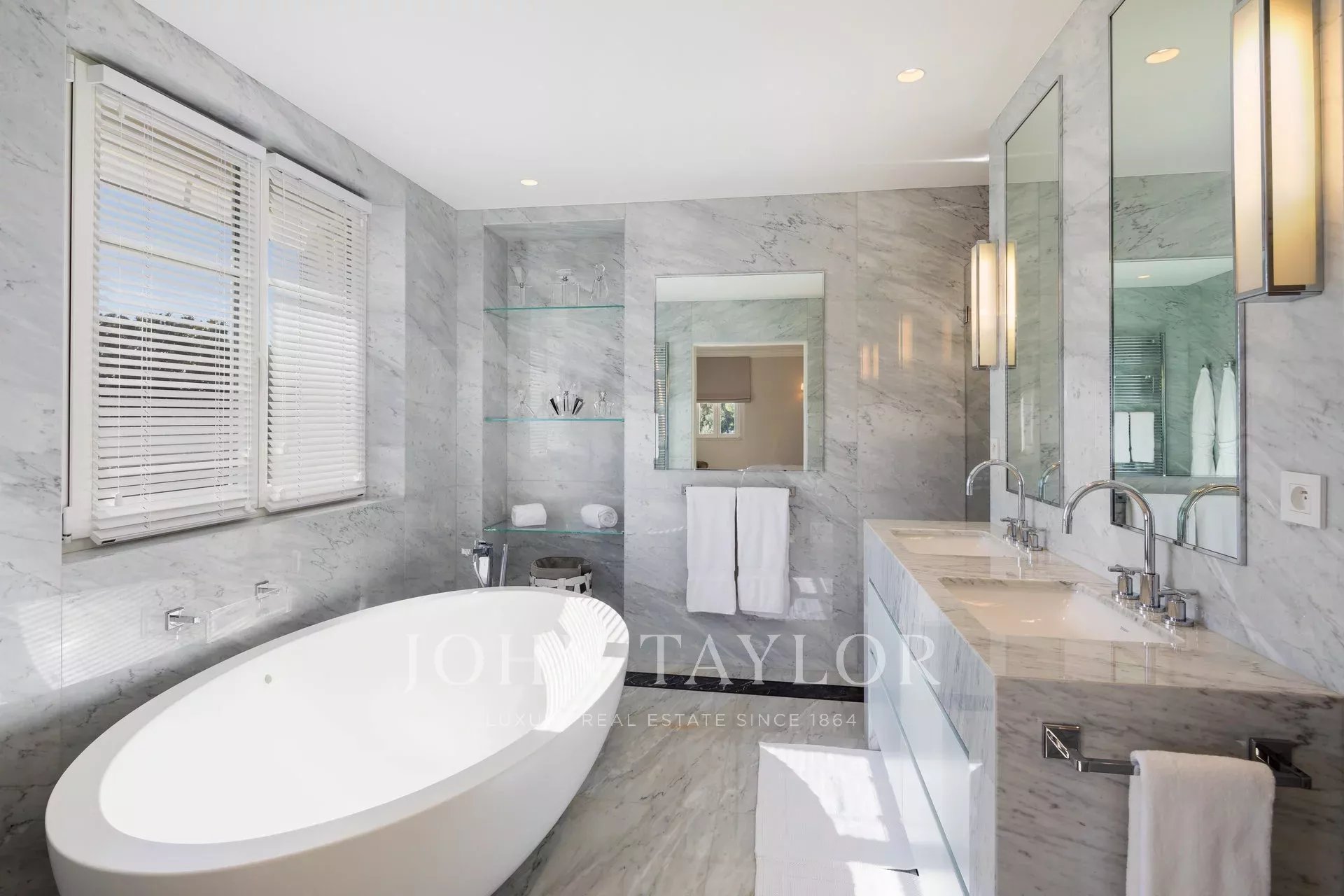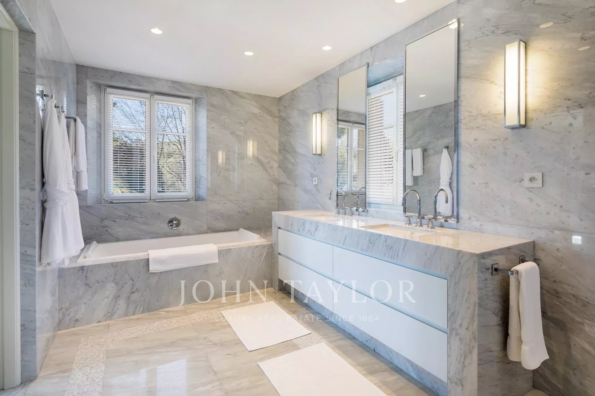 Descubra esta finca de lujo enclavada, completamente renovada con materiales de alta gama y que ofrece impresionantes vistas al mar. Esta excepcional propiedad ofrece prestigiosas comodidades, como un interior Ralph Lauren, cine en casa, sala de billar y mucho más.
