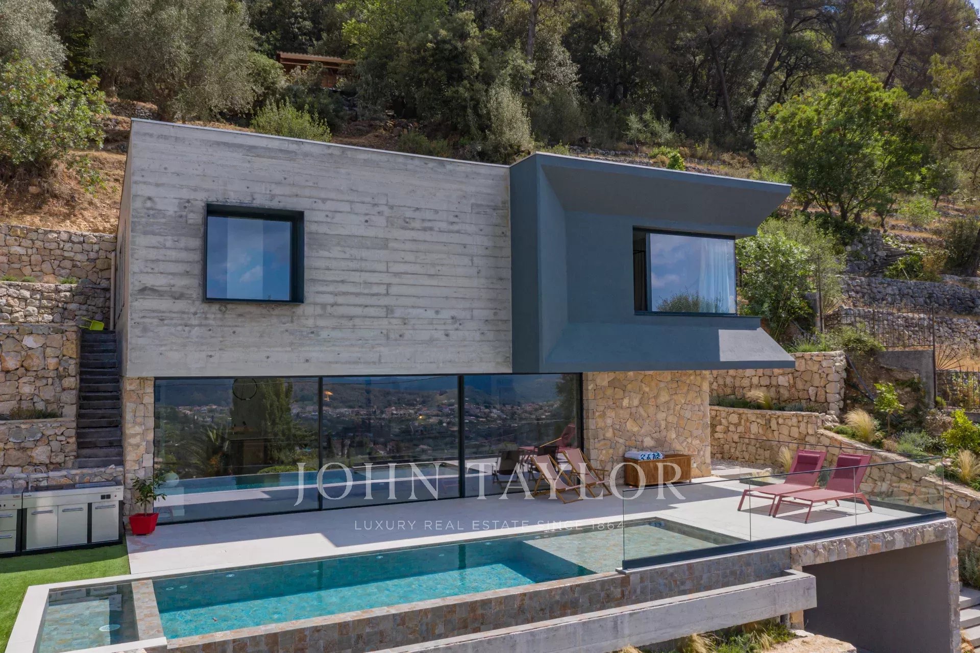 Descubra esta suntuosa casa de 220 m² diseñada por un arquitecto en las colinas de Saint-Paul de Vence.