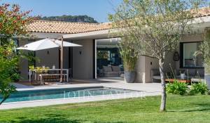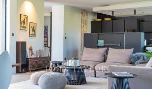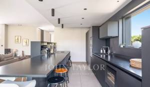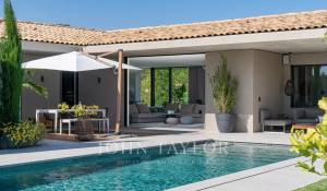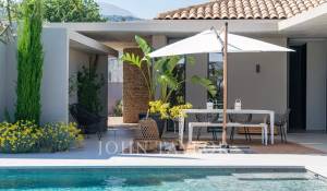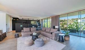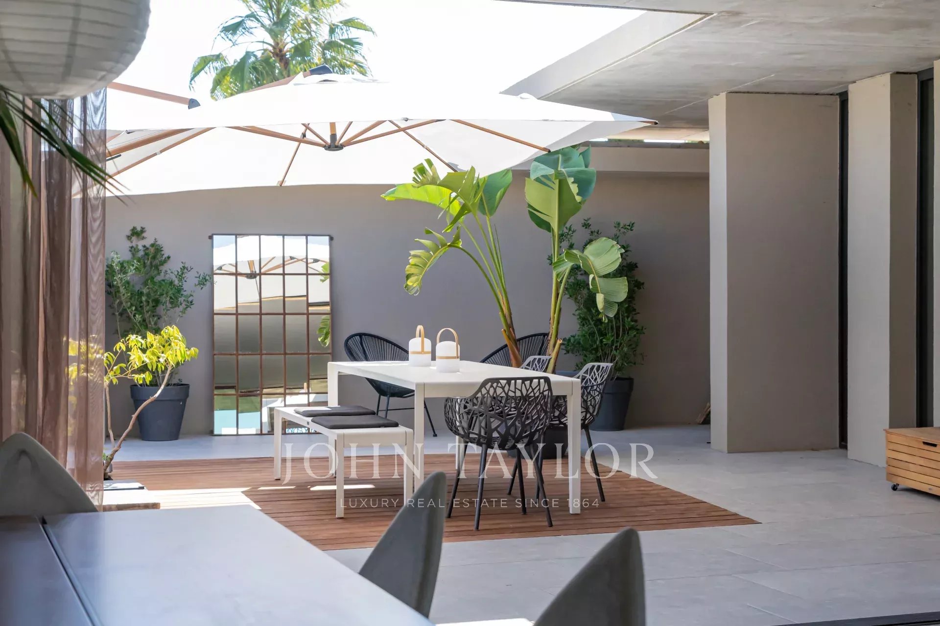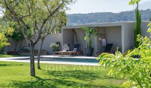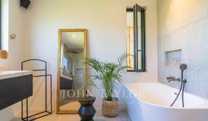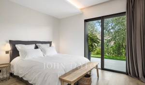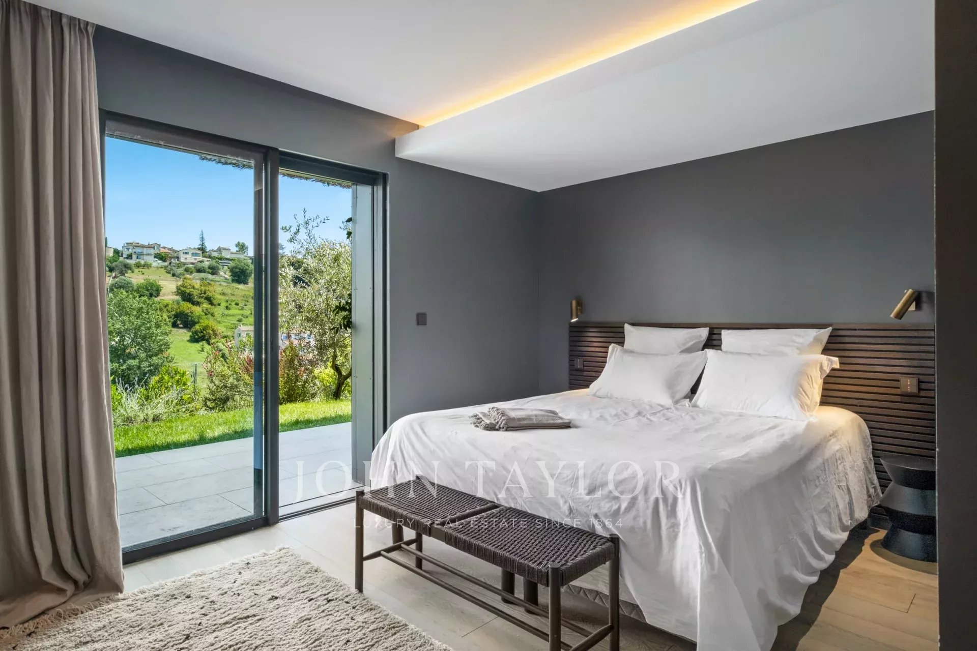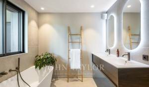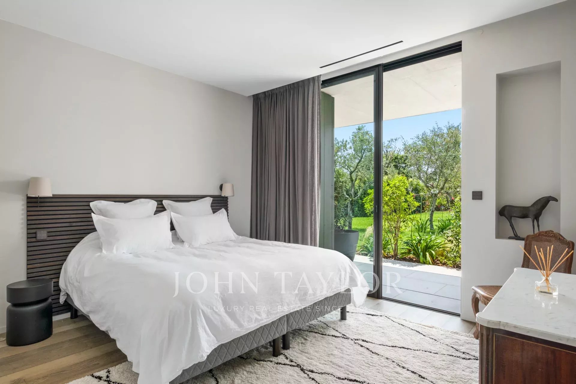 En la planta baja, una espaciosa y luminosa sala de estar con salón, comedor y cocina americana invita a relajarse y disfrutar de la compañía de los amigos. Las vistas sobre Saint-Paul de Vence, por un lado, y la agradable terraza con piscina rodeada de un jardín tropical, por el otro, proporcionan un entorno idílico. La suite principal incluye un estudio con vistas, un vestidor, un cuarto de baño con ducha y bañera y acceso directo a una de las terrazas.