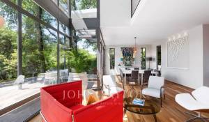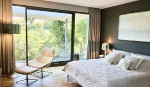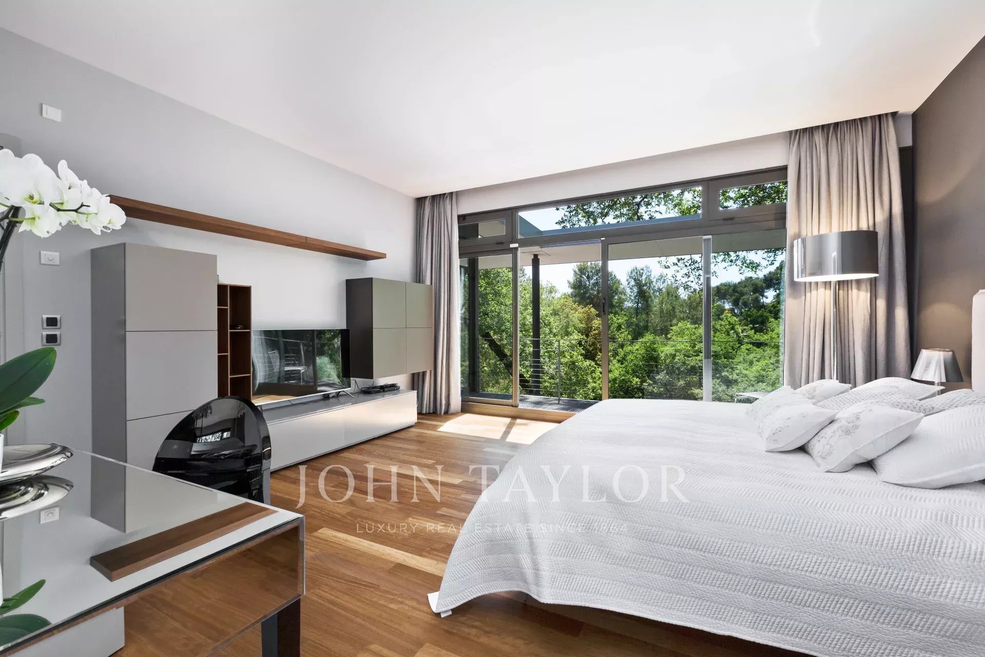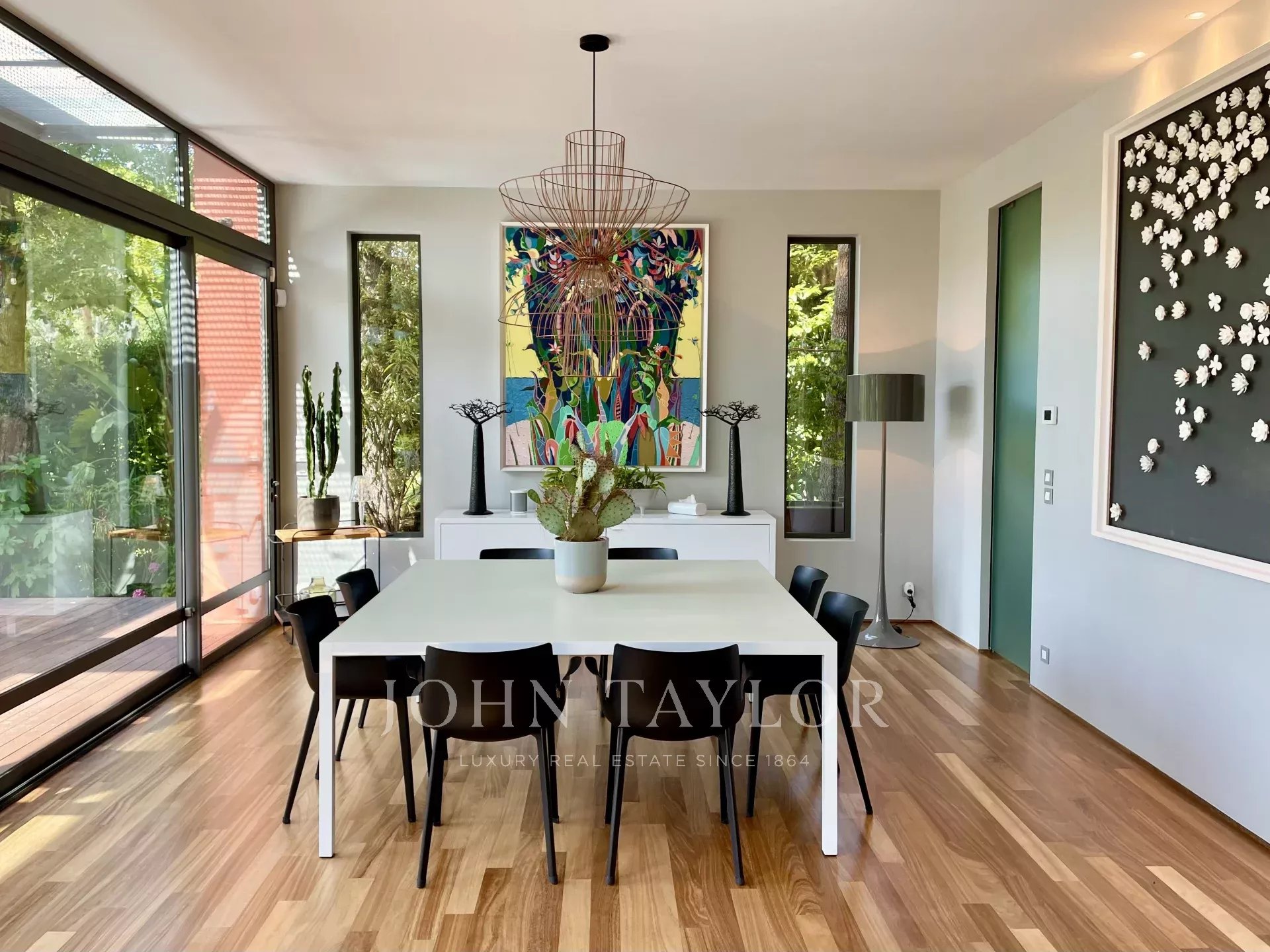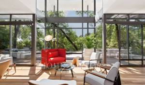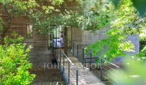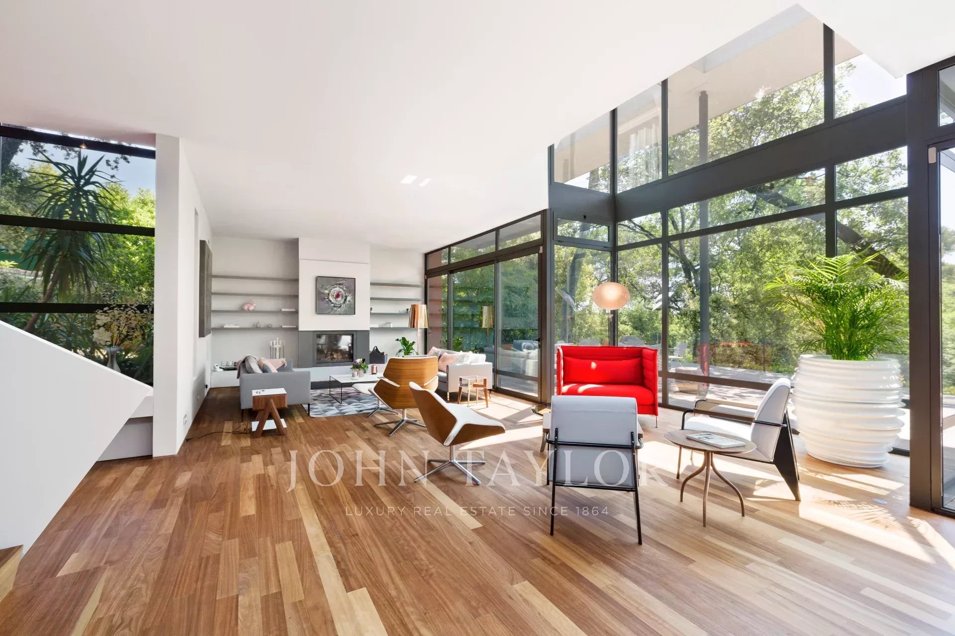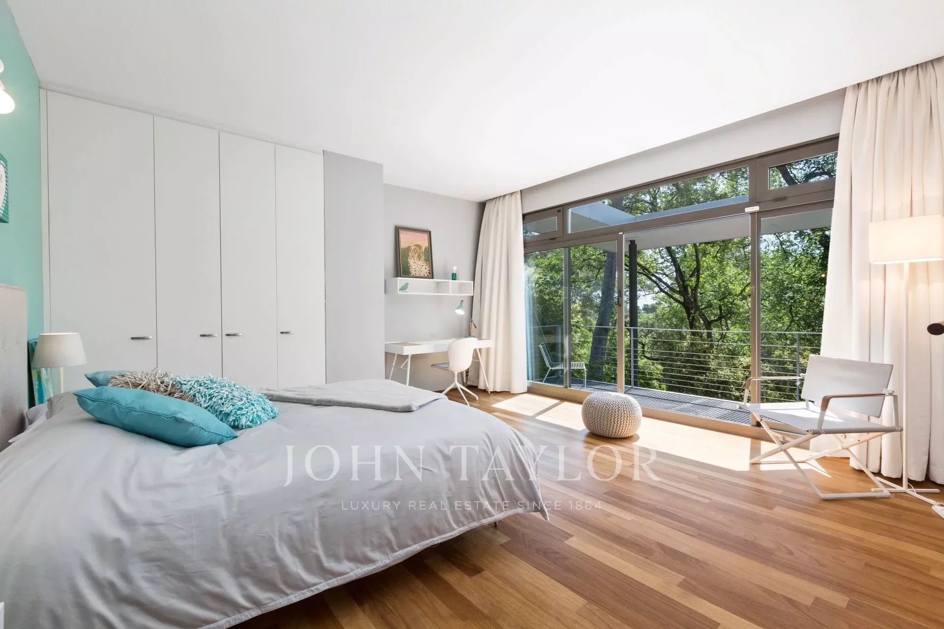 Esta moderna propiedad de 350 m² está enclavada en un terreno arbolado con magníficos robles y pinos, a pocos metros de la Fundación Maeght. Diseñada en 2002 por el arquitecto italiano Antonino Cascio, esta villa es un referente de la arquitectura moderna, sobre todo por sus innovadoras características bioclimáticas.