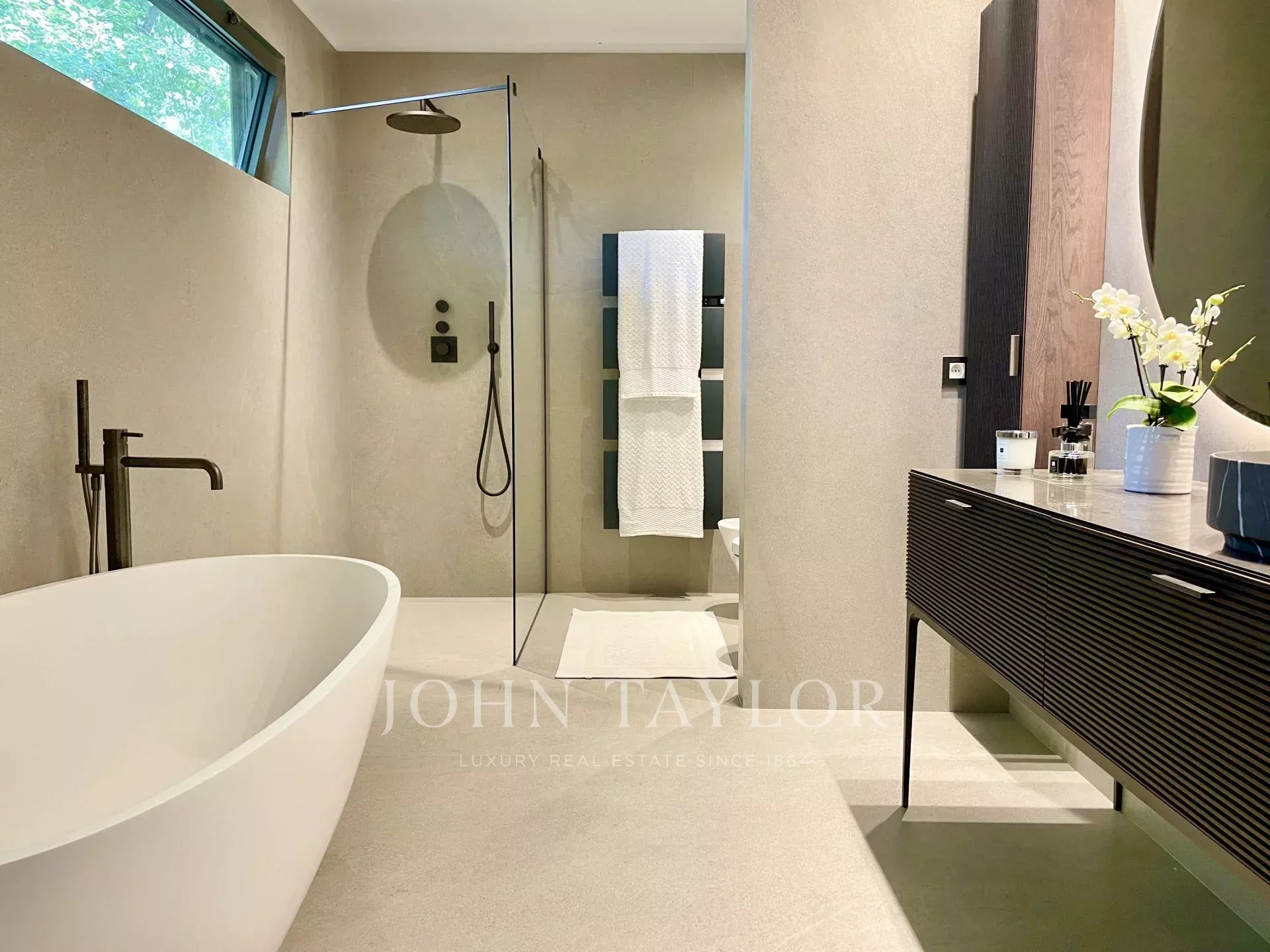 Completamente renovada, la villa está amueblada con gran refinamiento y un diseño decididamente contemporáneo. Todos los accesorios, decoraciones y muebles son de Vitra, Minotti, Ligne Roset, BoConcept, Dedon, Floset y otros.
