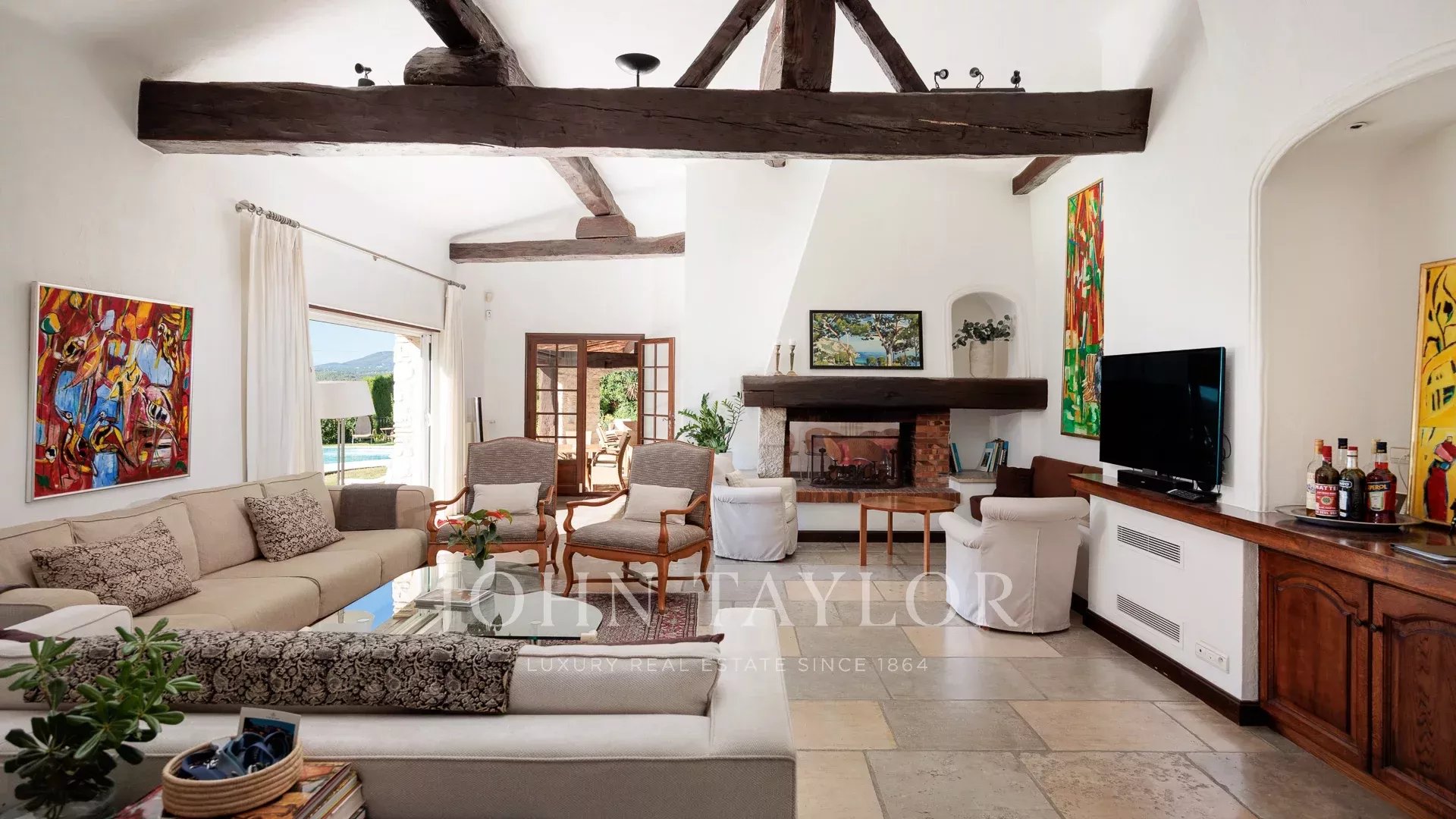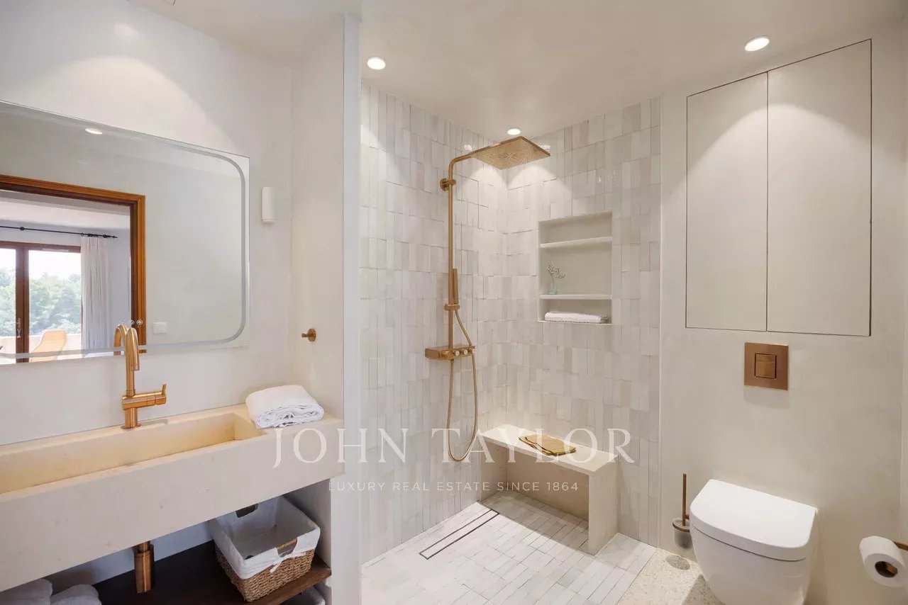 Situada en una de las zonas residenciales más codiciadas de Saint-Paul-de-Vence, esta magnífica propiedad de piedra de 560 m², encaramada en una posición dominante en un entorno tranquilo, se extiende sobre 6.400 m² de terreno y ofrece vistas ininterrumpidas al mar y a las colinas circundantes.