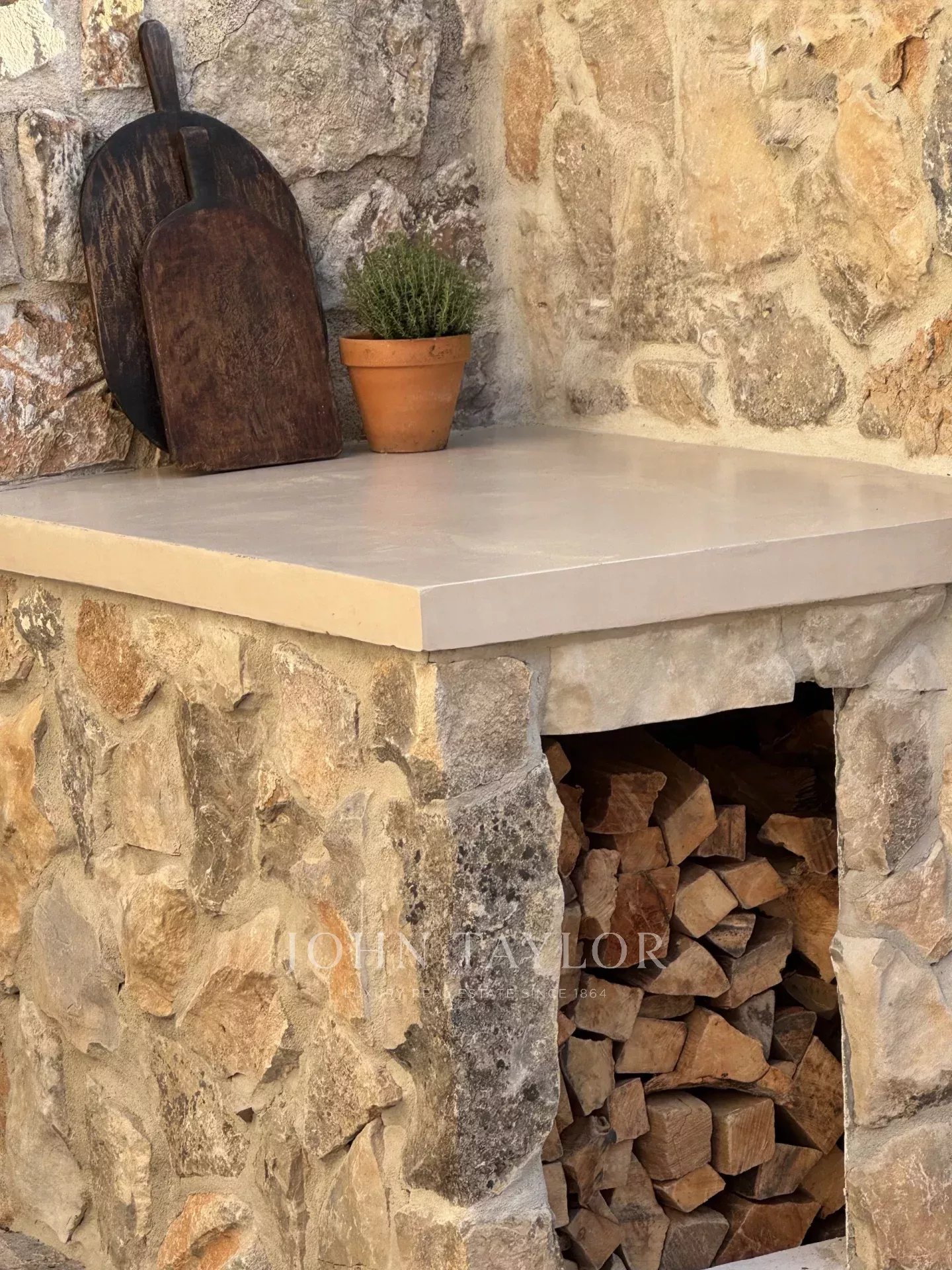 -Una gran terraza, perfecta para las comidas de verano, equipada con una chimenea exterior y una barbacoa para los momentos de convivencia con la familia y los amigos.