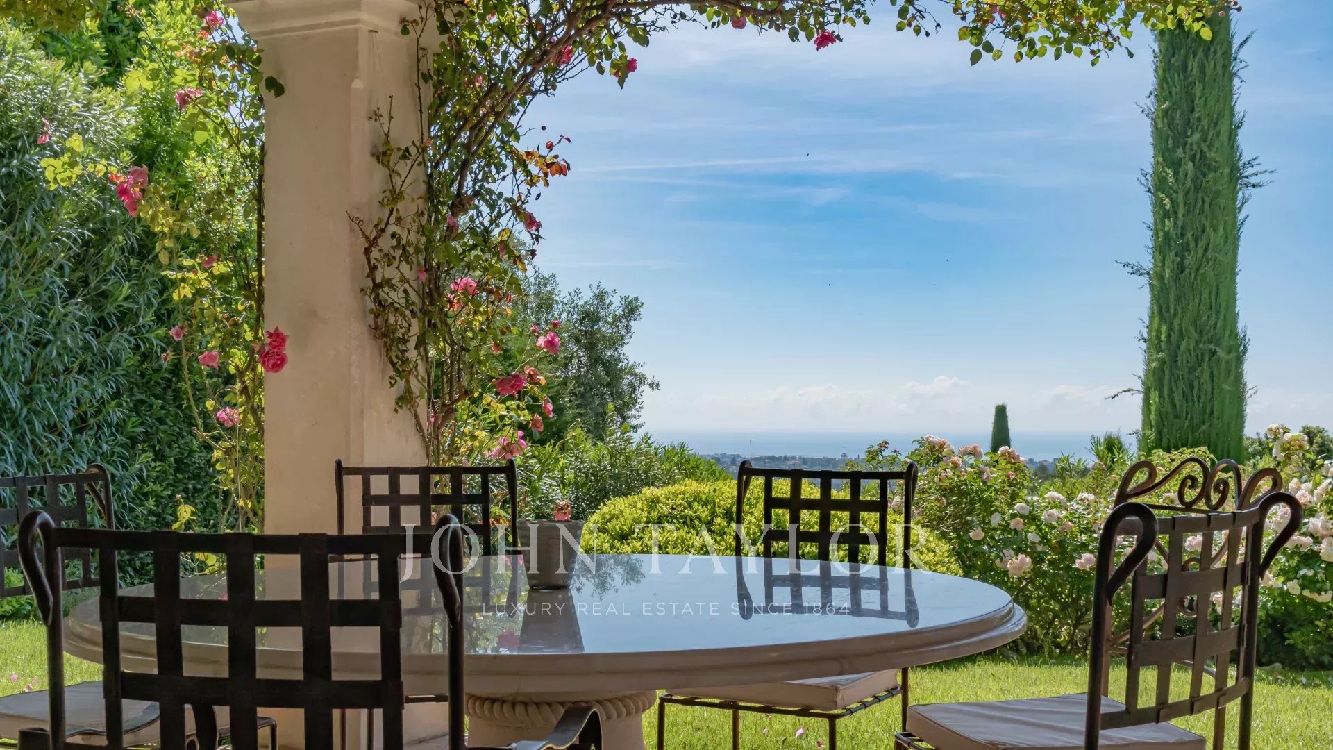 Ubicada en una finca privada y segura, esta hermosa villa de 250 m² está situada en 3.000 m² de hermosos jardines, ofreciendo impresionantes vistas panorámicas hasta el mar.