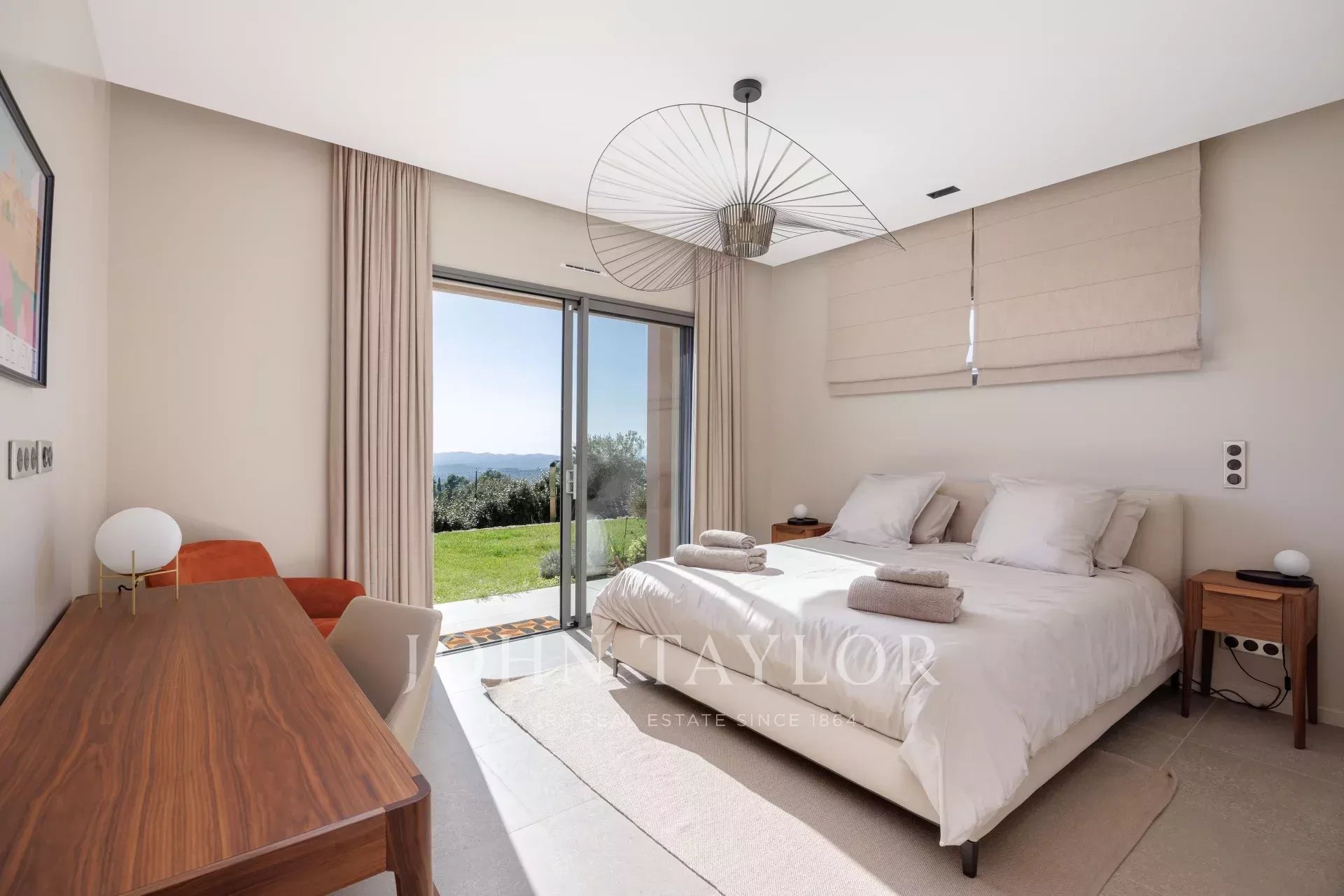Esta luminosa y espaciosa villa dispone de tres dormitorios, cada uno con su propio cuarto de ducha y vestidor privado.
