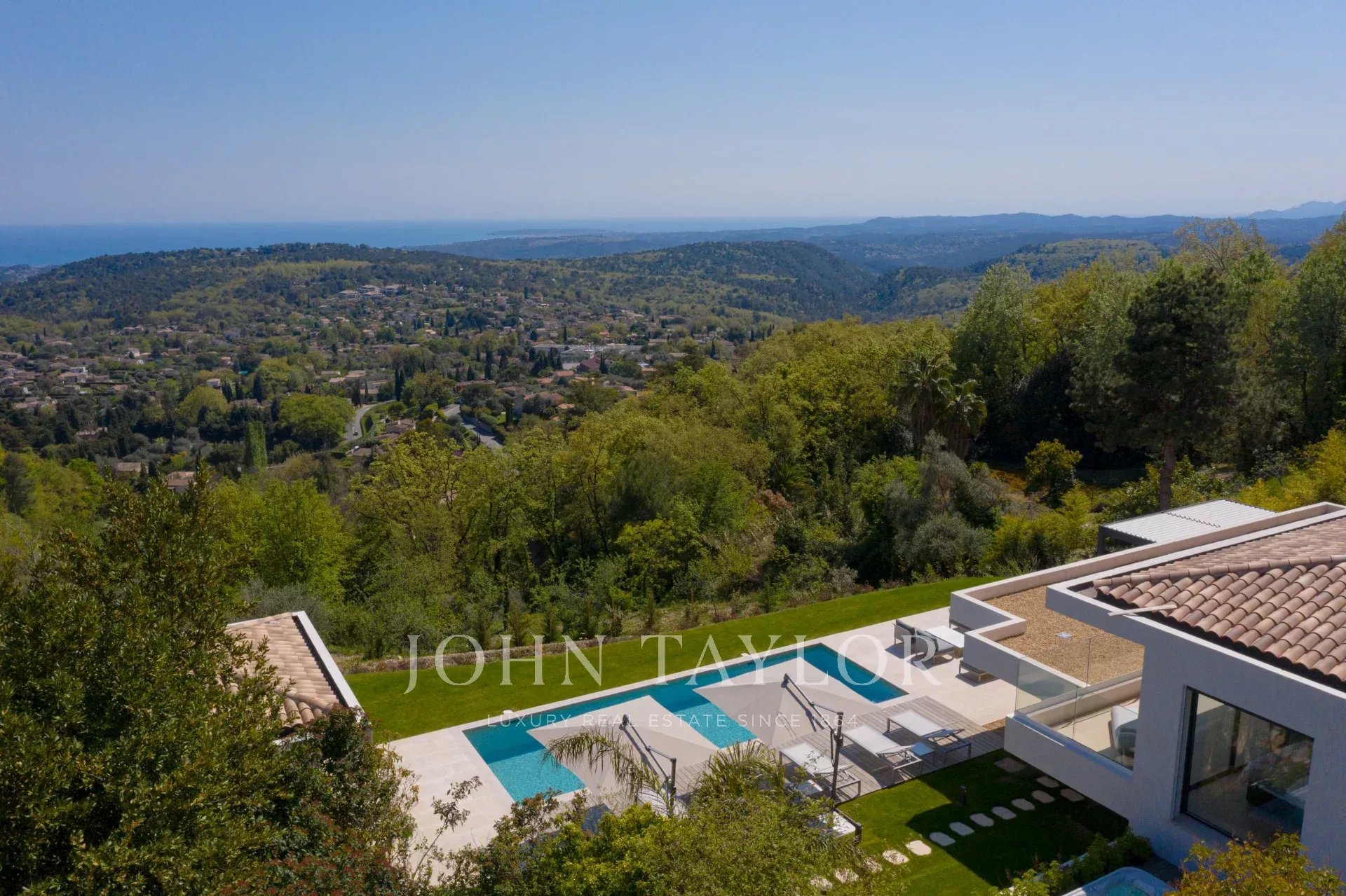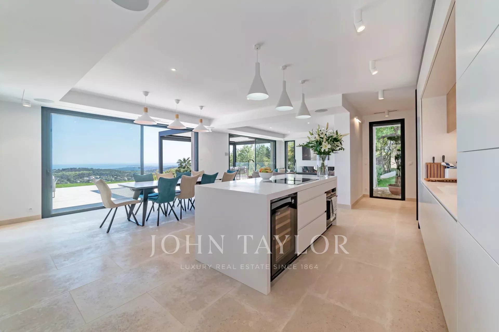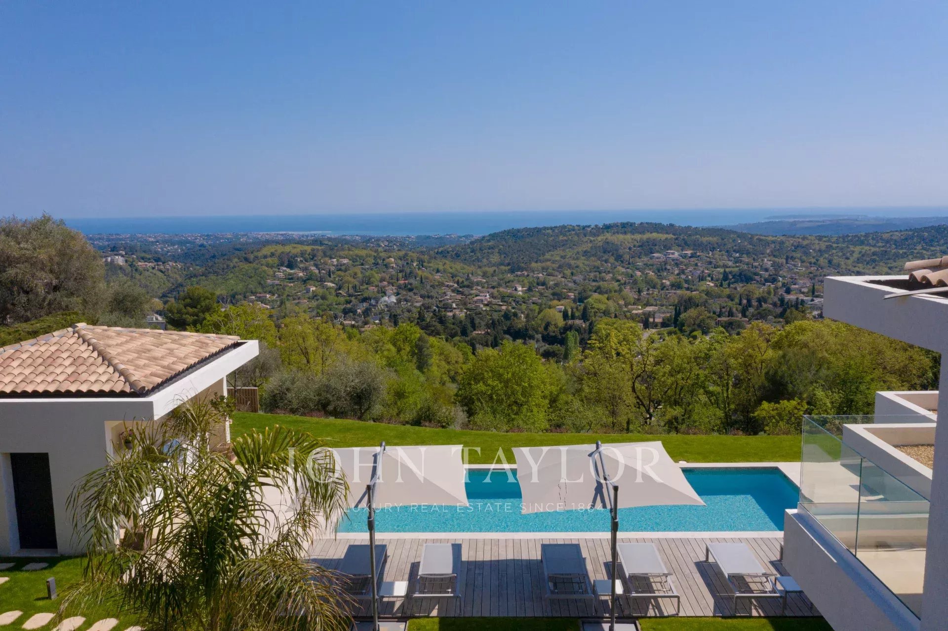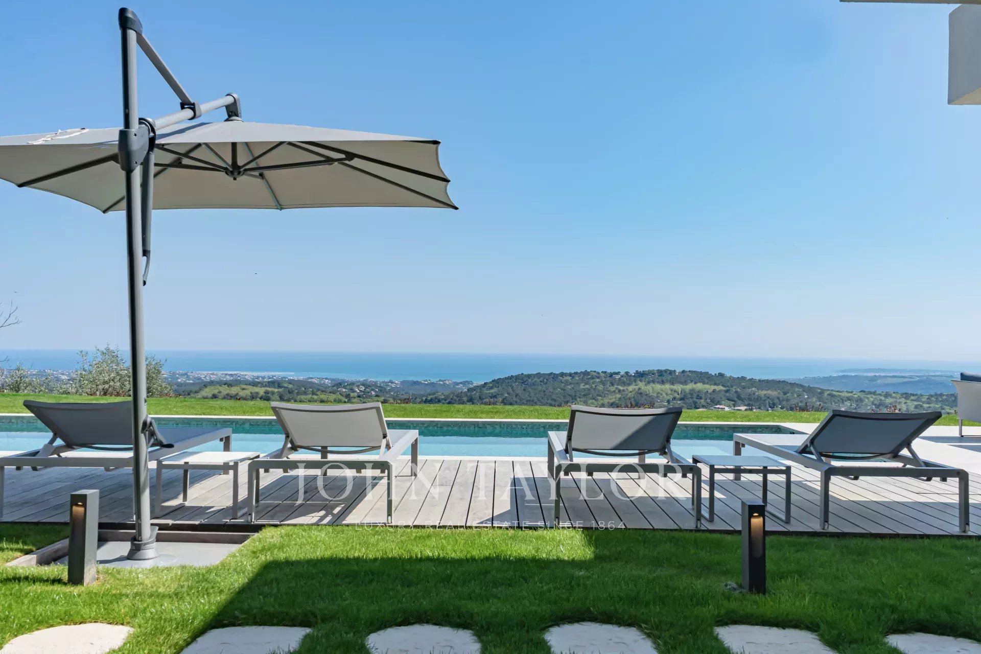 En una posición dominante en las alturas de Vence, esta espléndida villa ofrece 5 dormitorios con baños / duchas, una sala de estar muy luminosa con una cocina abierta que da acceso directo a una hermosa terraza.