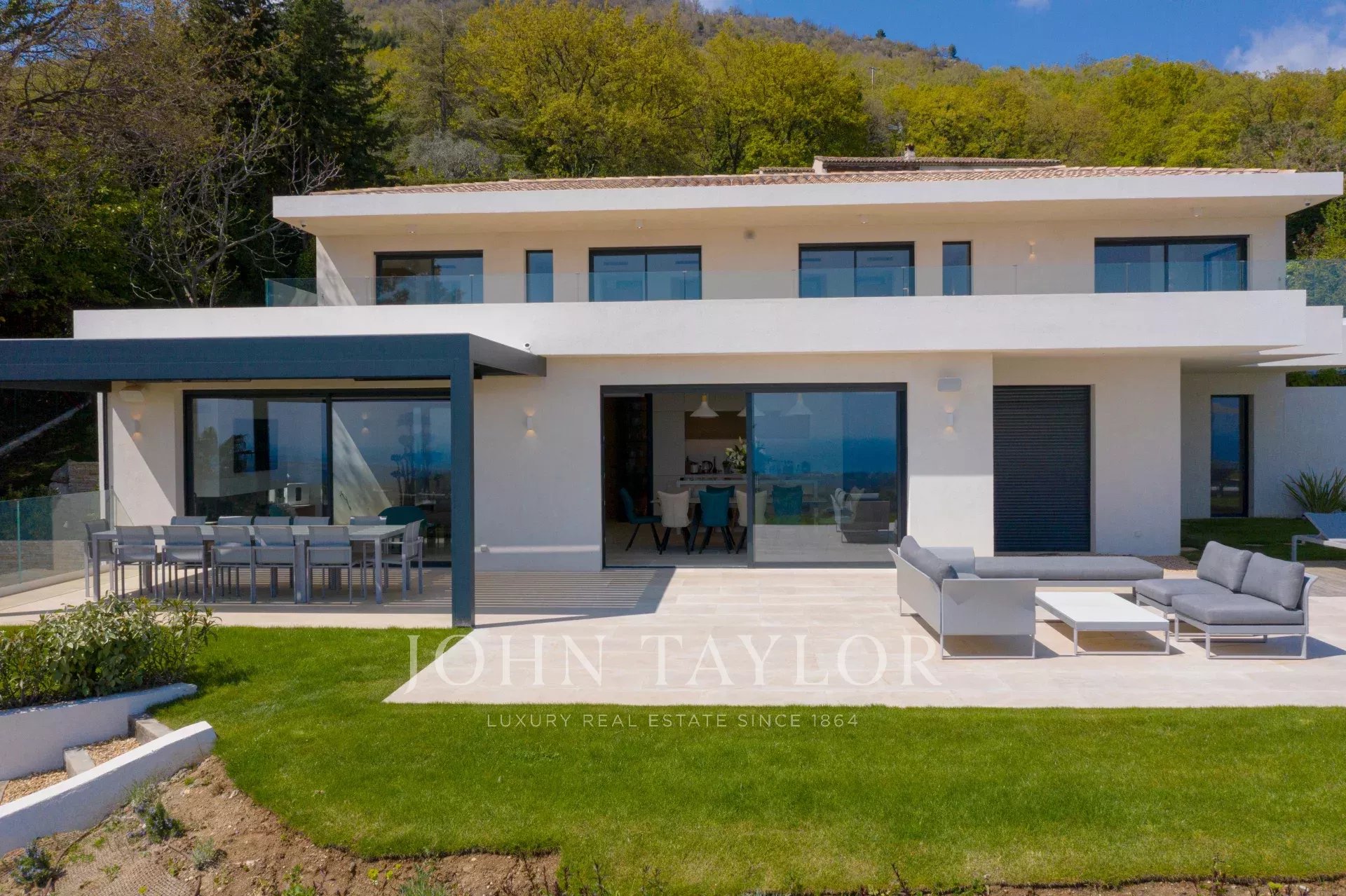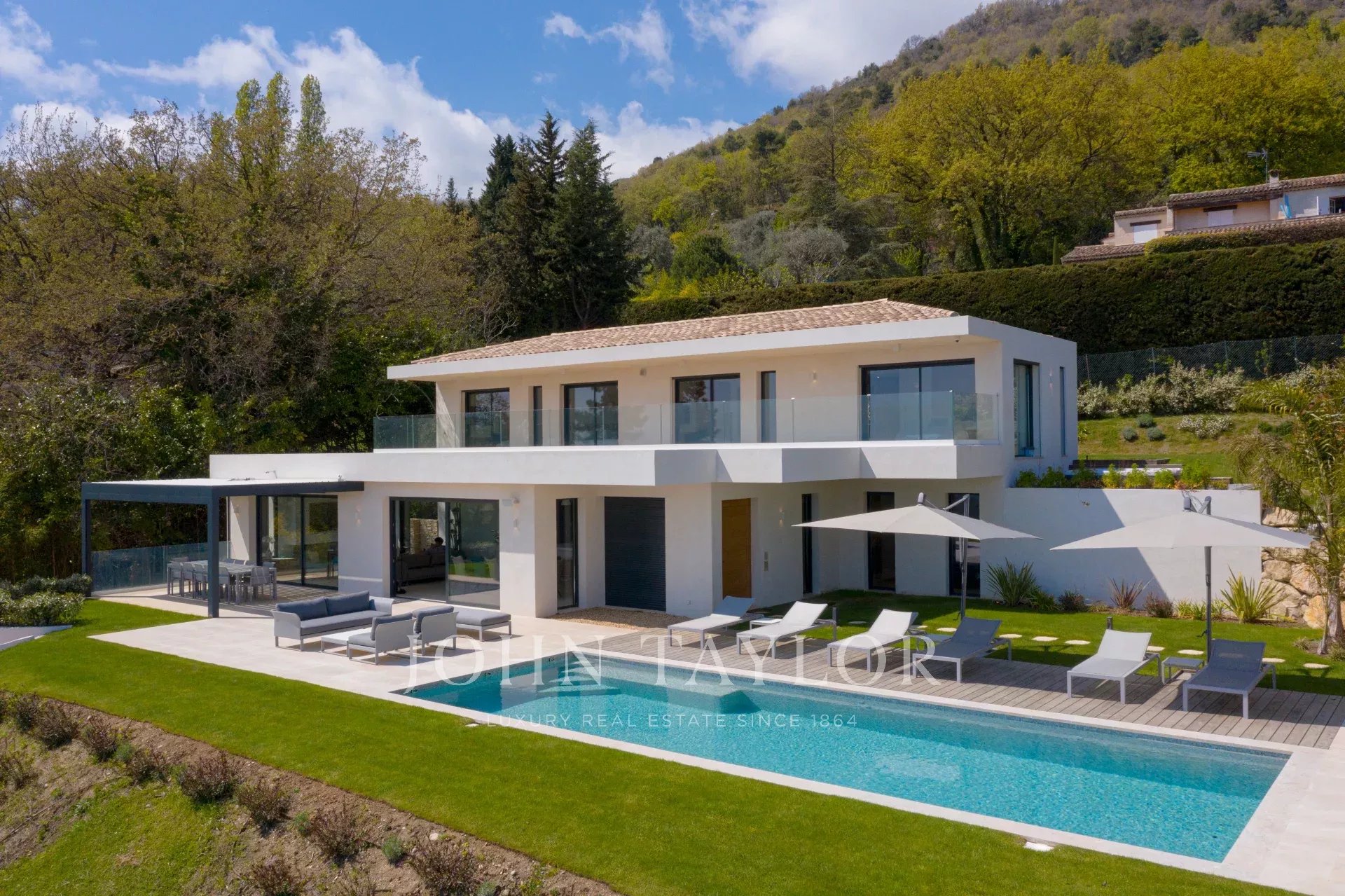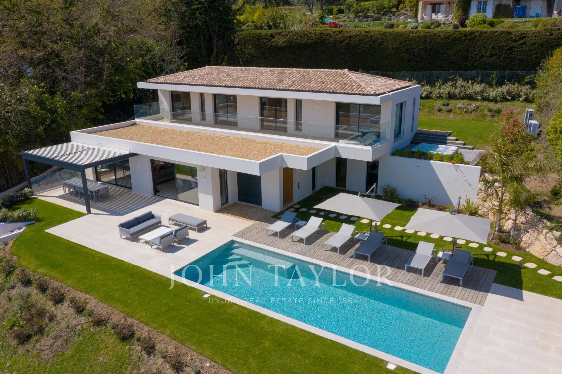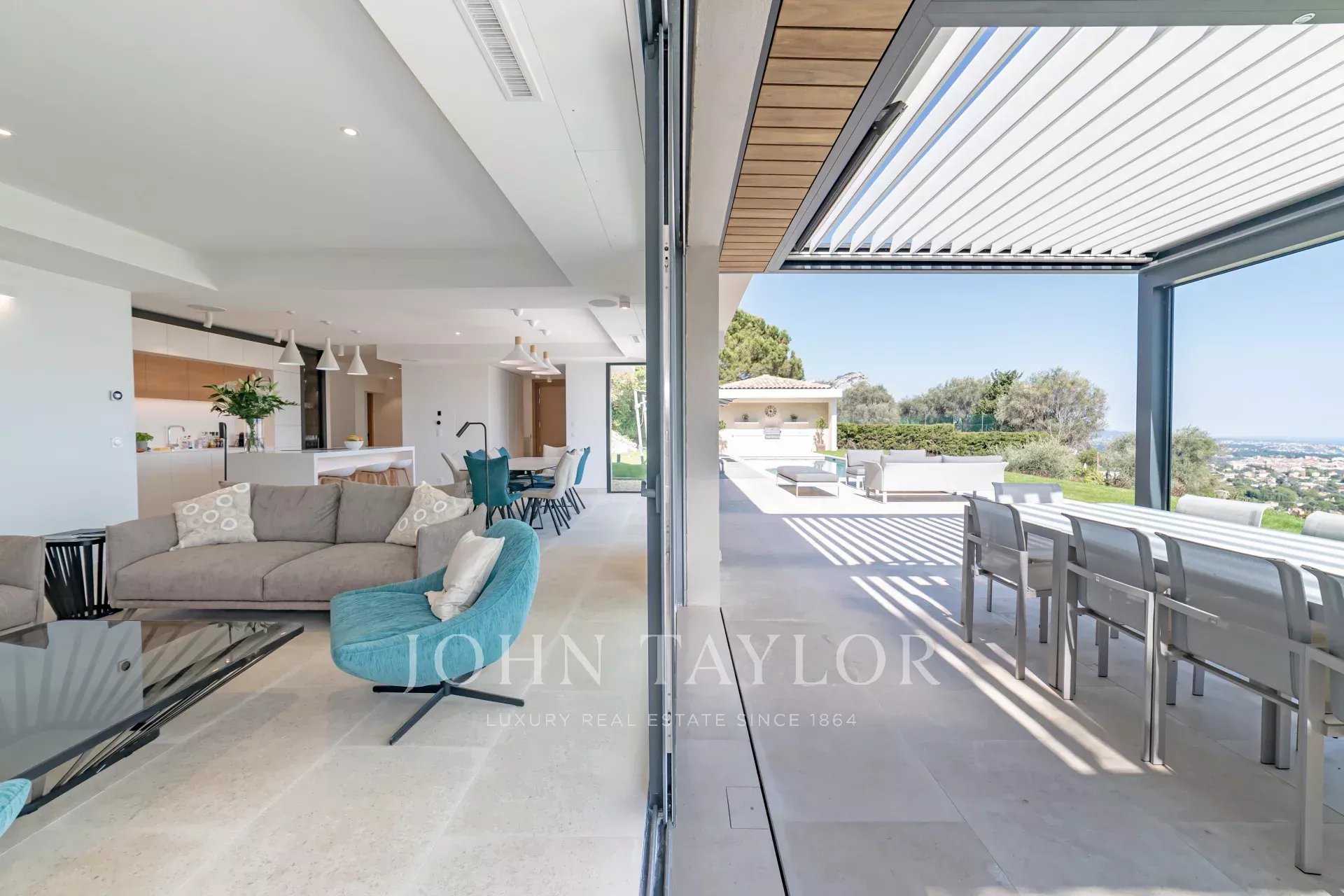 En una posición dominante en las alturas de Vence, esta espléndida villa ofrece 5 dormitorios con baños / duchas, una sala de estar muy luminosa con una cocina abierta que da acceso directo a una hermosa terraza.
